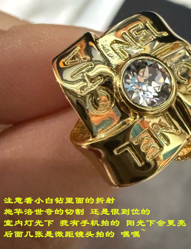 中间点缀了一颗 施华的人造小白钻 镶嵌在底托里 微微突出来 不是平面的