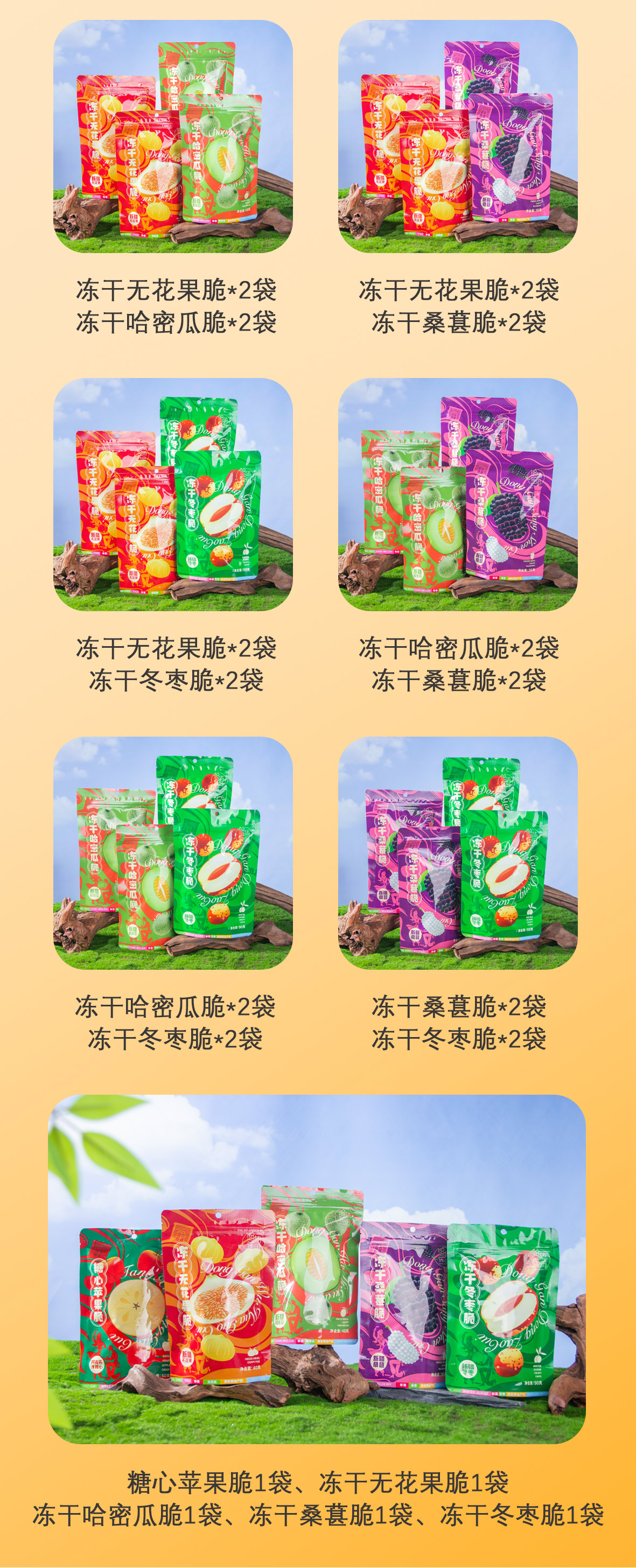 【悠沐花田冻干水果脆】(糖心苹果脆、冻干冬枣脆、冻干桑葚脆、冻干无花果脆、冻干哈密瓜脆)