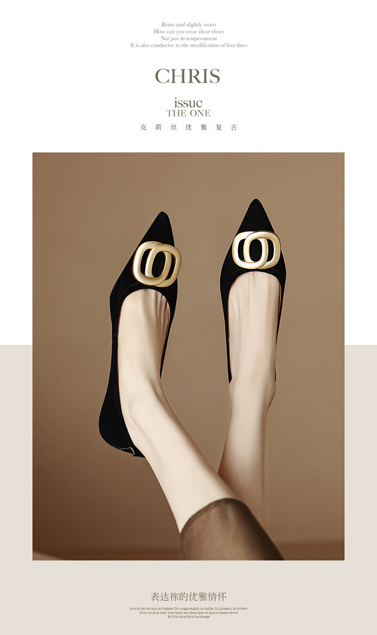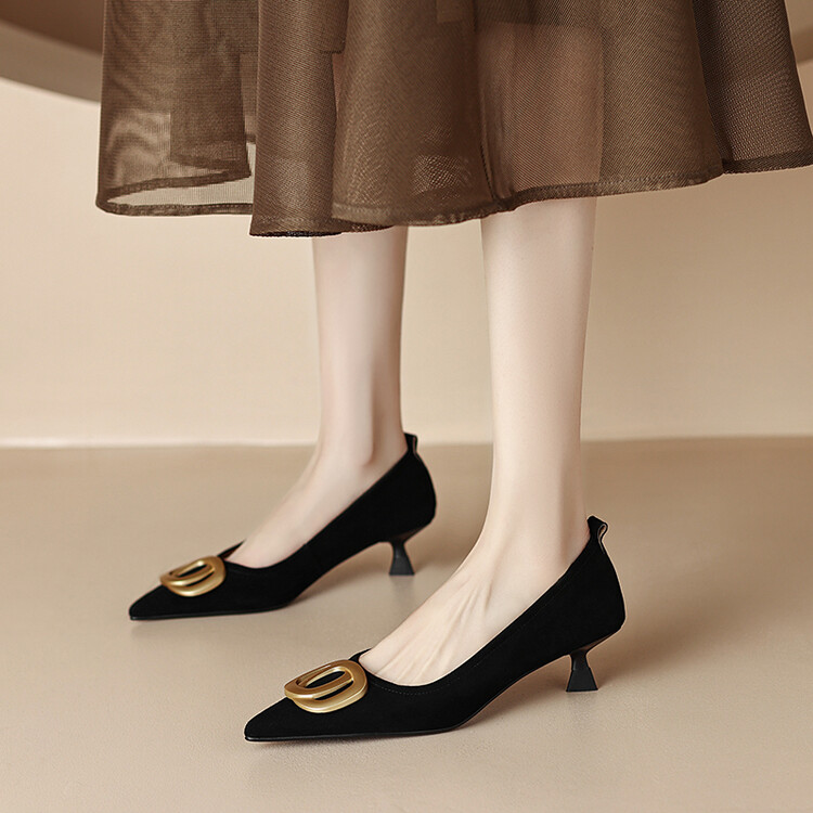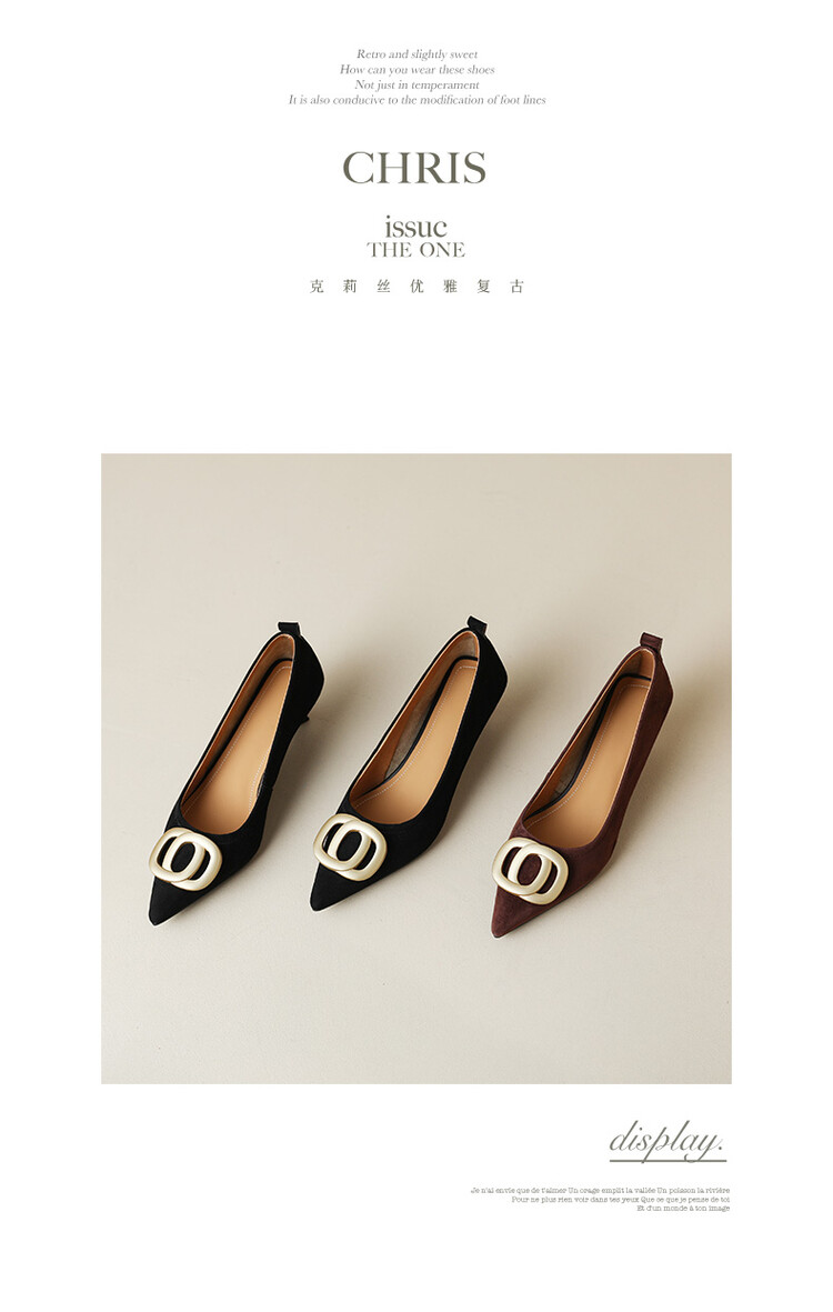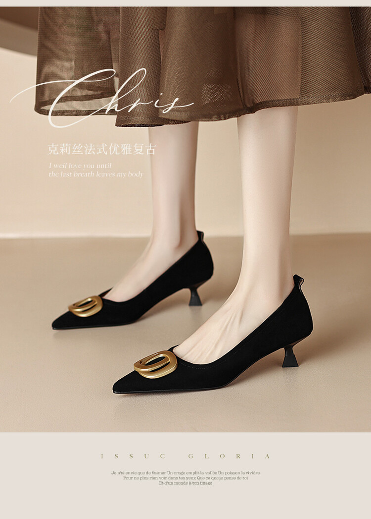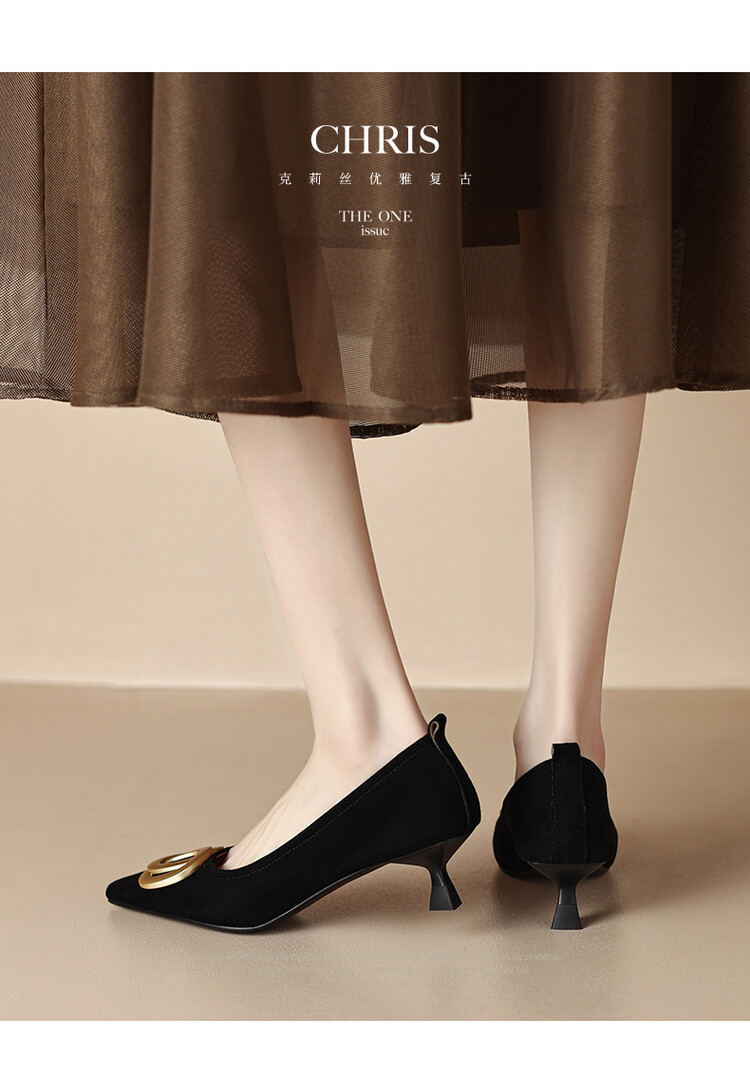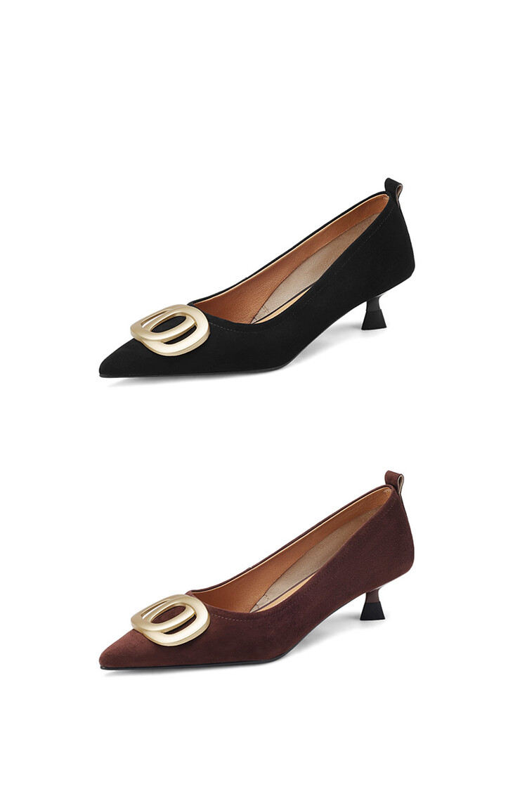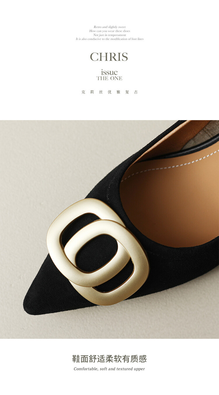 【预售5天】时尚羊绒面中跟鞋,尖头真皮细跟金属扣件工作鞋ZYY&A105