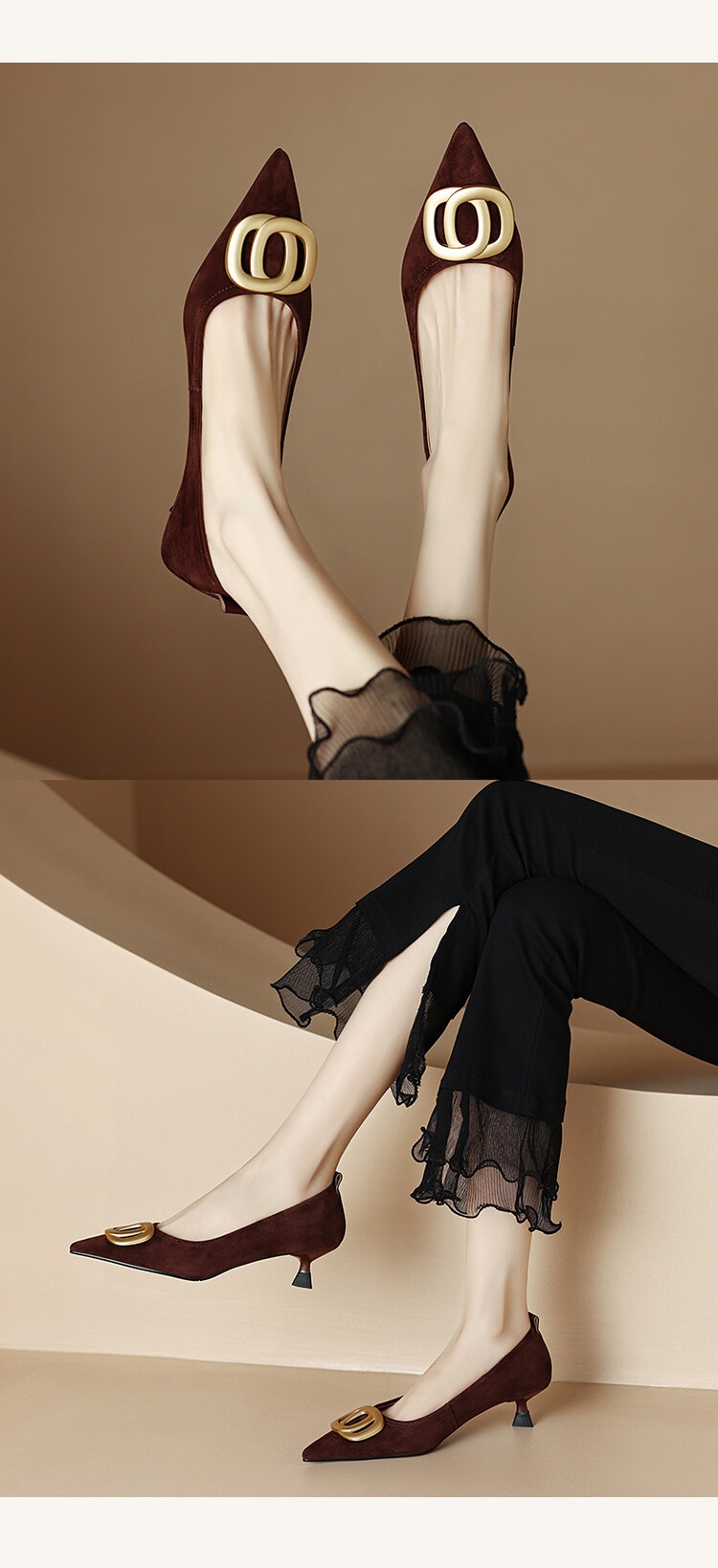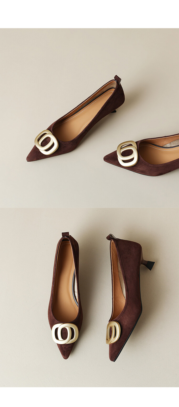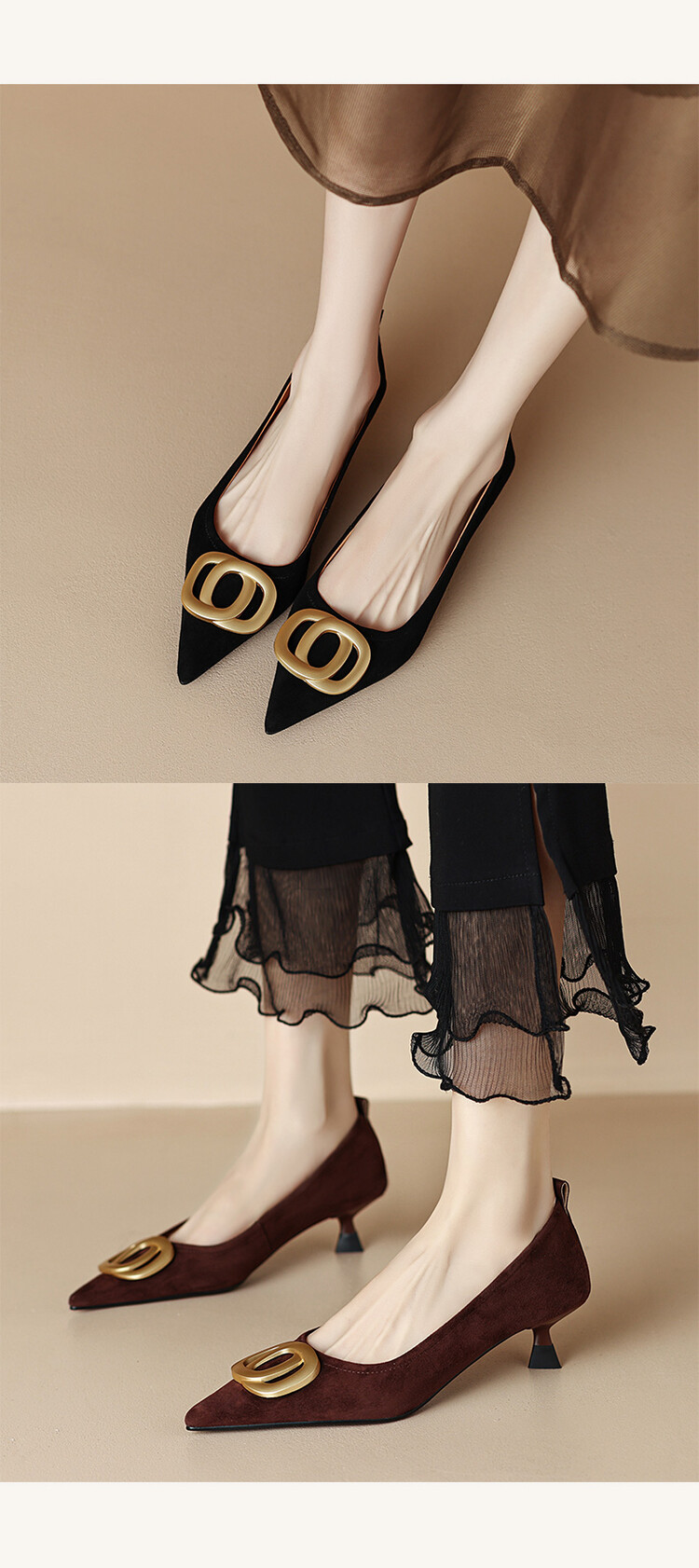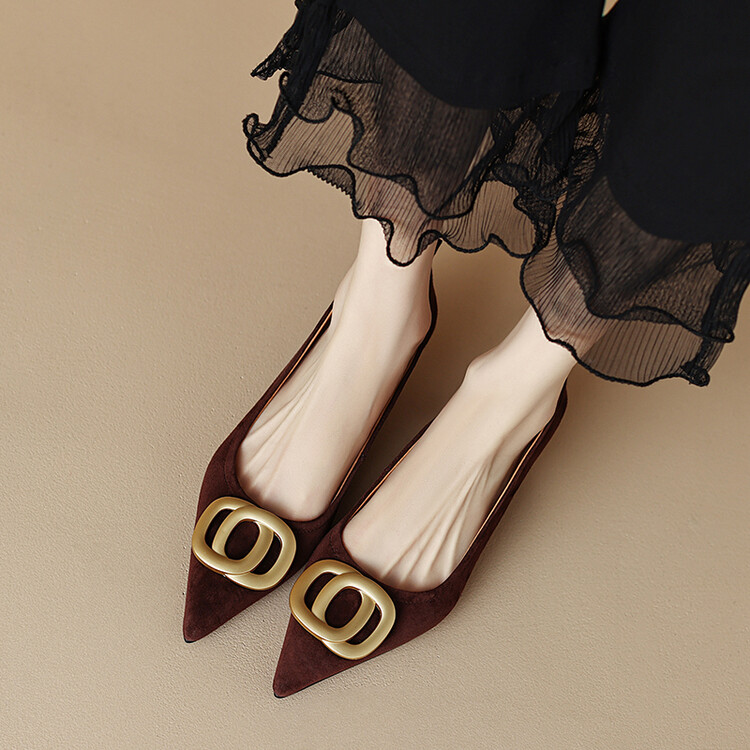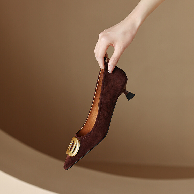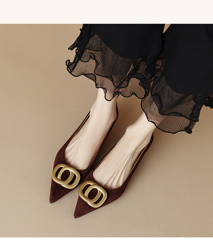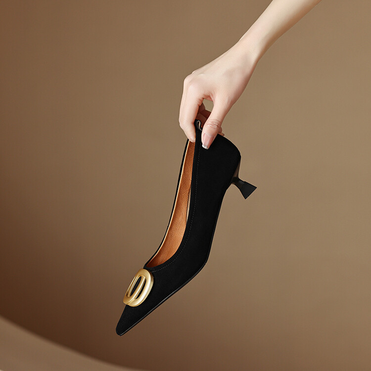 【预售5天】时尚羊绒面中跟鞋,尖头真皮细跟金属扣件工作鞋ZYY&A105
