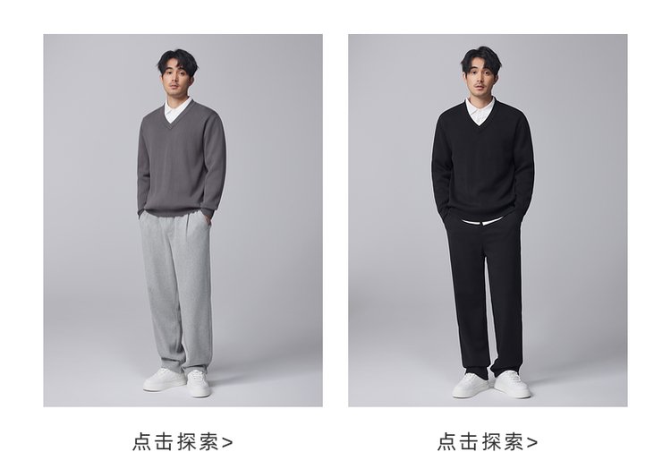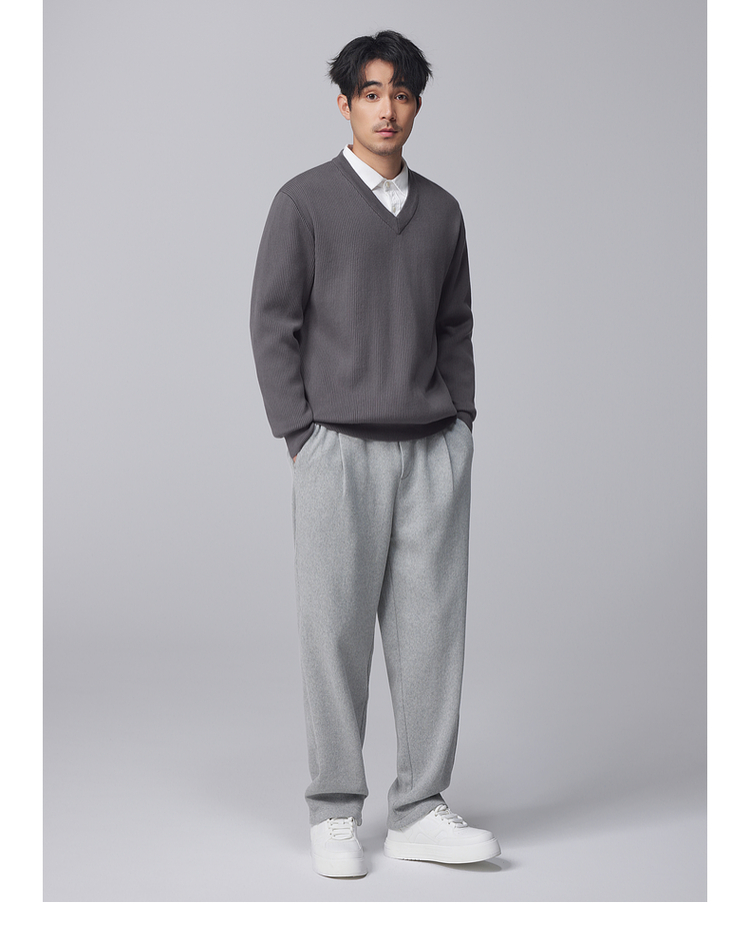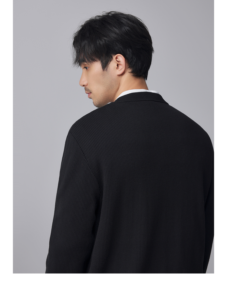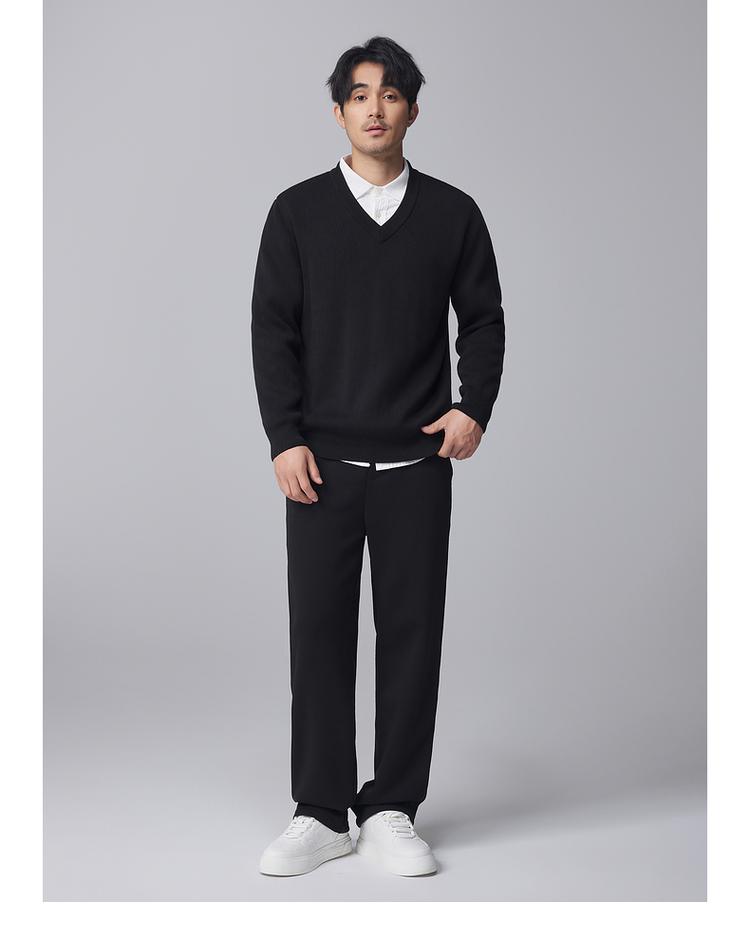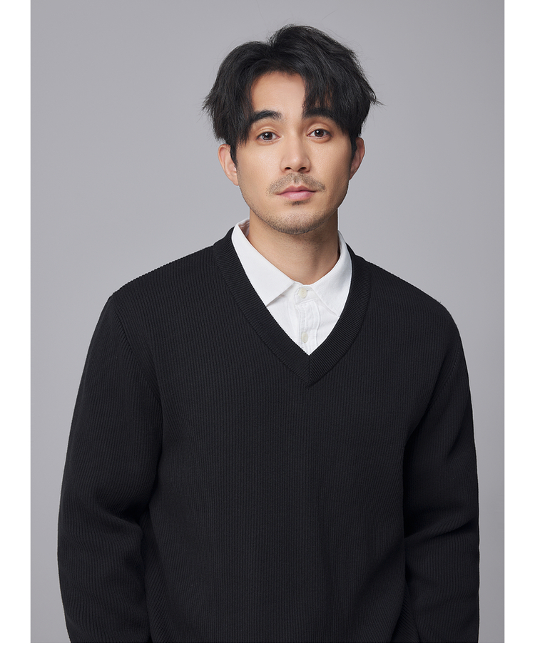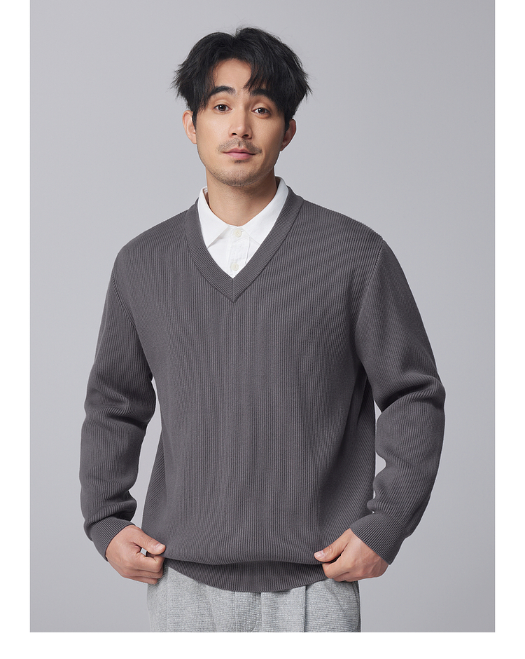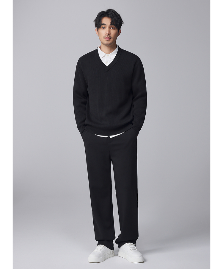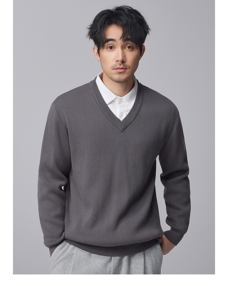 墨麦客男装竖条肌理V领针织衫男士2024冬季新款宽松打底衫毛衣男
