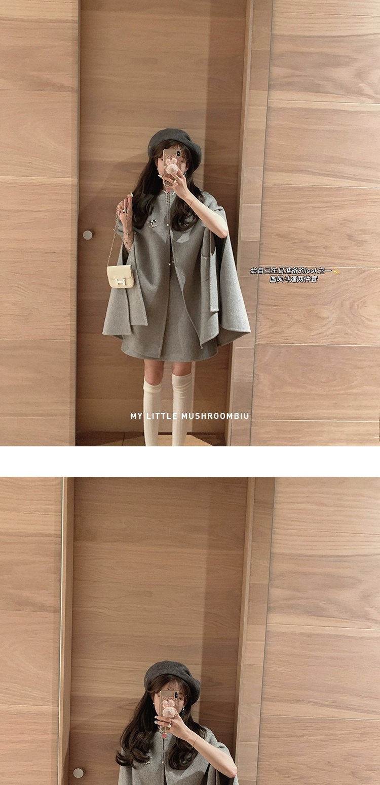 金蘑菇菇 金丝小种 国风斗篷系列/ 新中式温柔风插肩袖宽松大衣