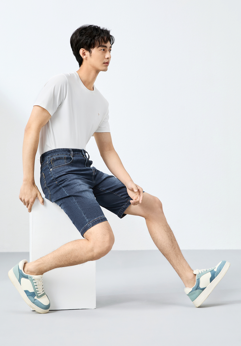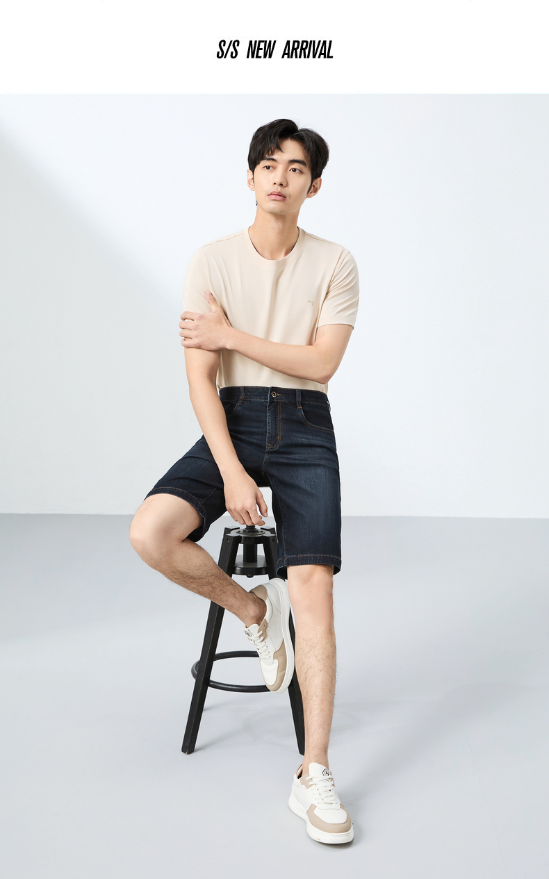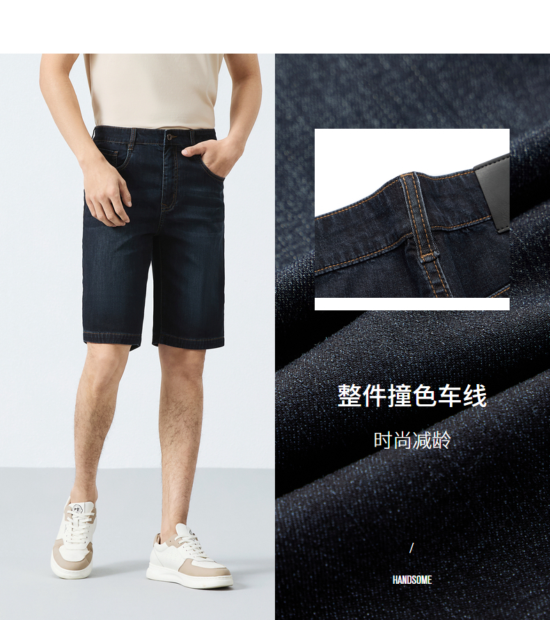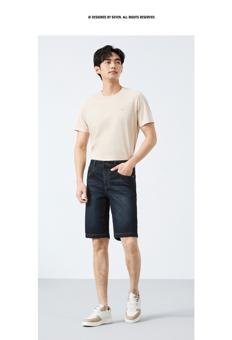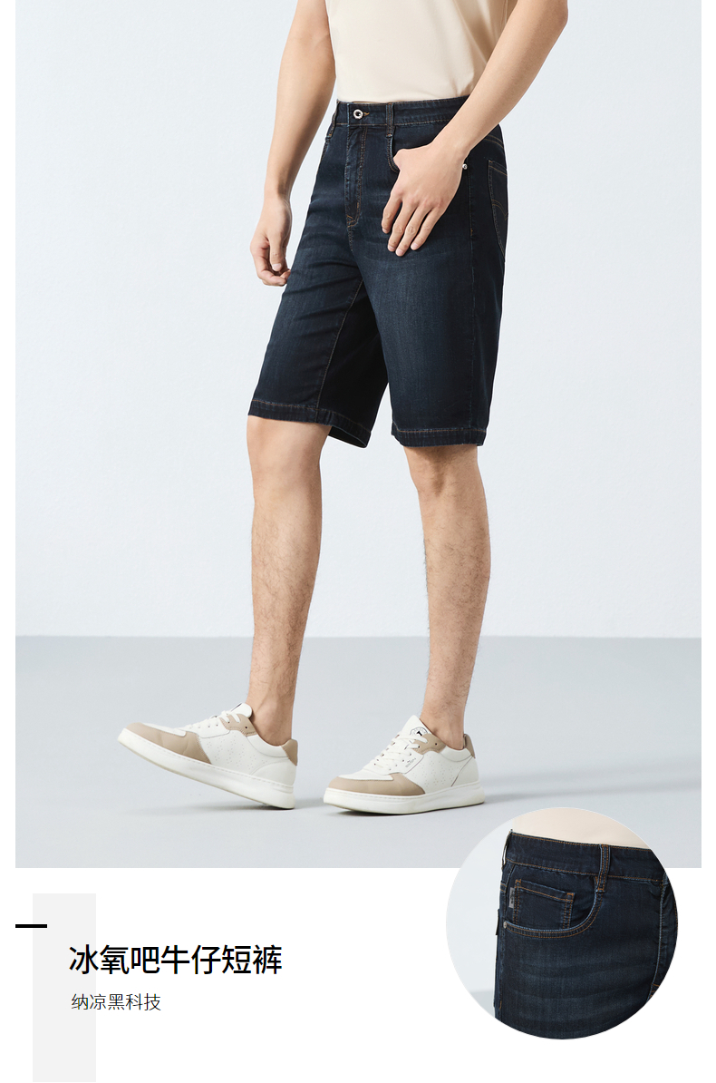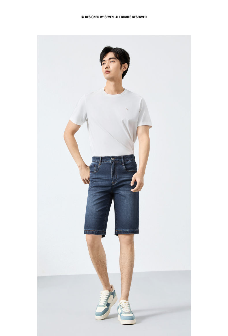 【莱赛尔/凉感】柒牌牛仔短裤男2025夏季新款休闲直筒水洗牛仔裤128H73390