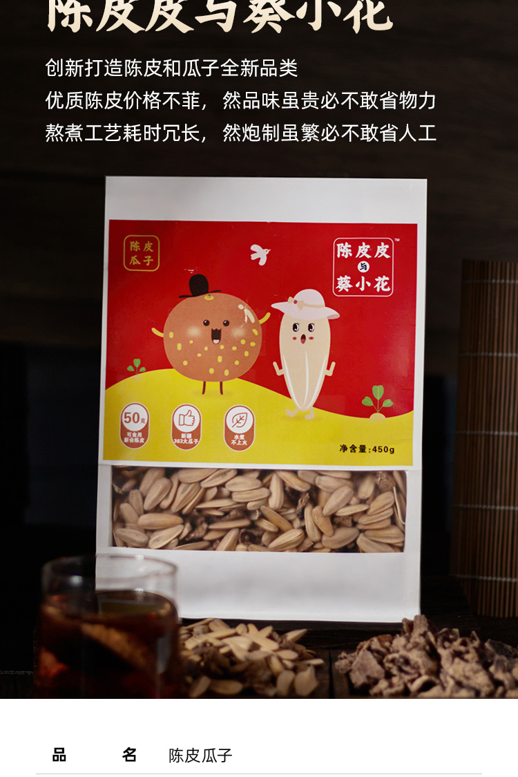 【广东味道】陈皮瓜子独特的陈皮风味 新会8年陈皮 水煮工艺 好吃 2袋450克即食