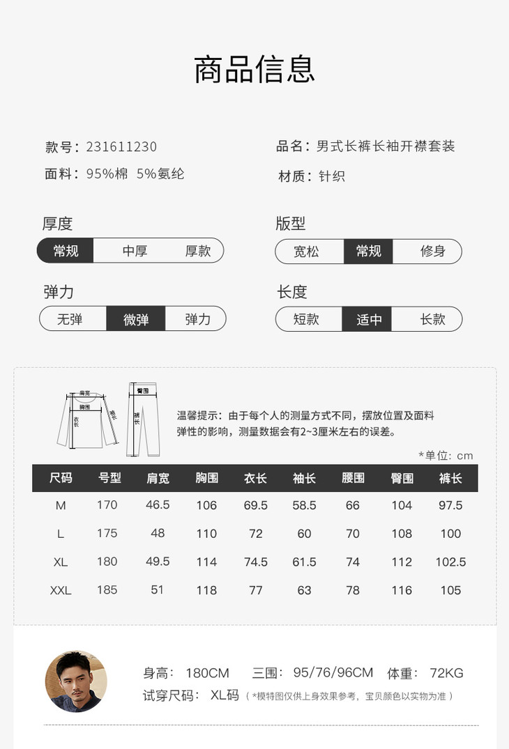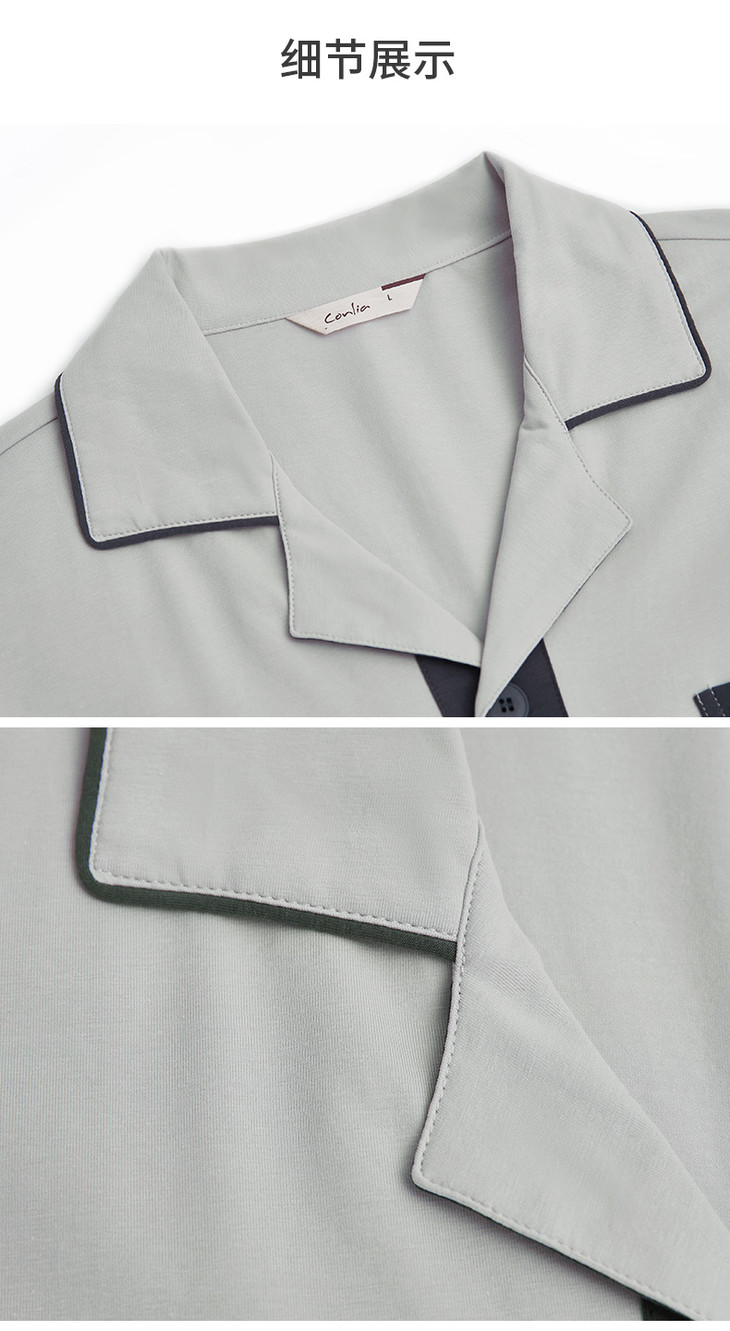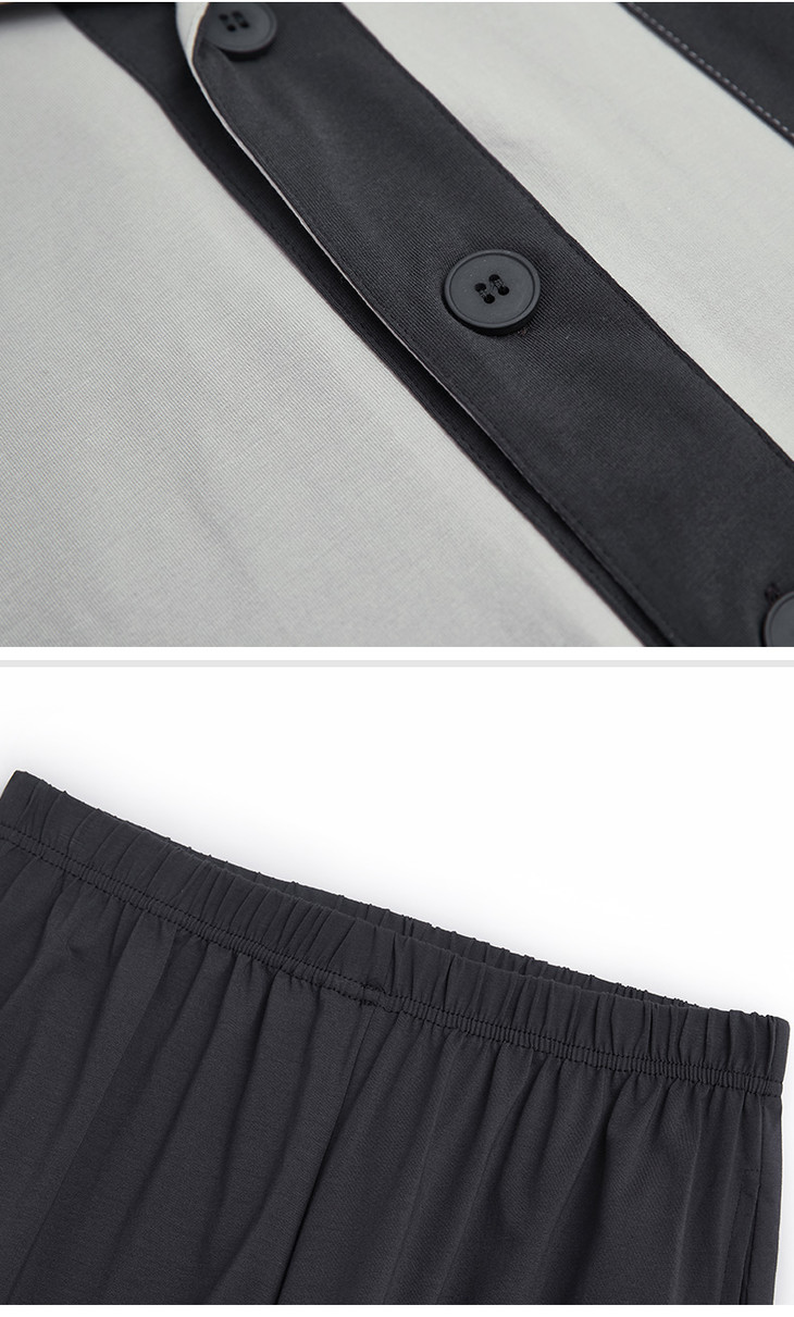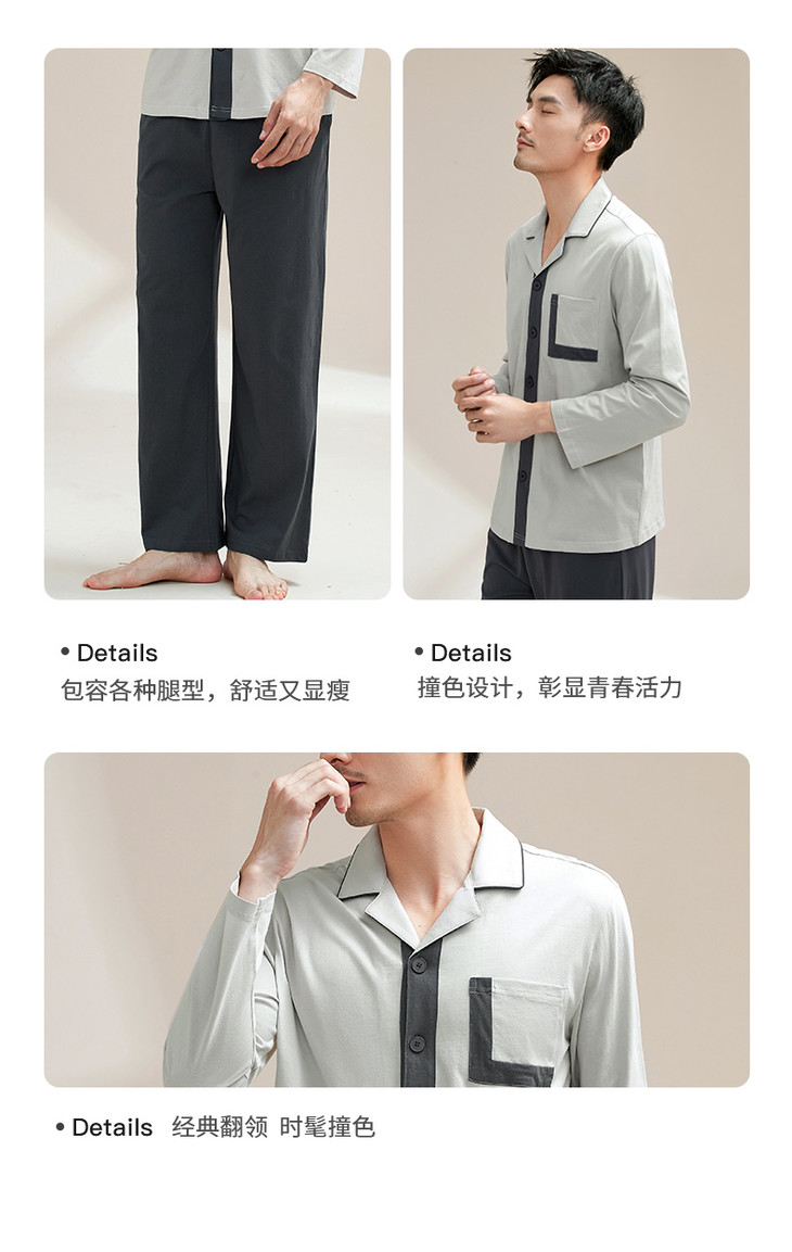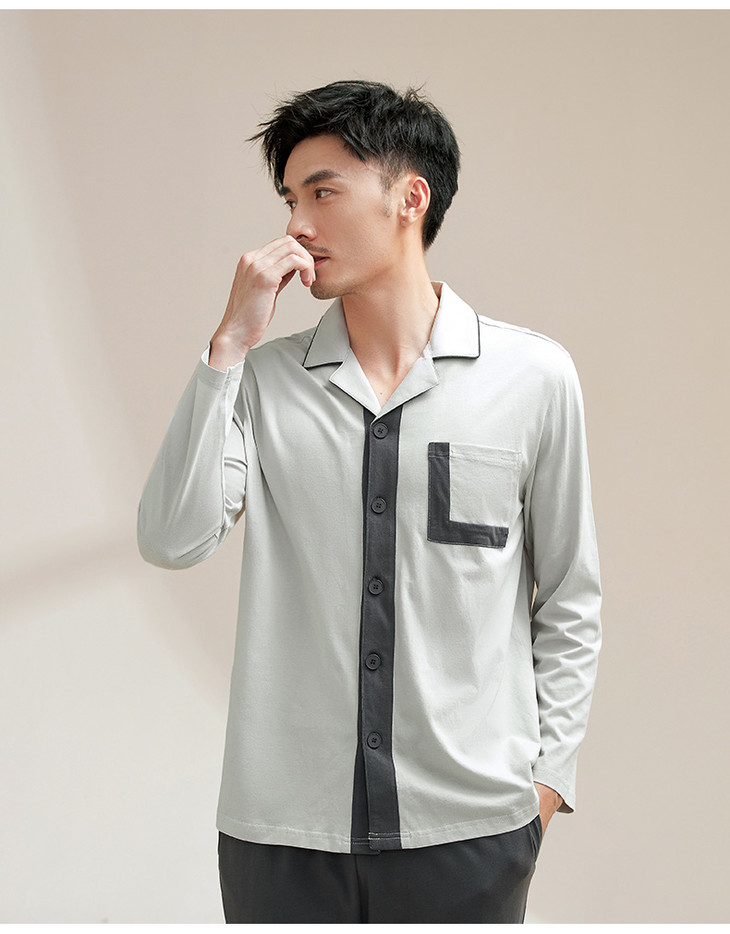 康妮雅睡衣家居服 男式长袖长裤开襟套装*浅灰