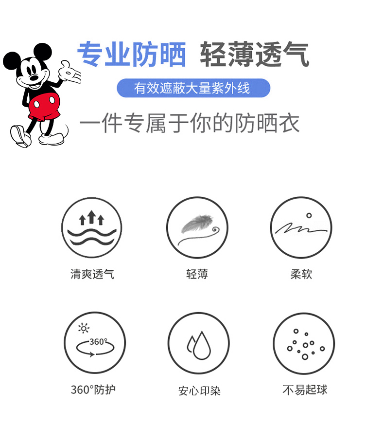 迪士尼儿童防晒衣夏季薄款女童外套冰丝透气男童皮肤衣夏装空调衫
