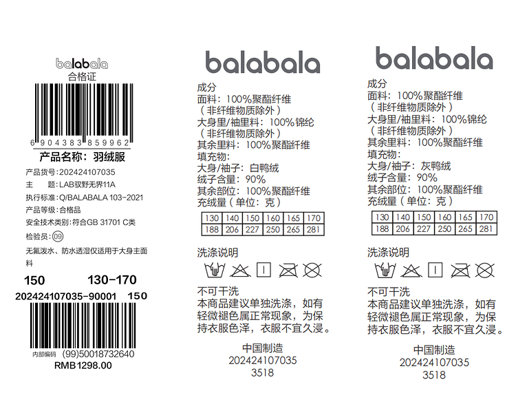 【lab系列】巴拉巴拉儿童长款羽绒服冬季童装女外套加厚保暖防护