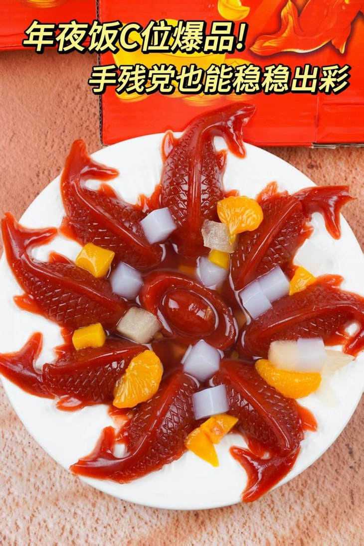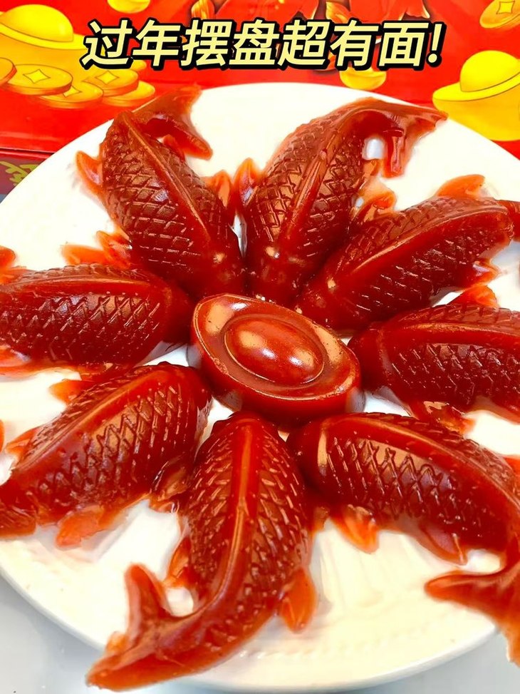 这个锦鲤造型,真的太会了🎉🎉 每条鱼都栩栩如生,鱼头对鱼尾,顺风又顺水🌟 年年有“鱼”步步“糕”,寓意特别好👍 过年的时候往餐桌上一摆 瞬间就有节日氛围了好嘛🧨 红彤彤的超吸睛👀直接秒杀其他菜品 亲戚朋友看到了都会夸你会买👍