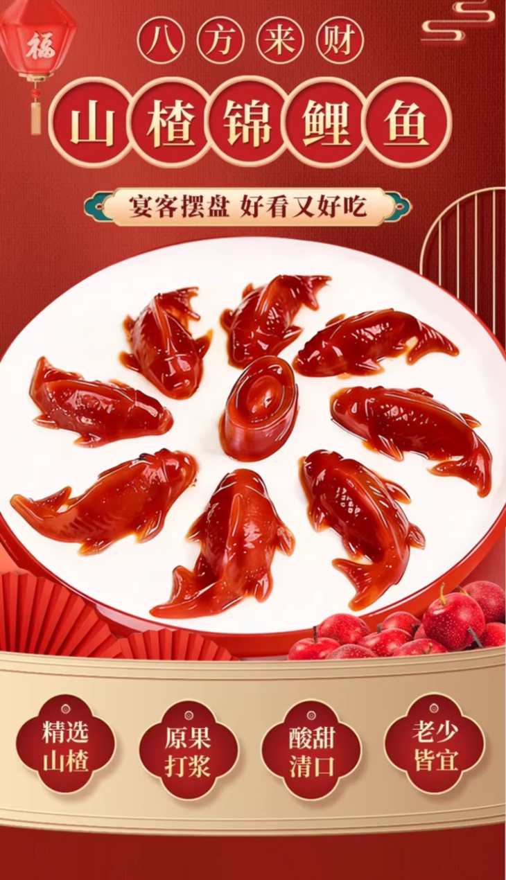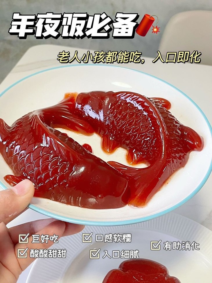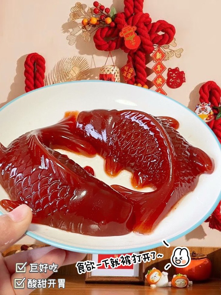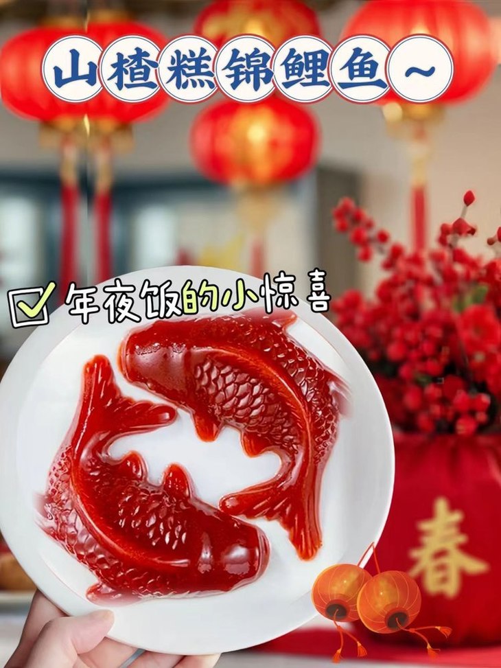 山楂藏福、鱼跃龙门、福满家门🏮 年夜饭C位爆品❗️手残党也能稳稳出彩✨ 还没备硬菜的宝子看过来👉 手残党闭眼冲都不翻车‼️ 红彤彤的造型自带喜庆buff🧨 红色纹路造型像极了跃动的锦鲤🐠 往桌上一放,亲戚长辈夸不停,小孩追着要,妥妥焦点 酸甜口感超治愈,清爽不齁甜,解腻又开胃😋 吃完大鱼大肉来一口太绝了!