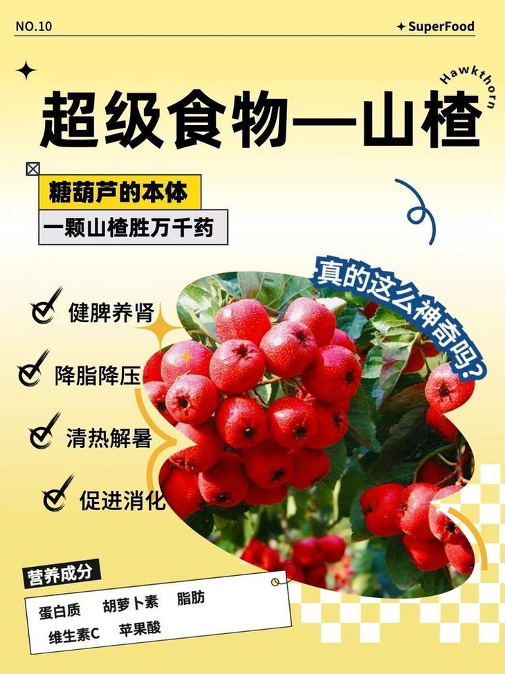 家人们!别只知道山楂好吃啦😋 它可是咱们中国特有的药果,好处多到数不清❗️ 老祖宗诚不欺我❗️俗话说得好👇 经常吃山楂,降脂又降压‼️ 这可不是空穴来风的噱头,实打实的养生干货💪 生吃或作果脯、果糕,干制后还可入药 好处多到说不完!宝藏食材一枚💎