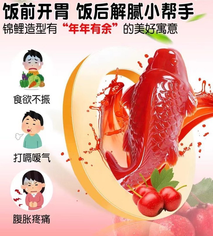 家里有孩子的必囤❗️专治挑食小神兽😜 很多小朋友都不爱吃饭,挑食偏食 这个锦鲤山楂鱼酸甜开胃,完全戳中小朋友的喜好❤️ 实打实的山楂果肉做的🍒 吃了之后食欲都变好了😋 再也不用担心孩子吃饭问题啦❗️