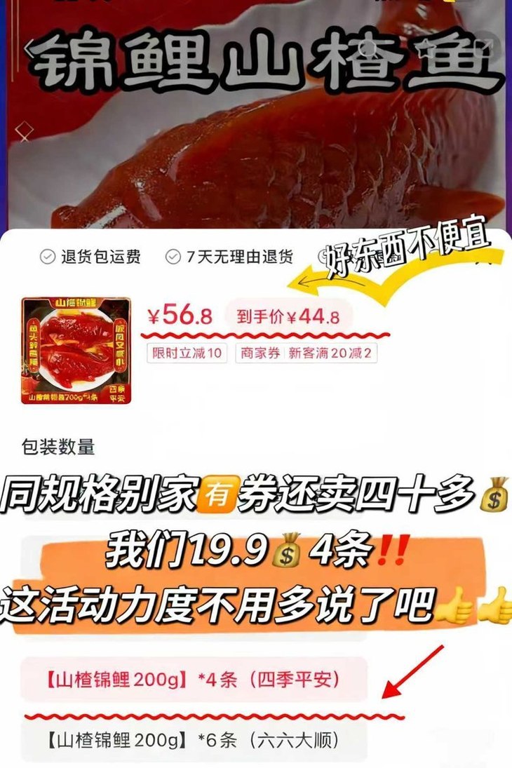 今天锦鲤山楂鱼活动力度超级大❗ 💰11.9两条尝鲜💰19.9直接带走4条❗【锦鲤山楂鱼】 每条都是足足200克的大规格✅ 420g的盒装更是划算❗💰18.8一盒💰29.9两盒❗ 别家随便四五十,咱们直接省下快一半的钱💰 活动不常有 ,看到就是赚,快!去!囤! 看到就是赚到,手慢真的秒空!
