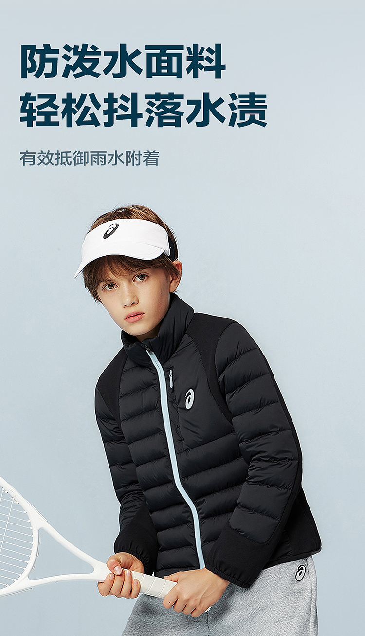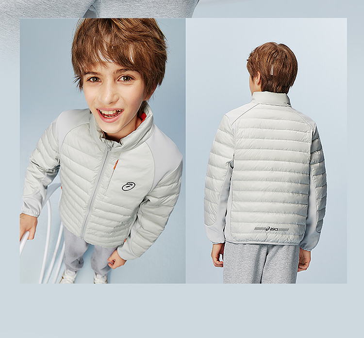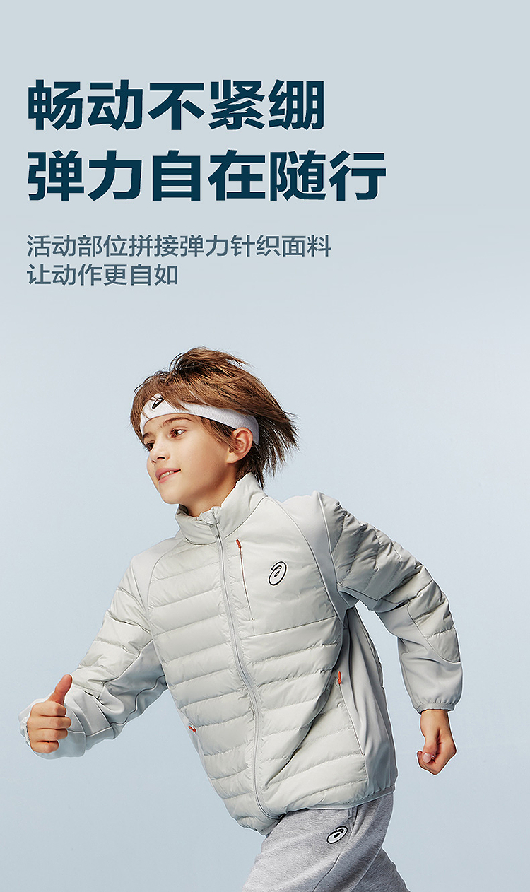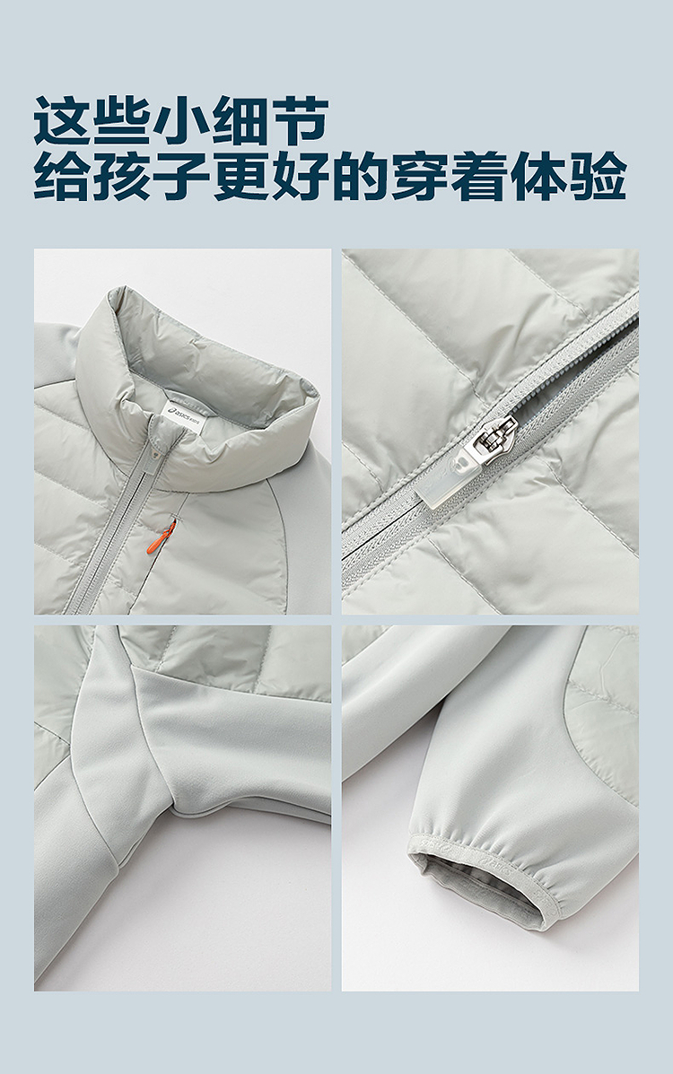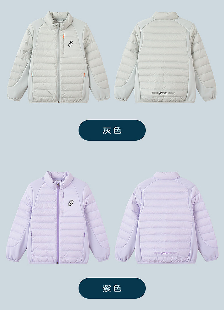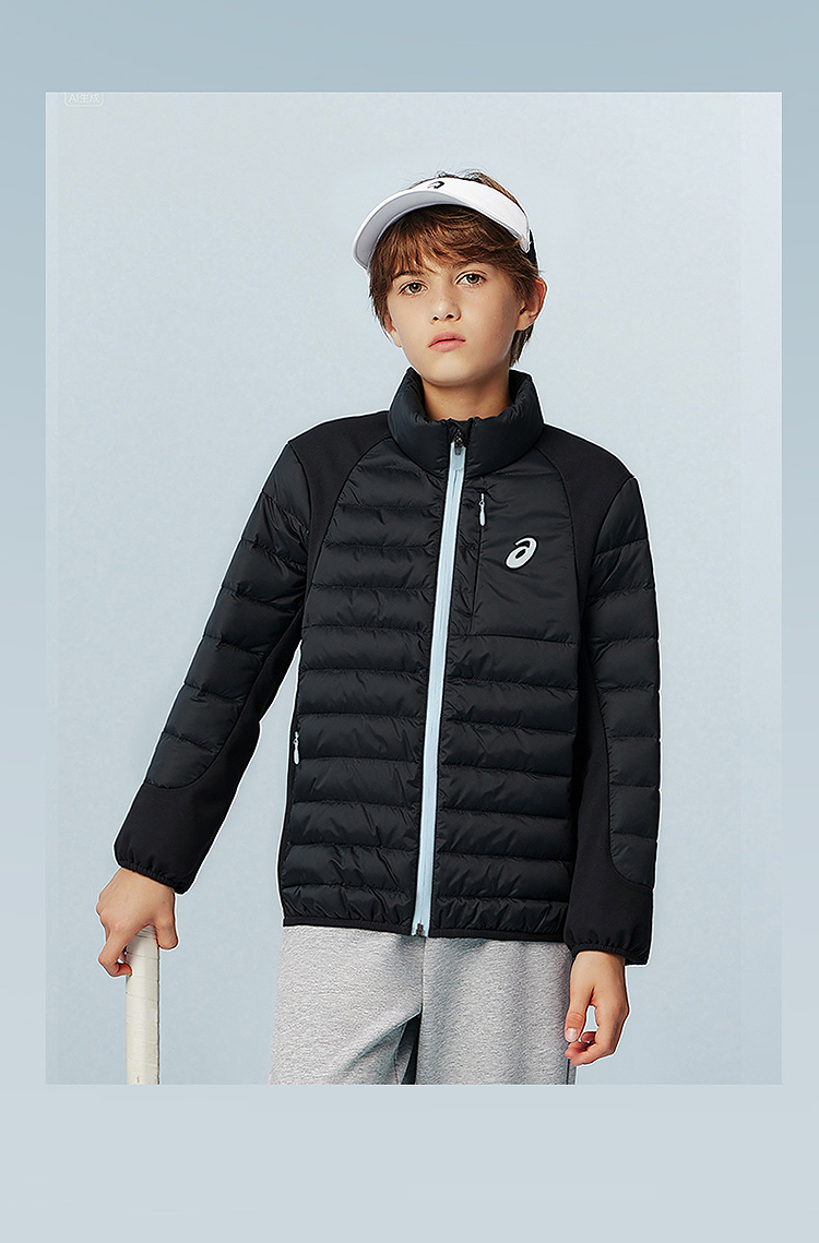 ASICS/亚瑟士儿童25年新款拼接弹力羽绒外套轻量保暖百搭防泼水