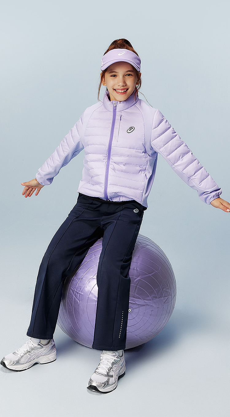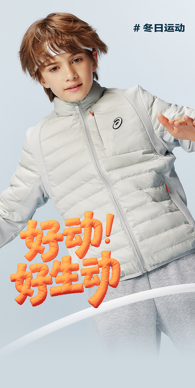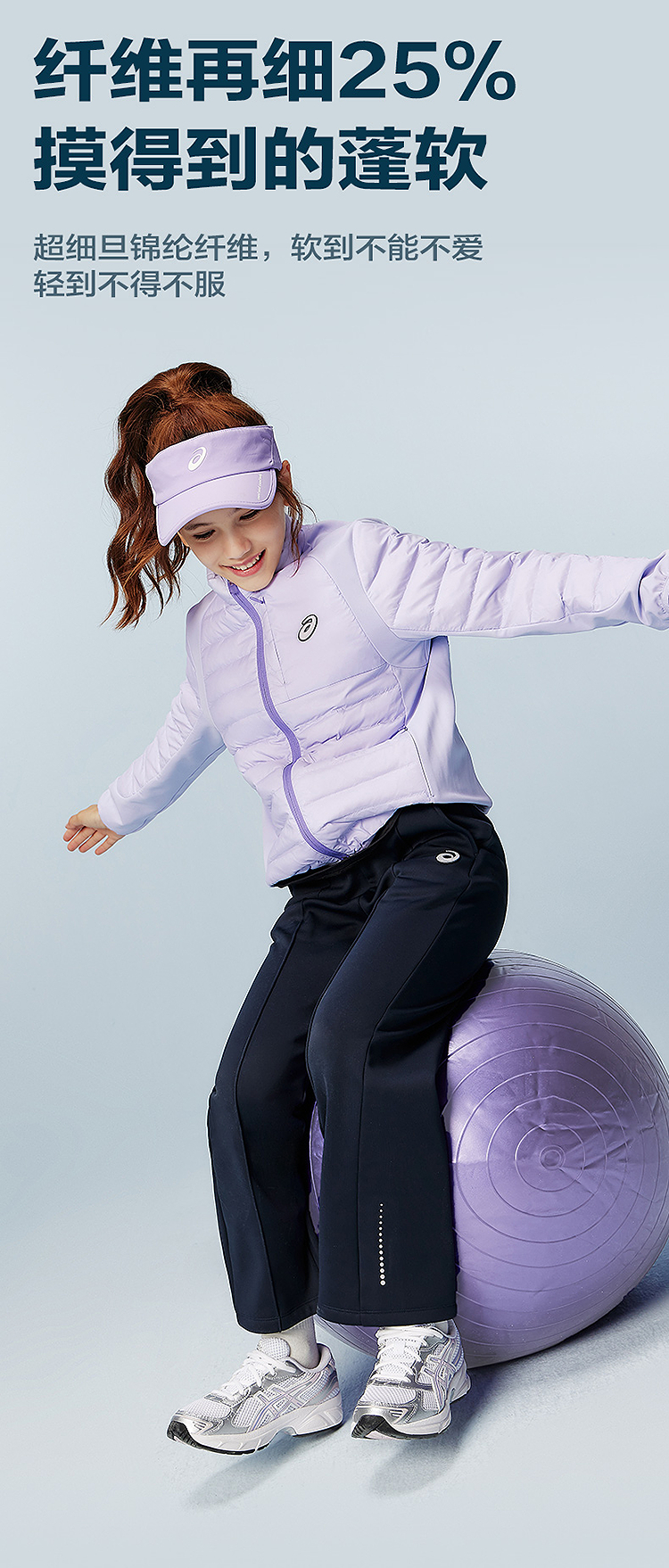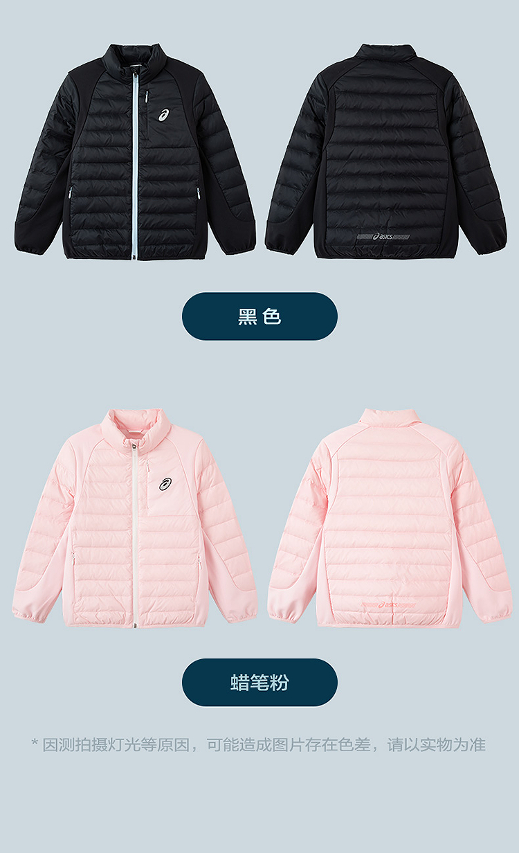 ASICS/亚瑟士儿童25年新款拼接弹力羽绒外套轻量保暖百搭防泼水