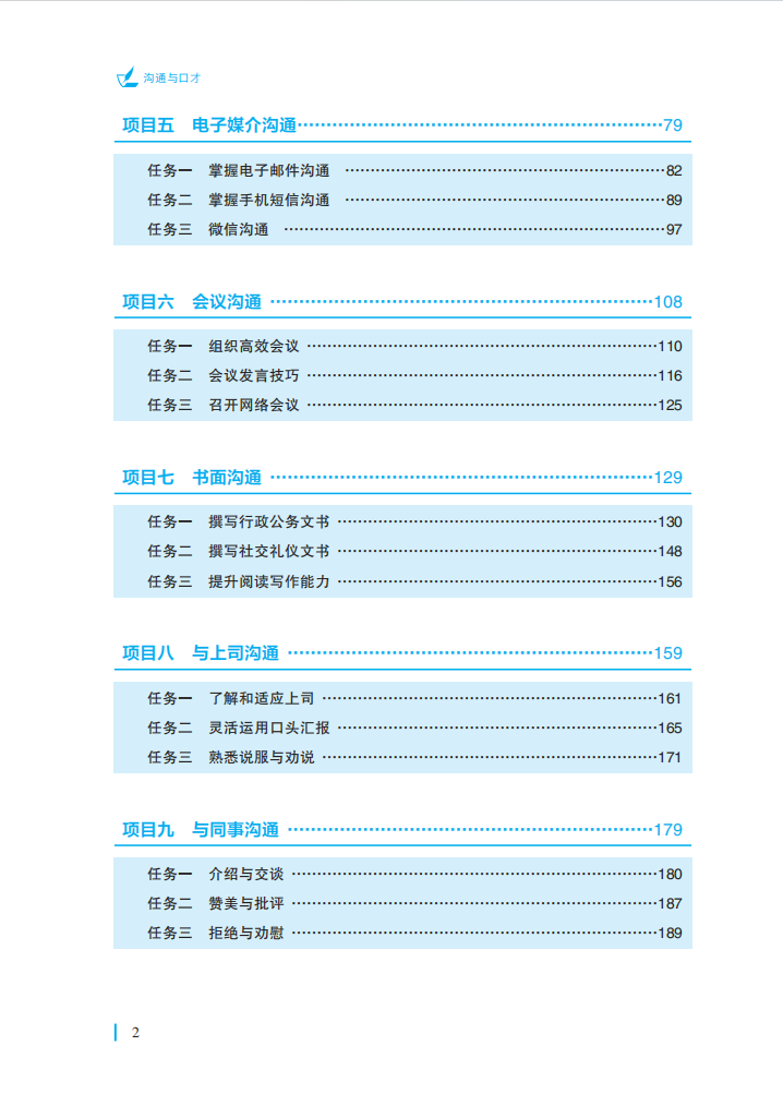 本书基于多样化数字沟通方式的存在,有机融入课程思政相关内容,避免沟通技巧的滥用,重点分析了非语言沟通、倾听与反馈、电话沟通、电子媒介沟通、会议沟通、书面沟通、与上司沟通、与同事沟通、与客户或群众沟通等内容,附带讲了求职面试沟通、推销与谈判等内容,涵盖面广、实用性强。在培养方法上强调讲授与训练同步、纸质内容与数字资源整合,让学生在切合现代企业工作实际的环境中获得可见的成果和可迁移的能力。