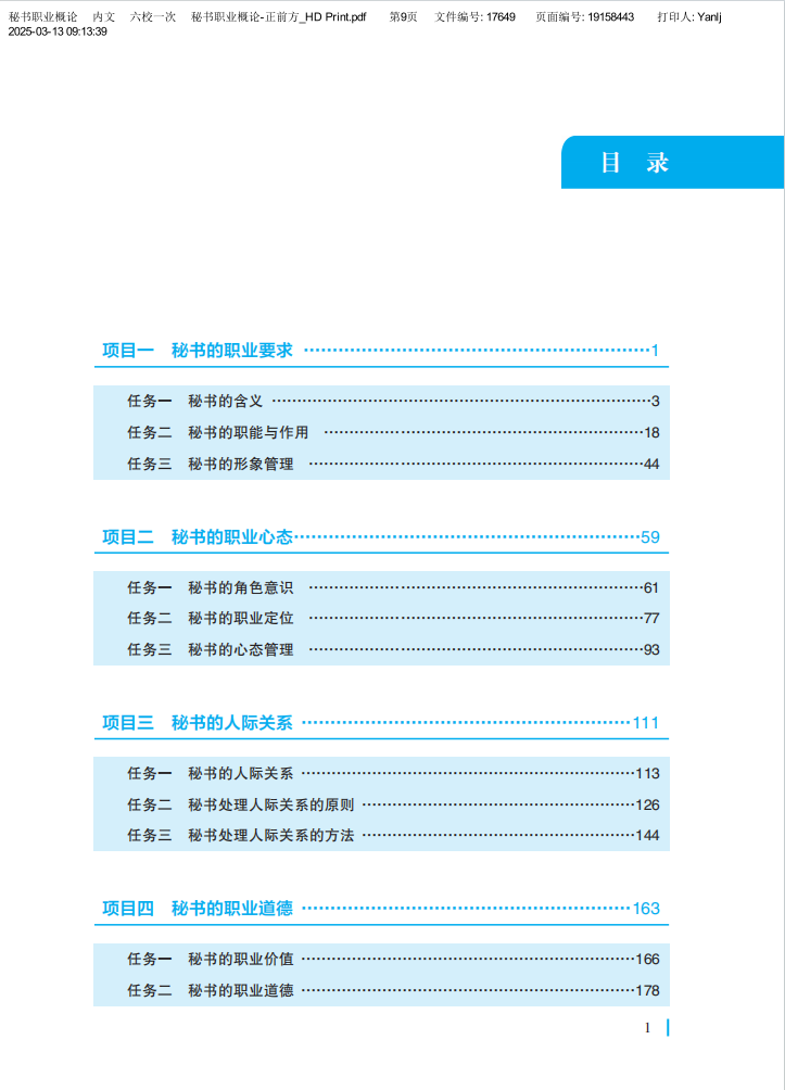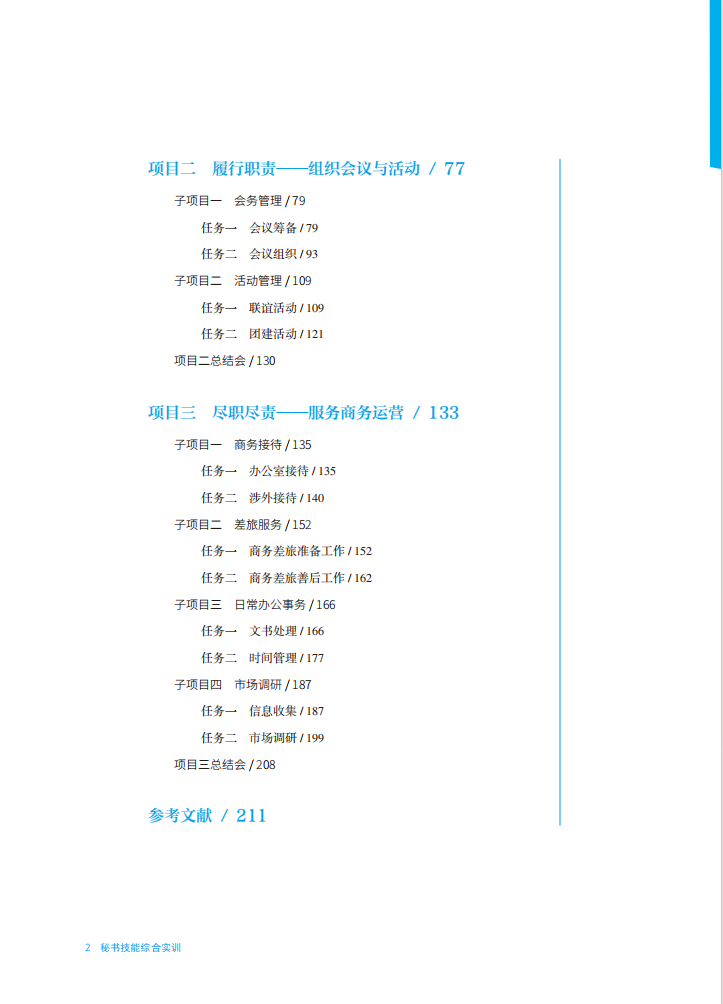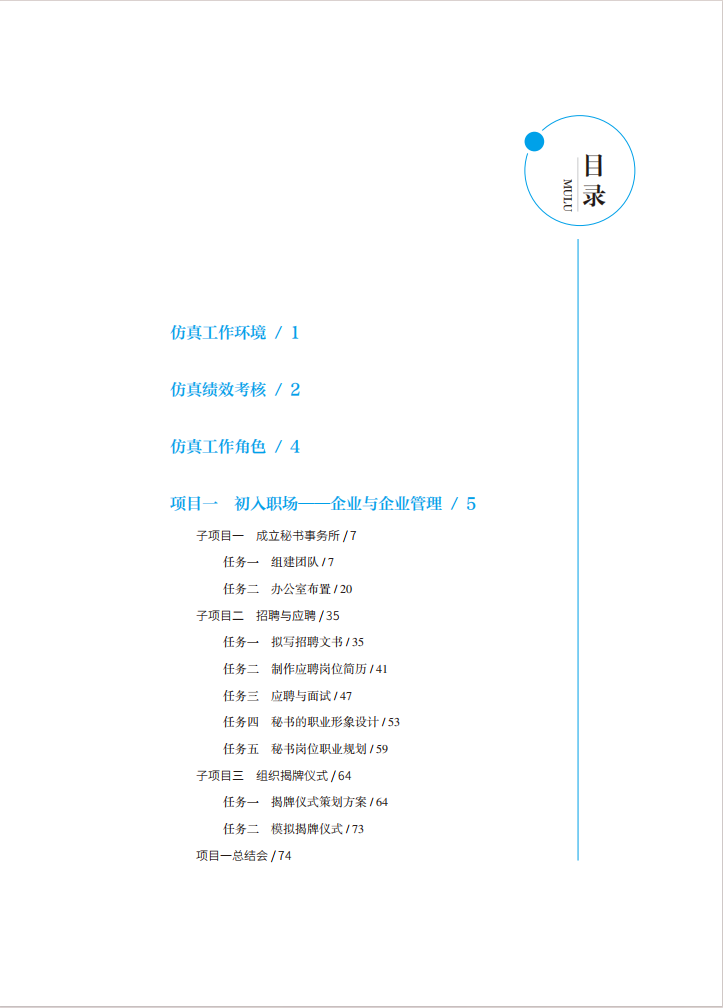 本教材既是针对“秘书技能综合实训”课程,又是以成果导向理念为指导的秘书专业实训指导书,还是从学生、教师、专业三个层面检核学生能力达成度的“顶点课程”。从体例编排、内容设计、使用方法到实训模式都不同于以往的同类教材,以仿真的工作任务、仿真的工作环境、仿真的角色设计为特点,以练就学生过硬的工作技能、真实的职业要求、适切的职场心态为目标,通过对文秘专业主要的知识点、技能点和素养点的重新解构,最终整合成三大项目,将企业的管理方法和思维方式直接植入课堂之中,并以企业真实的绩效考评机制为评量方式,缩短职场与学校之间的距离,是对传统教材和专业课程教学的一种改革尝试。