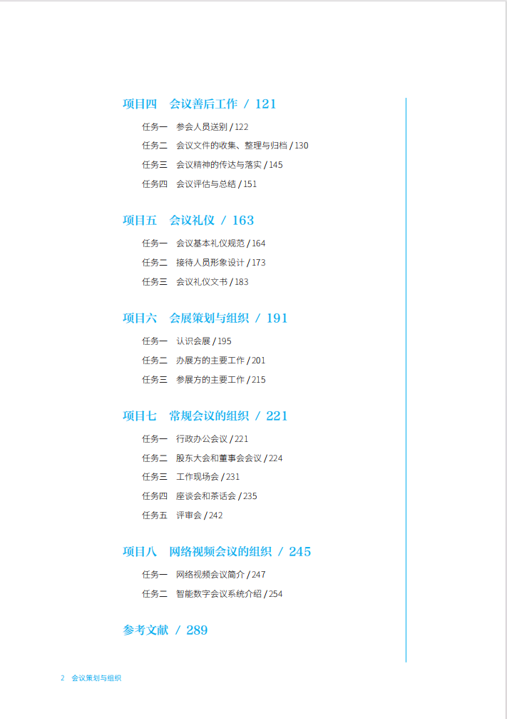 本书为“十四五”职业教育国家规划教材。全书分为8个项目,即会议概说、会议的策划与准备、会中组织与服务、会议善后工作、会议礼仪、会展策划与组织、常规会议的组织、网络视频会议的组织。在编写中,全面落实“立德树人”为根本任务,把思想政治工作贯穿教育教学整个过程,持续深化“三全育人”改革实践,精心设计关于家国情怀、工匠精神、安全意识、劳动精神等的思政案例,进一步挖掘会议组织与策划中所蕴含的思政元素。