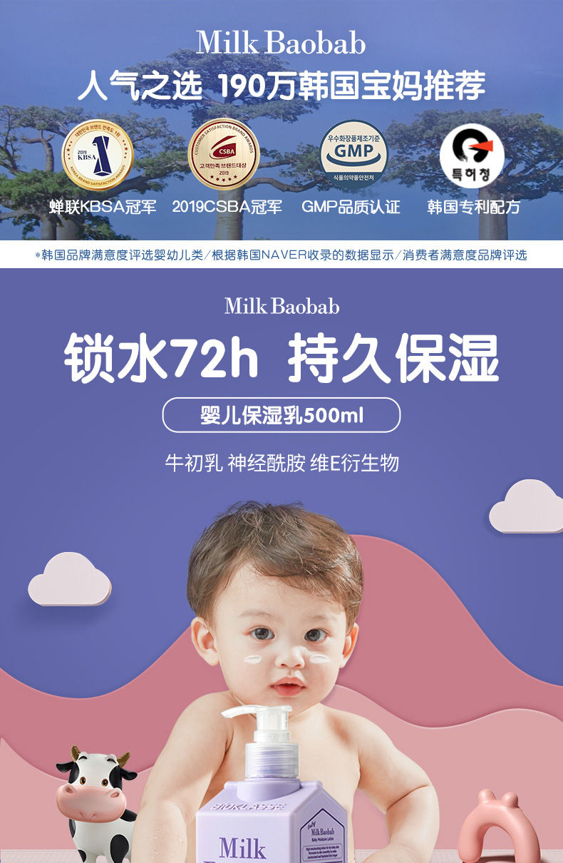 【预售 急单慎拍】韩国迷珂宝婴儿保湿润肤乳500ml全身宝宝身体乳护肤儿童面霜