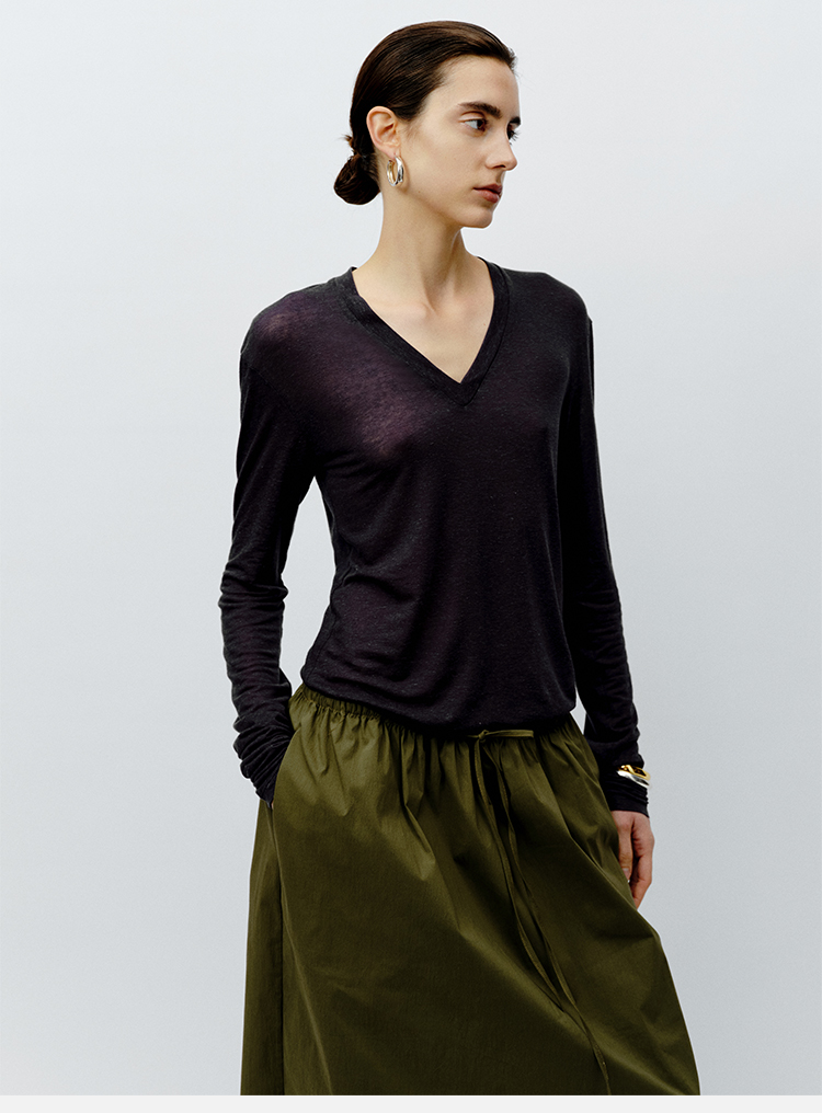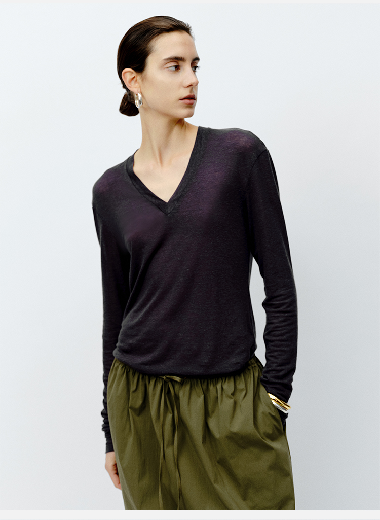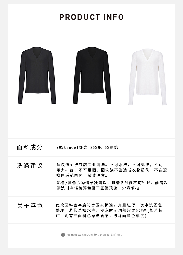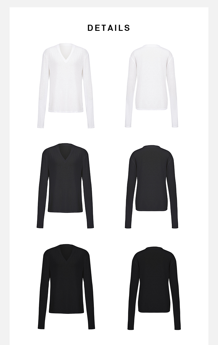HIDEMI 柔顺云朵感清透V领超显瘦长袖薄针织T恤上衣 黑色/灰色/白色