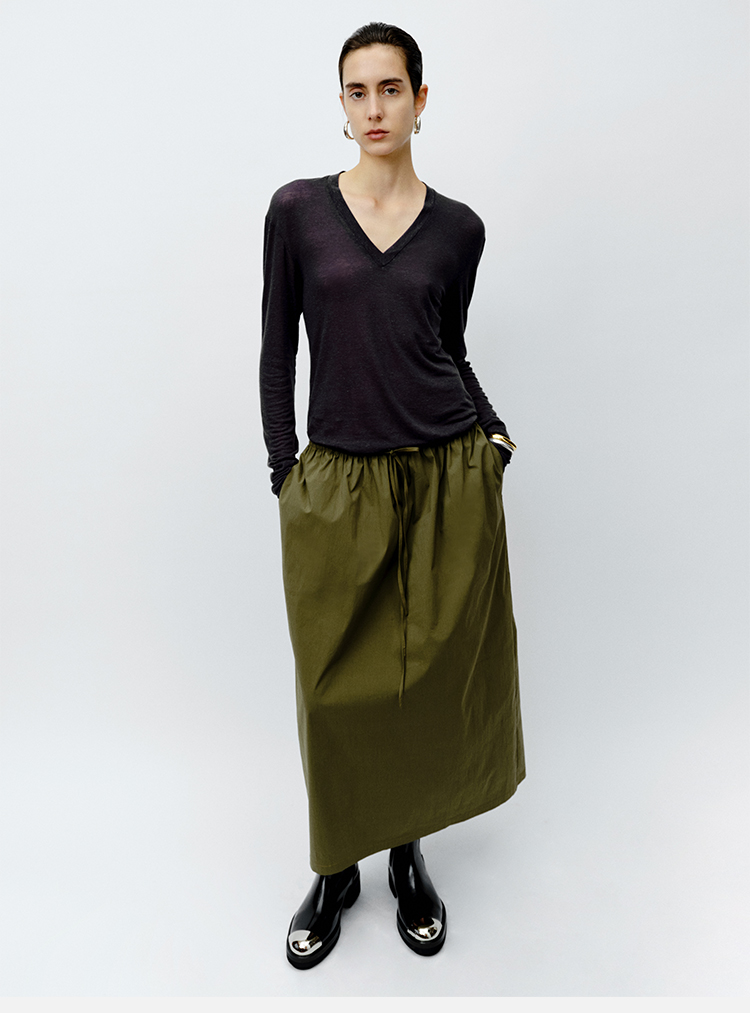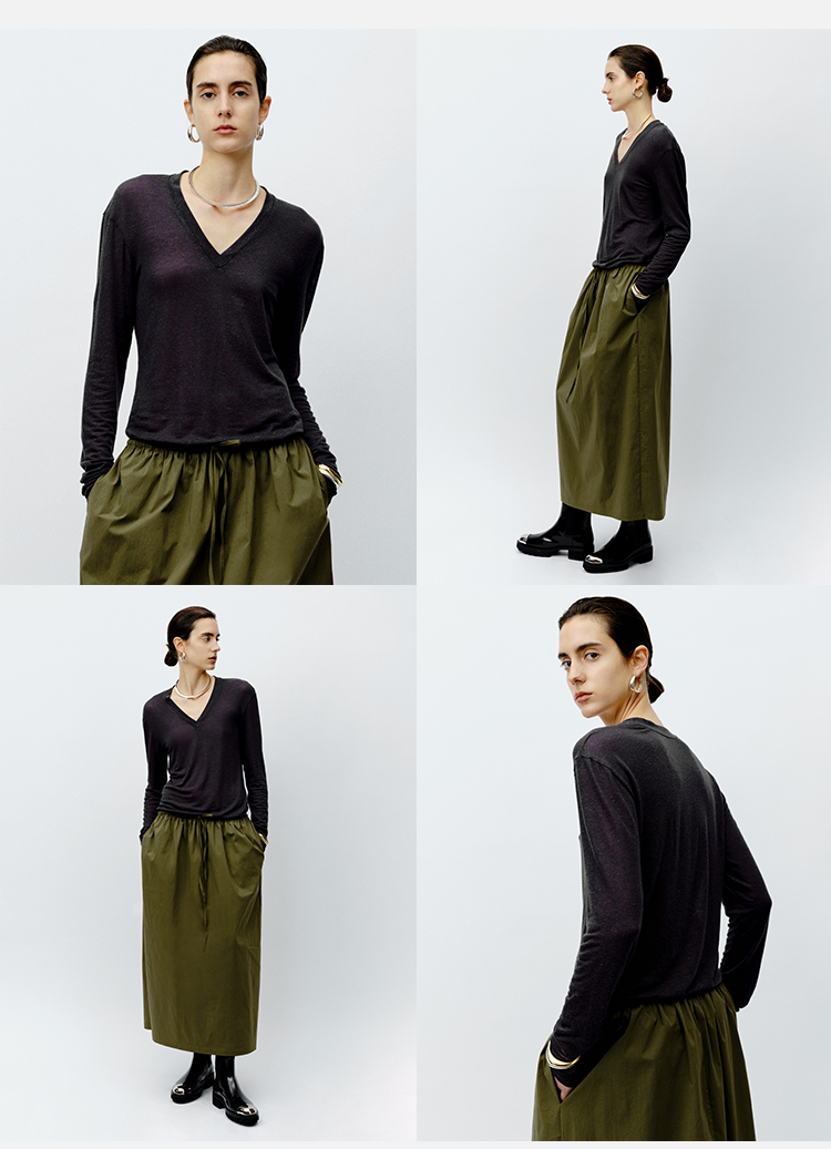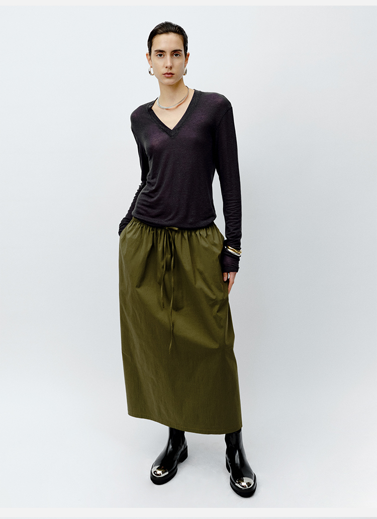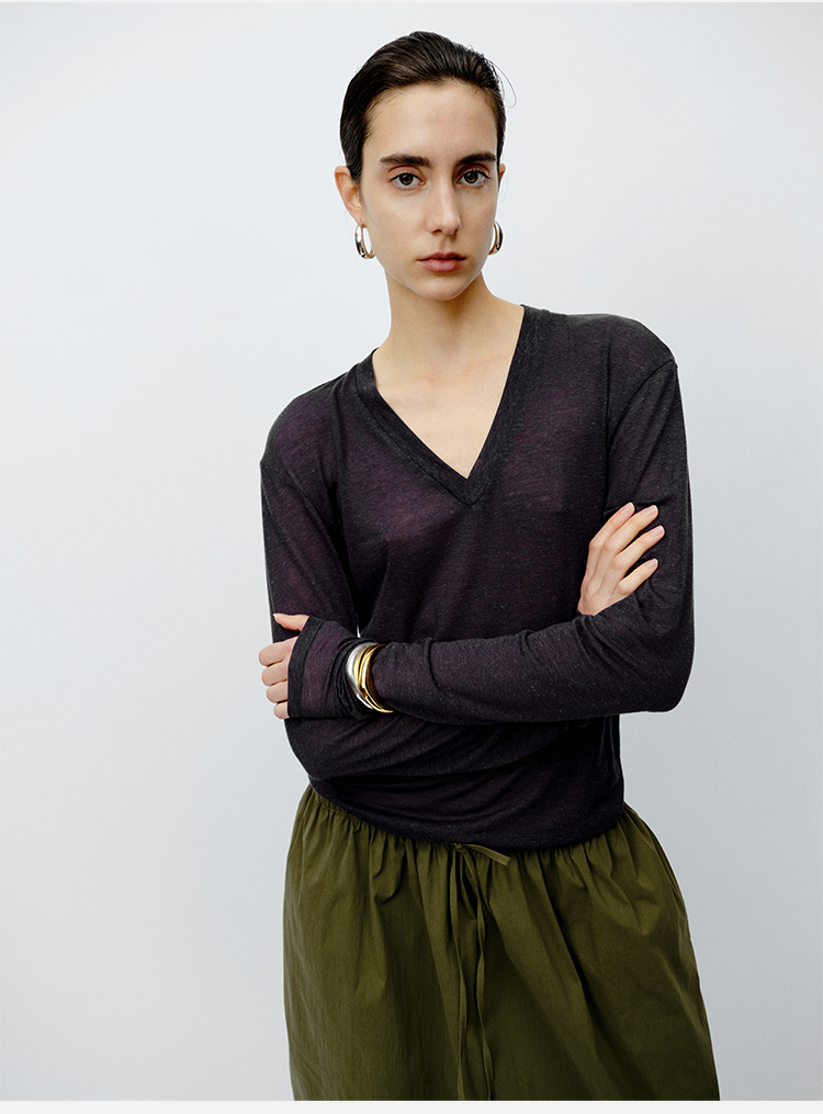 HIDEMI 柔顺云朵感清透V领超显瘦长袖薄针织T恤上衣 黑色/灰色/白色