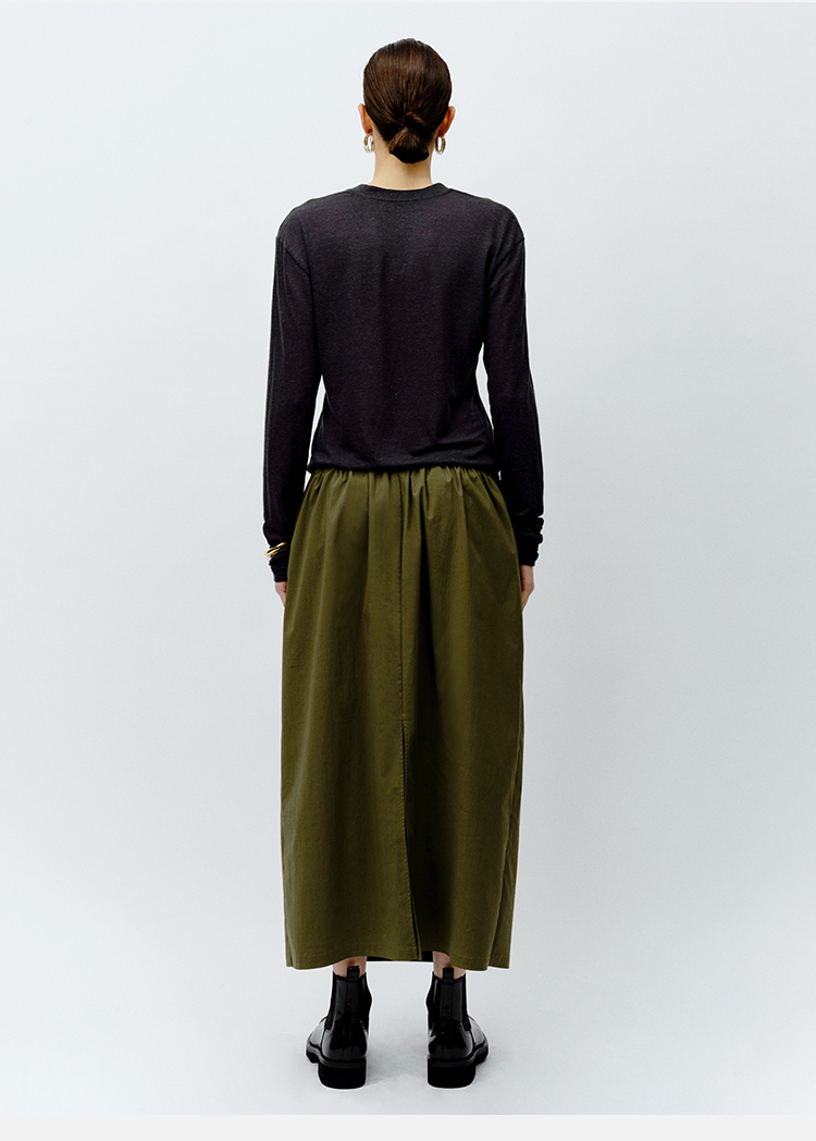HIDEMI 懒人必备/奶昔白肌理感亚麻套装 圆领衬衫/垂直感侧开衩长裤