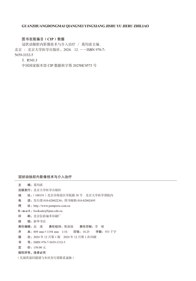 冠状动脉腔内影像技术与介入治疗 心血管介入前沿 葛均波 系统介绍血管内超声及光学相干断层成像的成像原理等 北京大学医学出版社