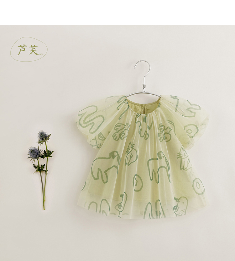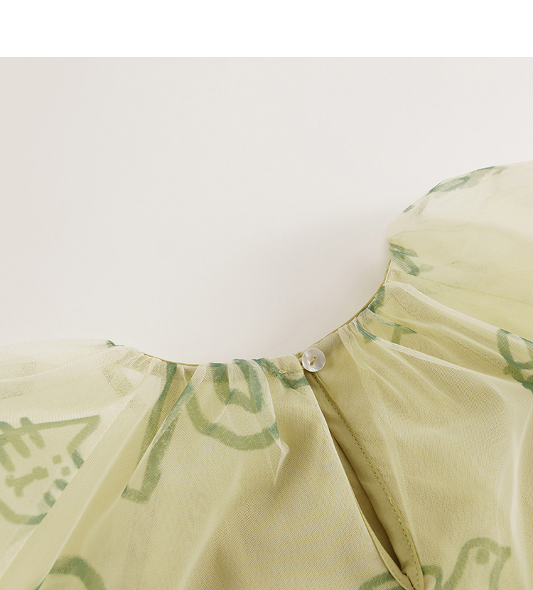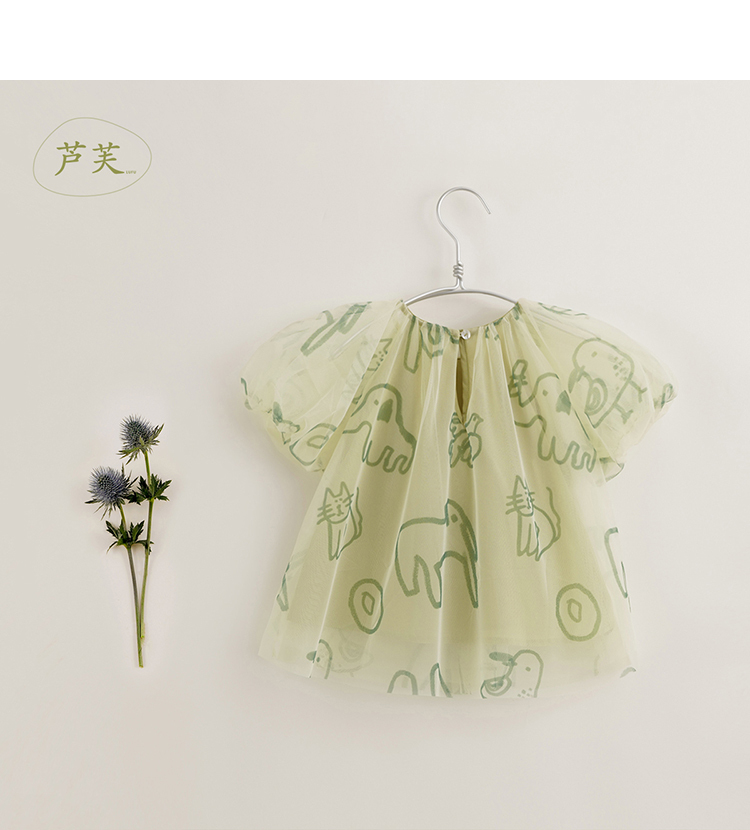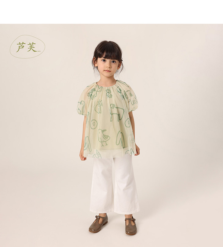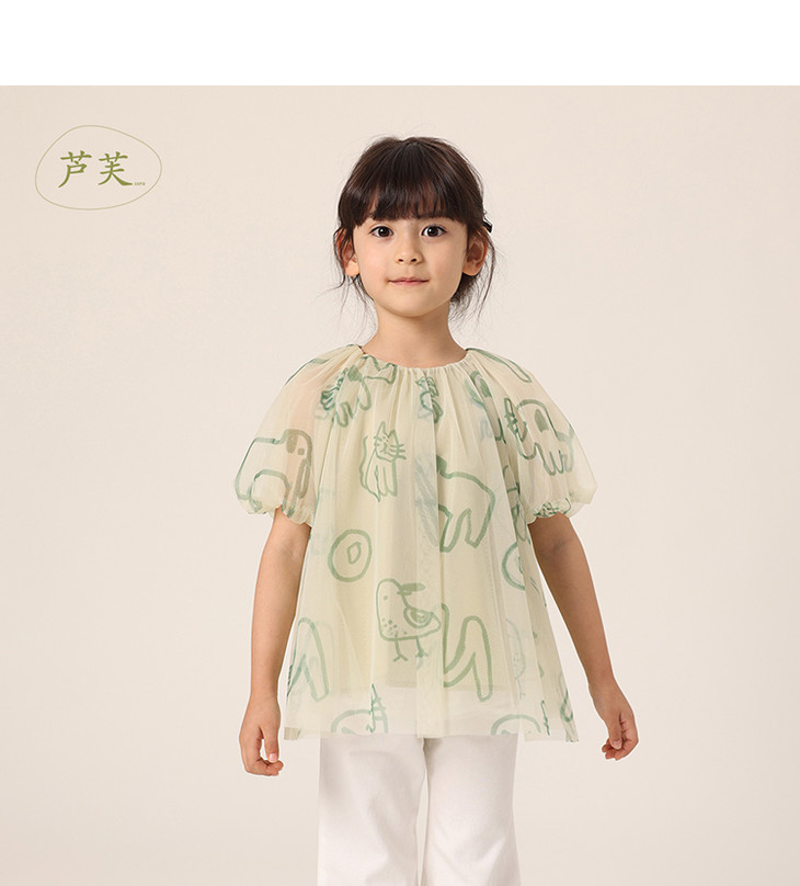 【马克珍妮 芦芙】夏装新款 女童涂鸦泡泡袖网纱小衫230307