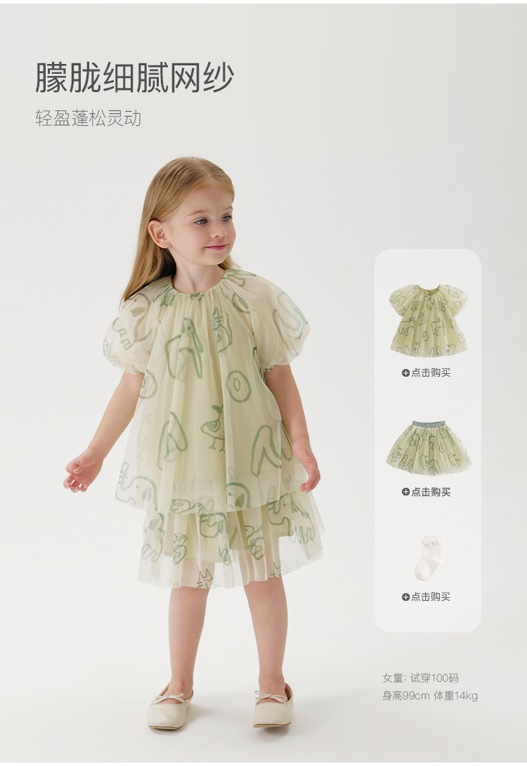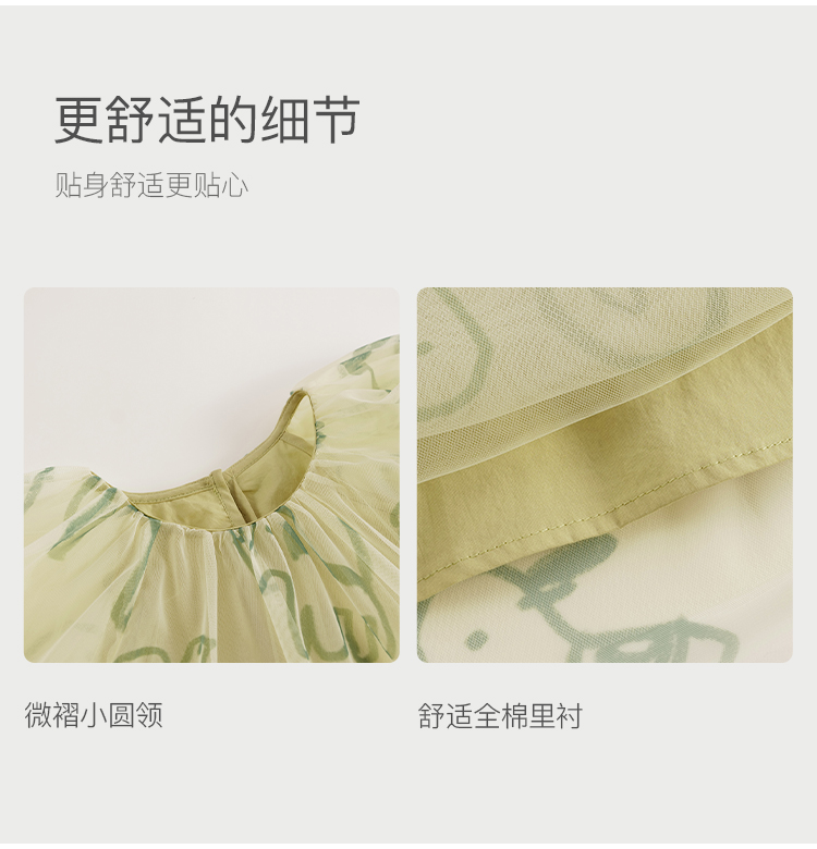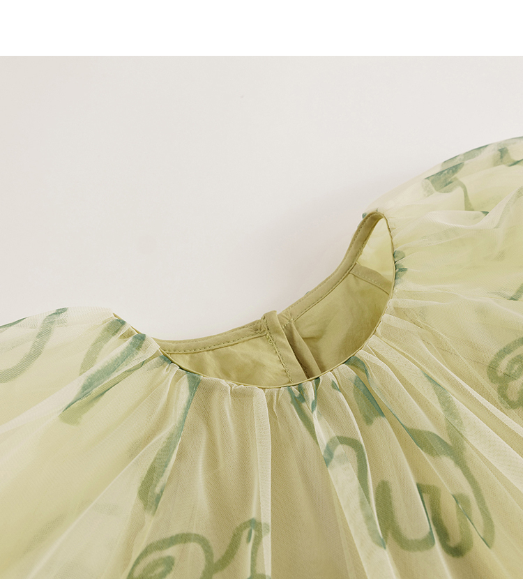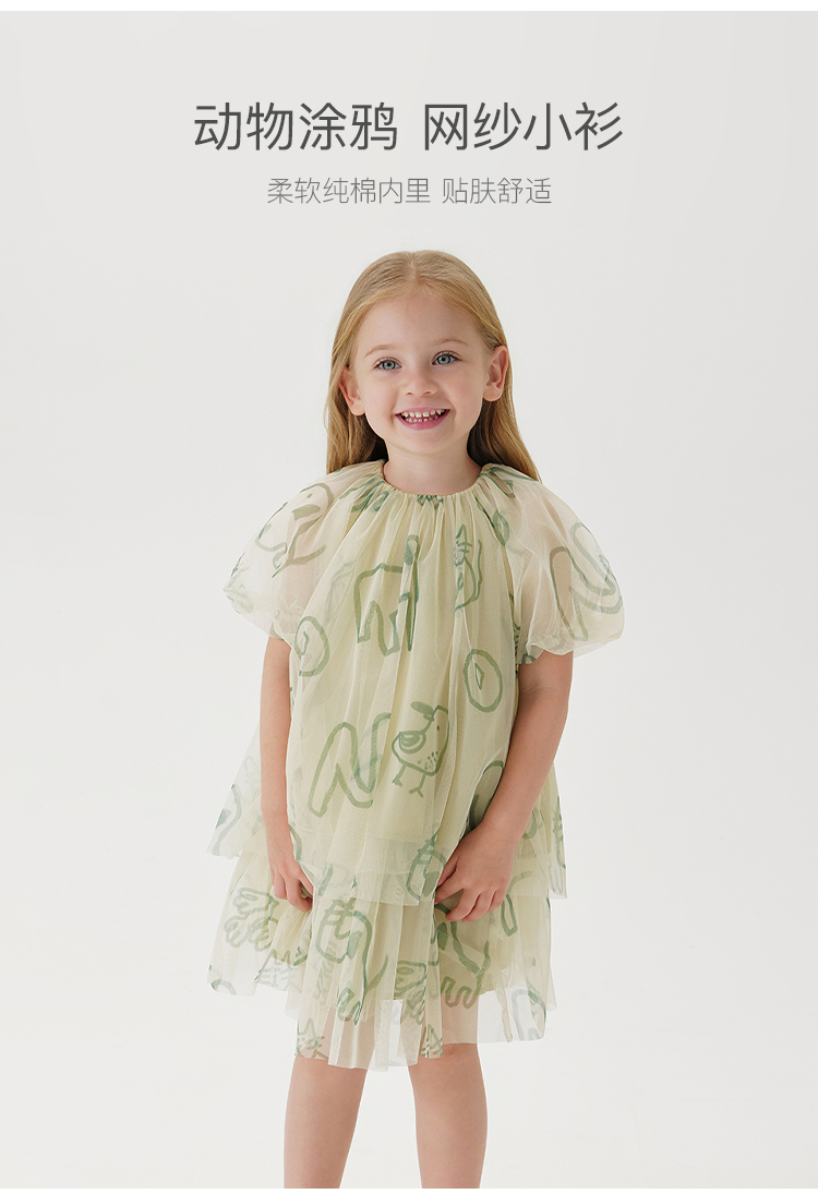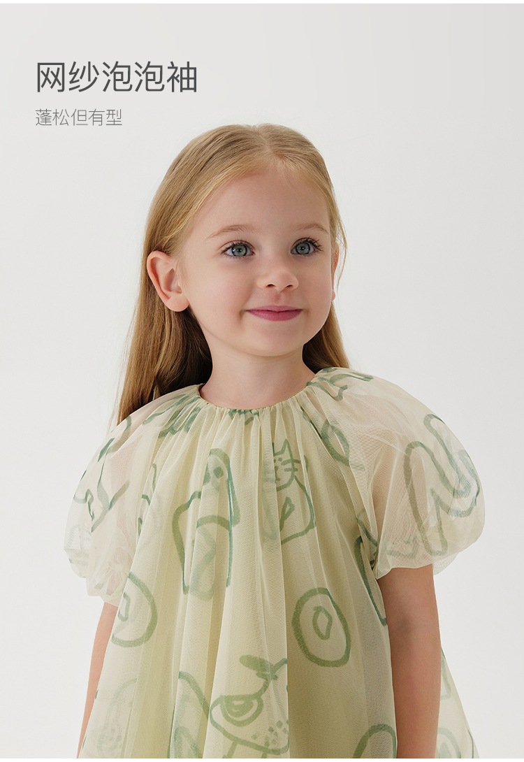 【马克珍妮 芦芙】夏装新款 女童涂鸦泡泡袖网纱小衫230307