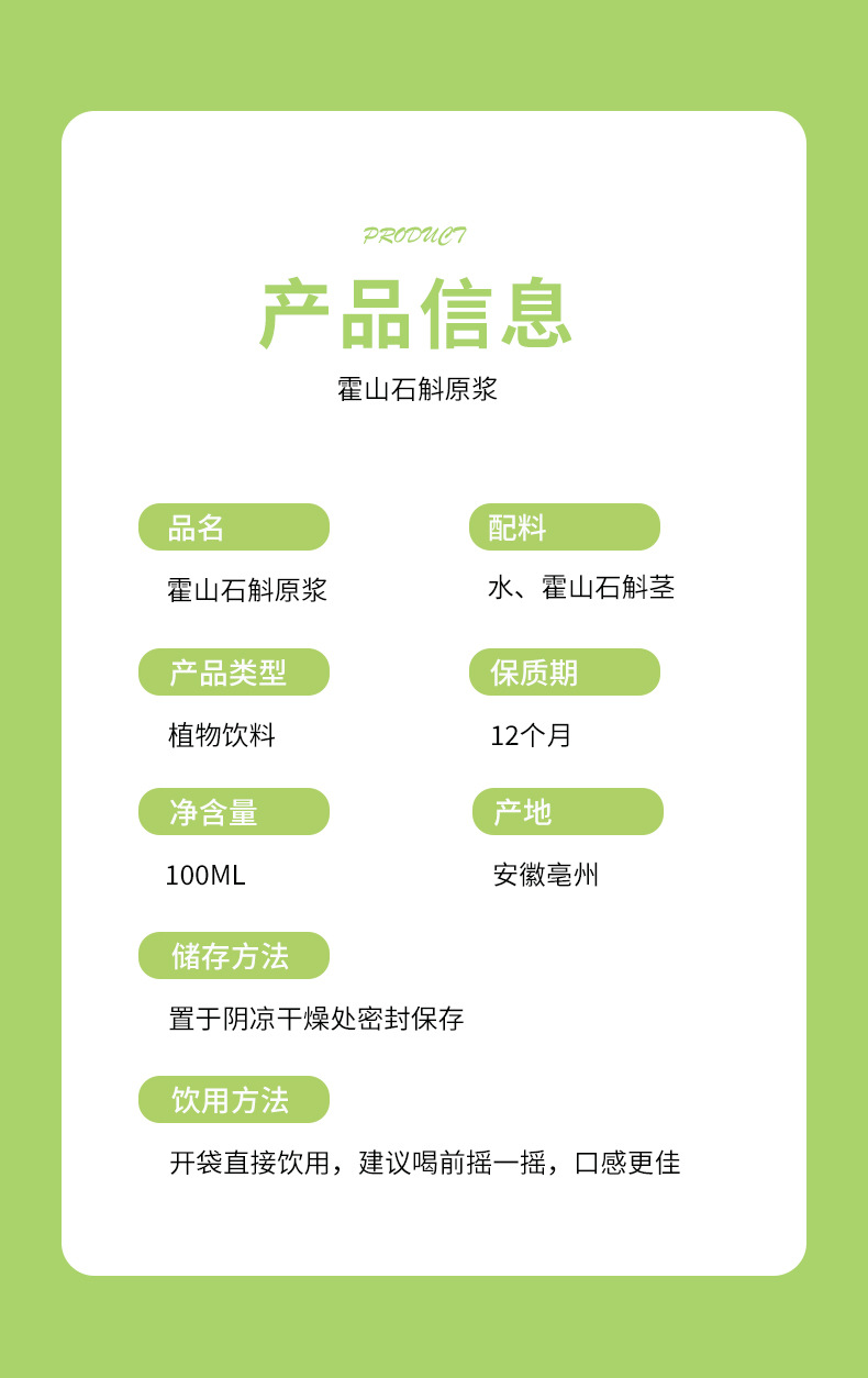 【甄选原材 清香质朴!霍山石斛原浆】直接喝的植物精粹, 石斛鲜榨汁 原料,石斛原汁浓缩汁新鲜萃取