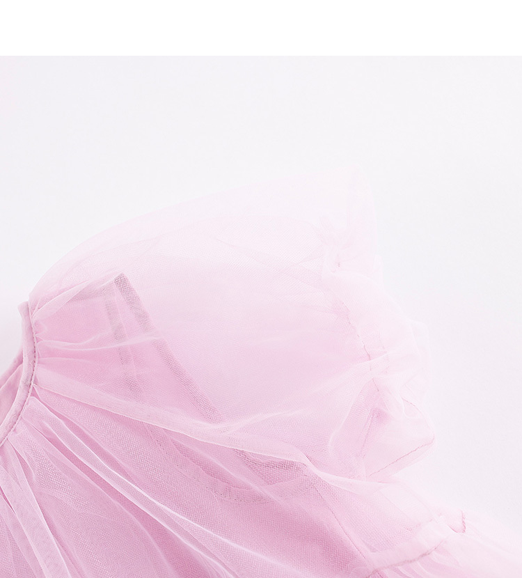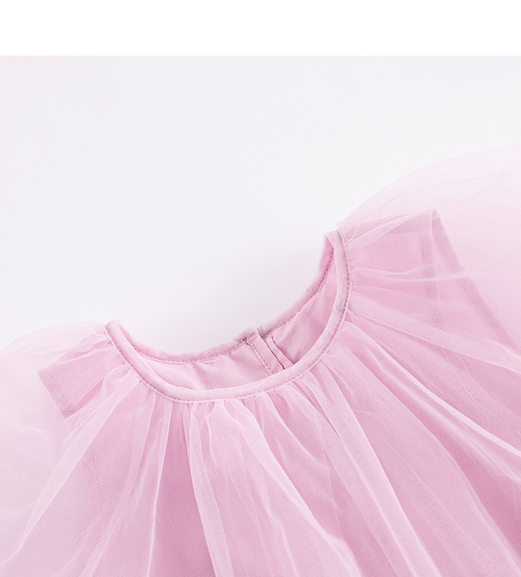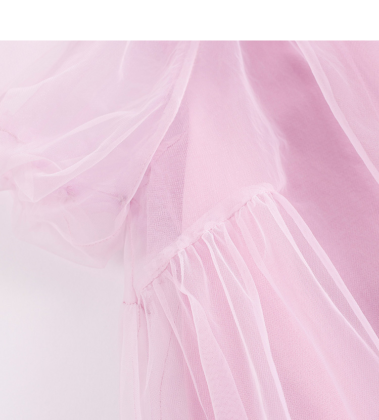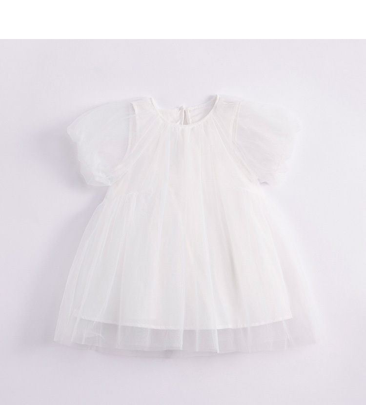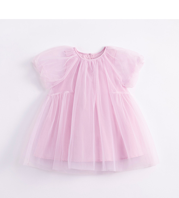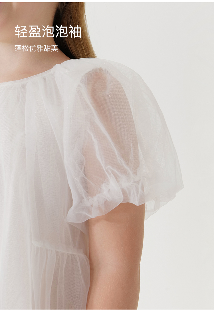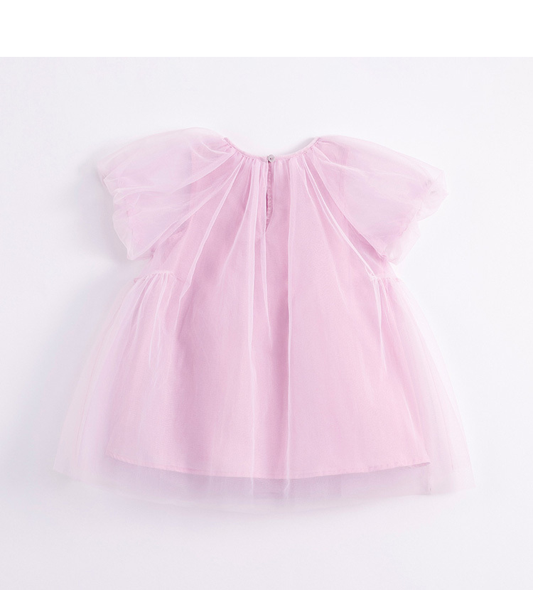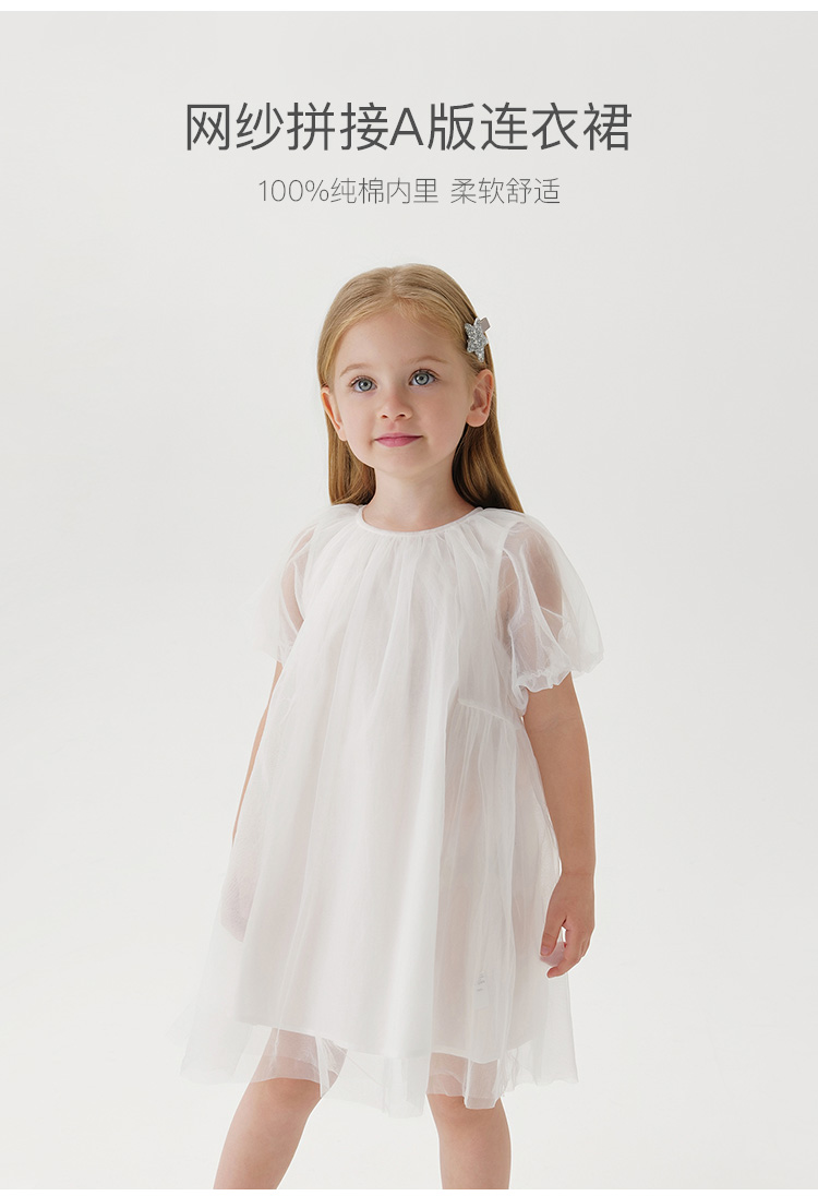 马克珍妮新款夏装 女童田园风网纱拼接A摆连衣裙231058