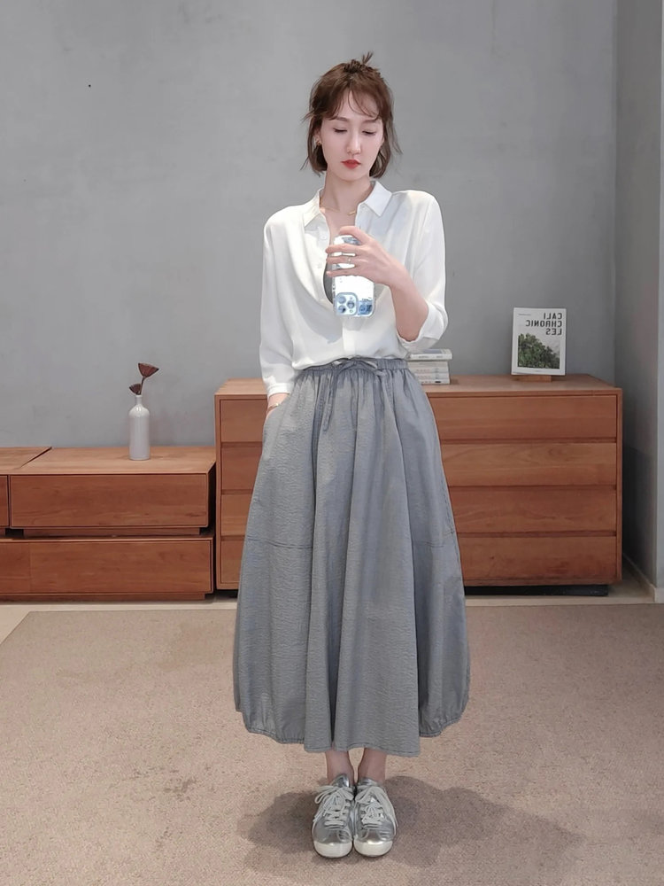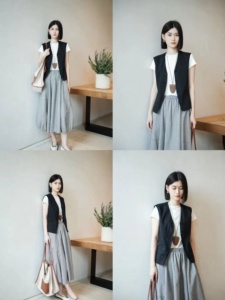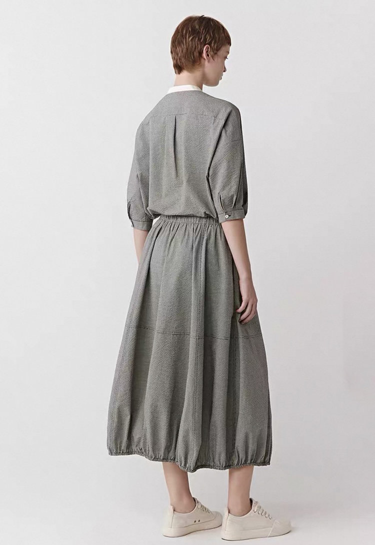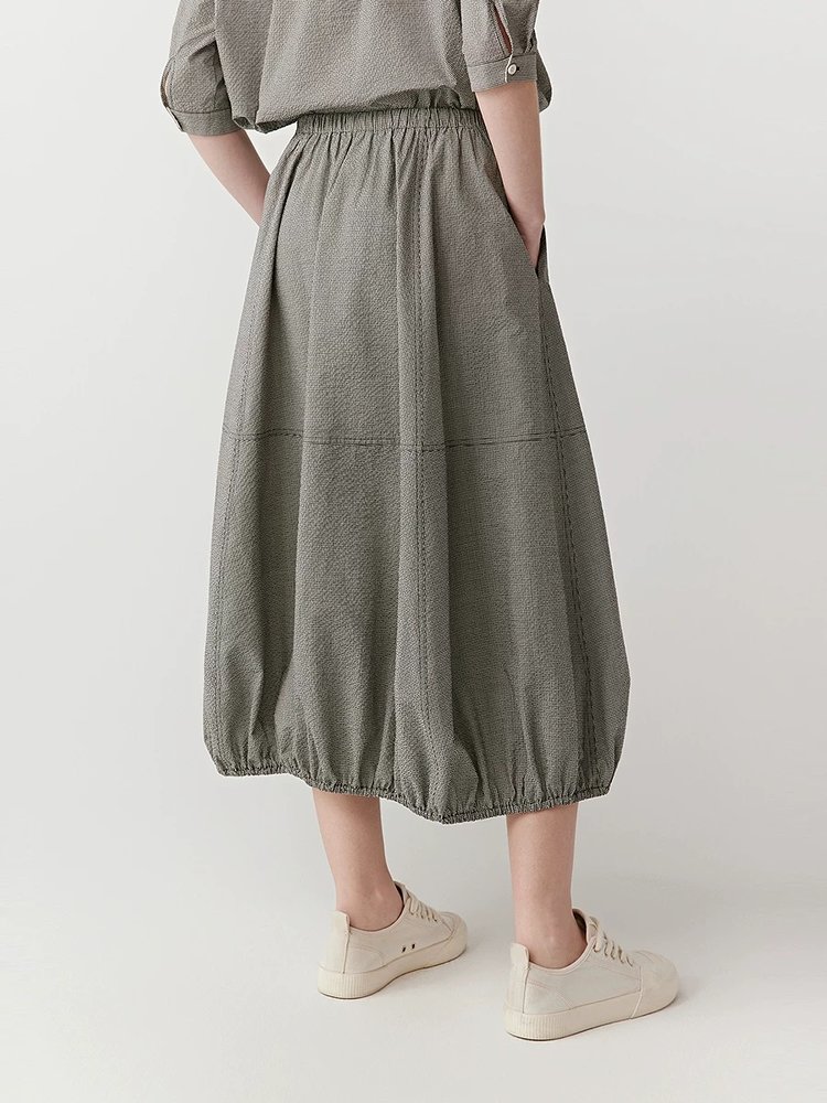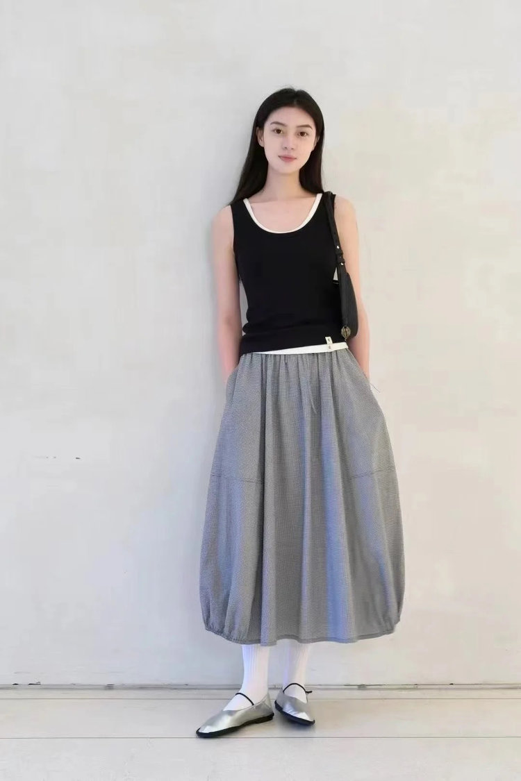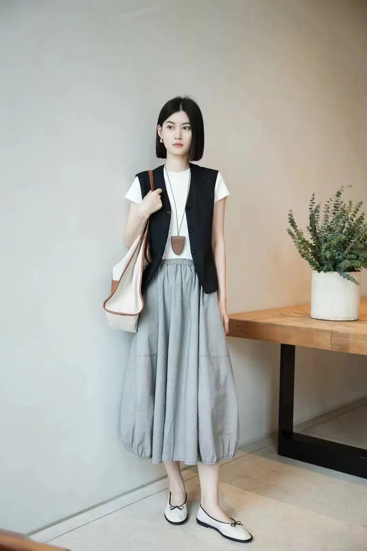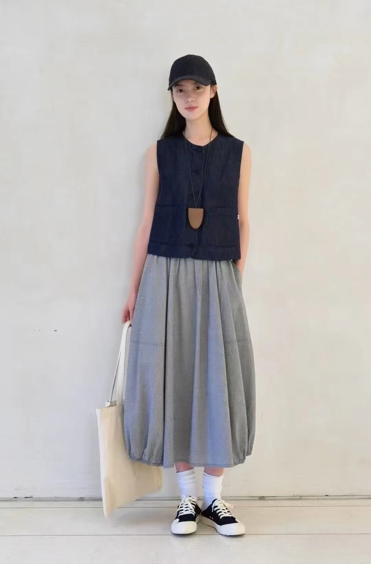 小禾同款棉涤色织布半身裙,把松弛感穿在身上是诗意也是日常带着格纹的经典、茧型的松弛、抽绳的巧思把 “实穿” 与 “美感” 揉成一团柔软的云