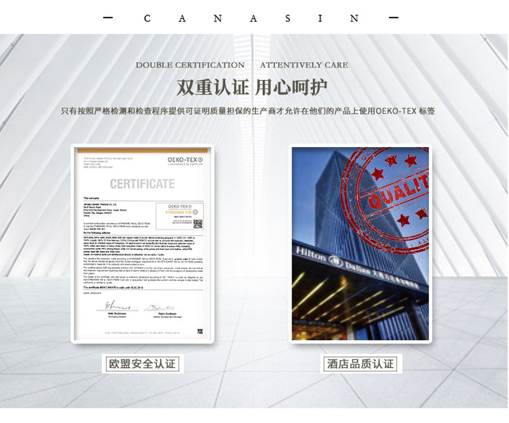 源自五星级酒店的奢华家纺品牌,康乃馨首次提出打造“酒店+家纺”的全新概念,将更为严格的五星级酒店纺织品品质标准与家纺相结合,完美诠释“酒店品质家纺”的舒适感受与奢华品味。