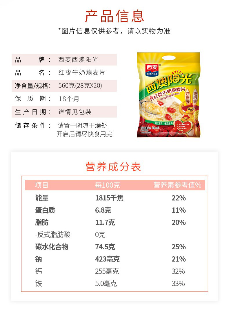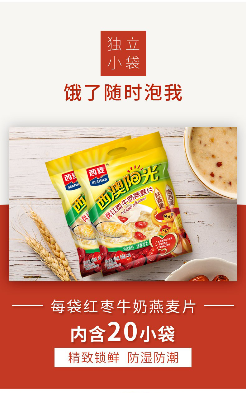 红枣牛奶燕麦片560g内含28g*20包独立包装澳洲燕麦高钙高铁早餐即食家庭囤货装