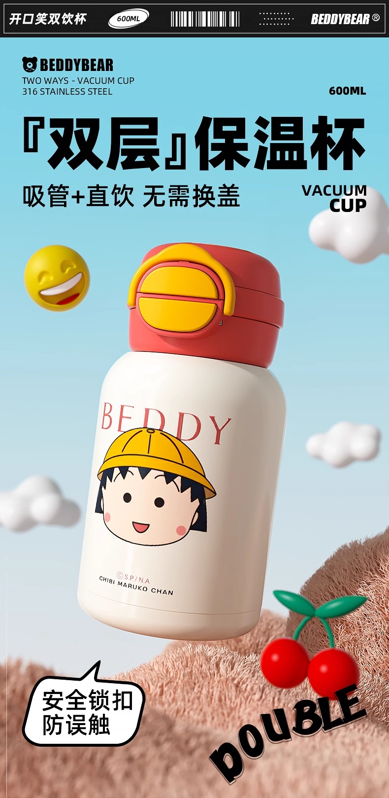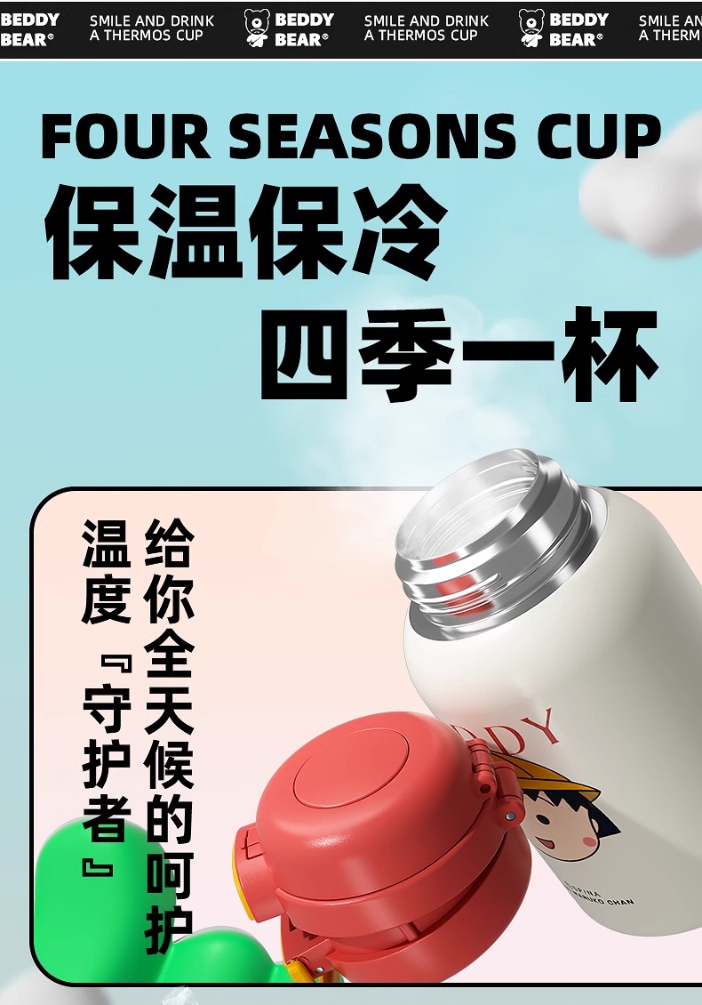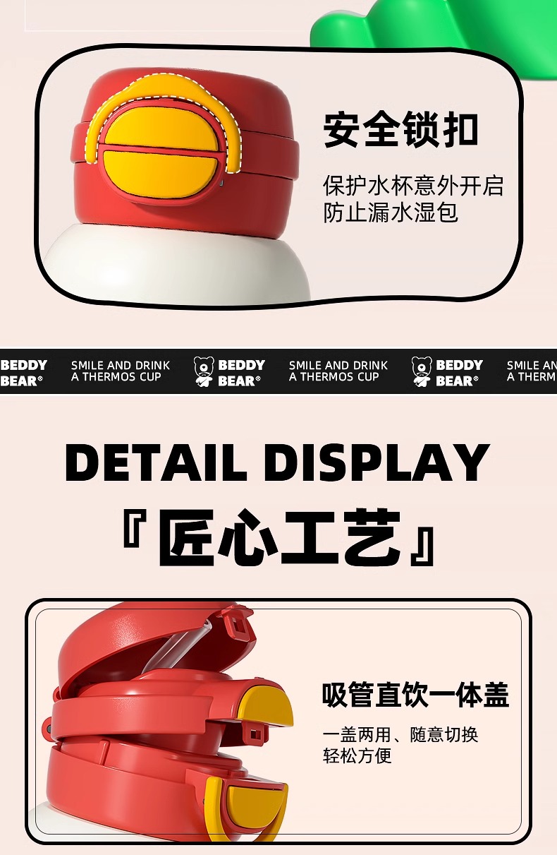 杯具熊保温杯女生高颜值学生水杯双饮吸管杯子儿童水壶