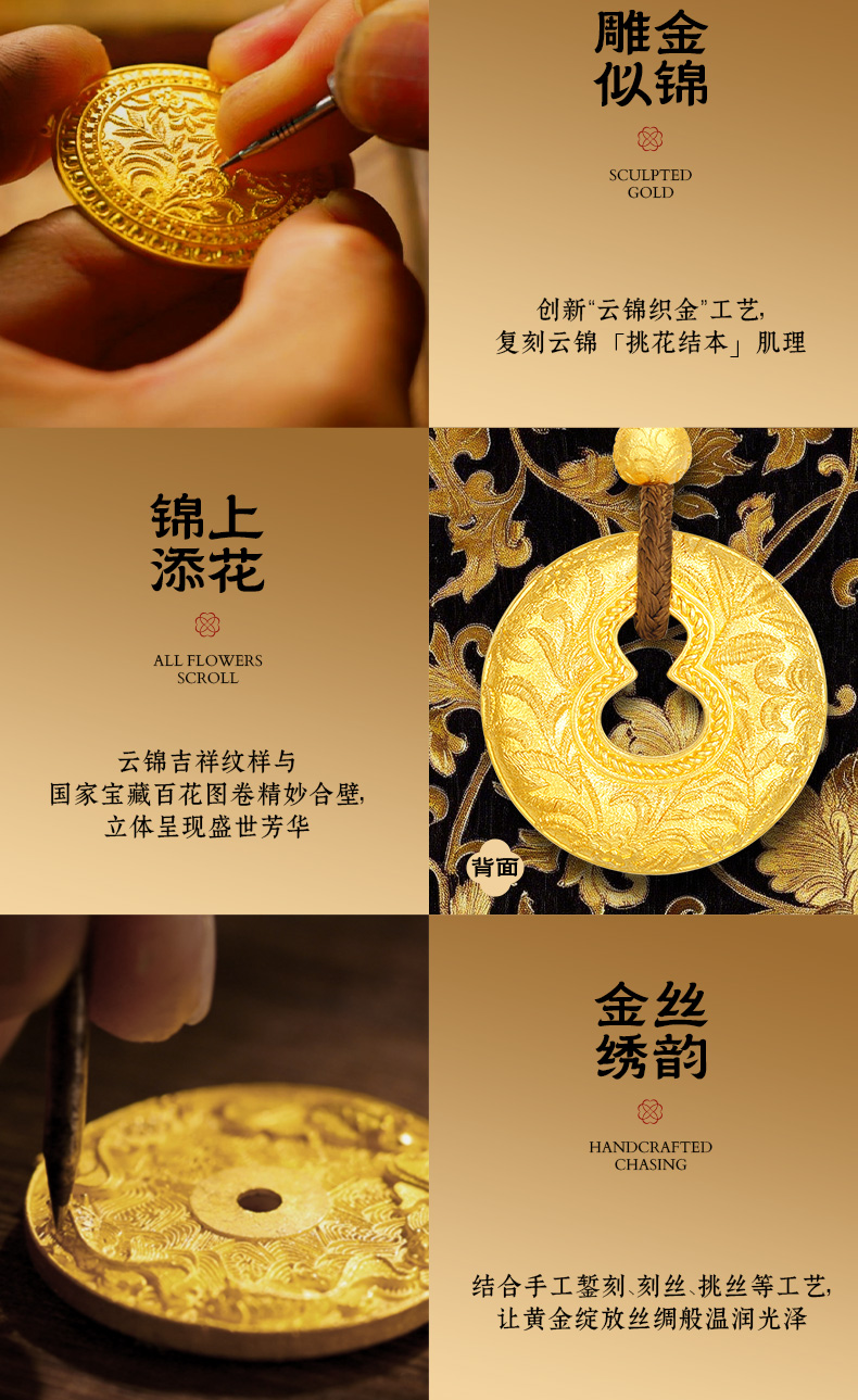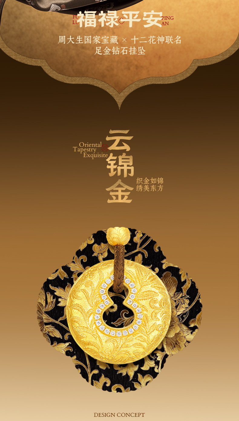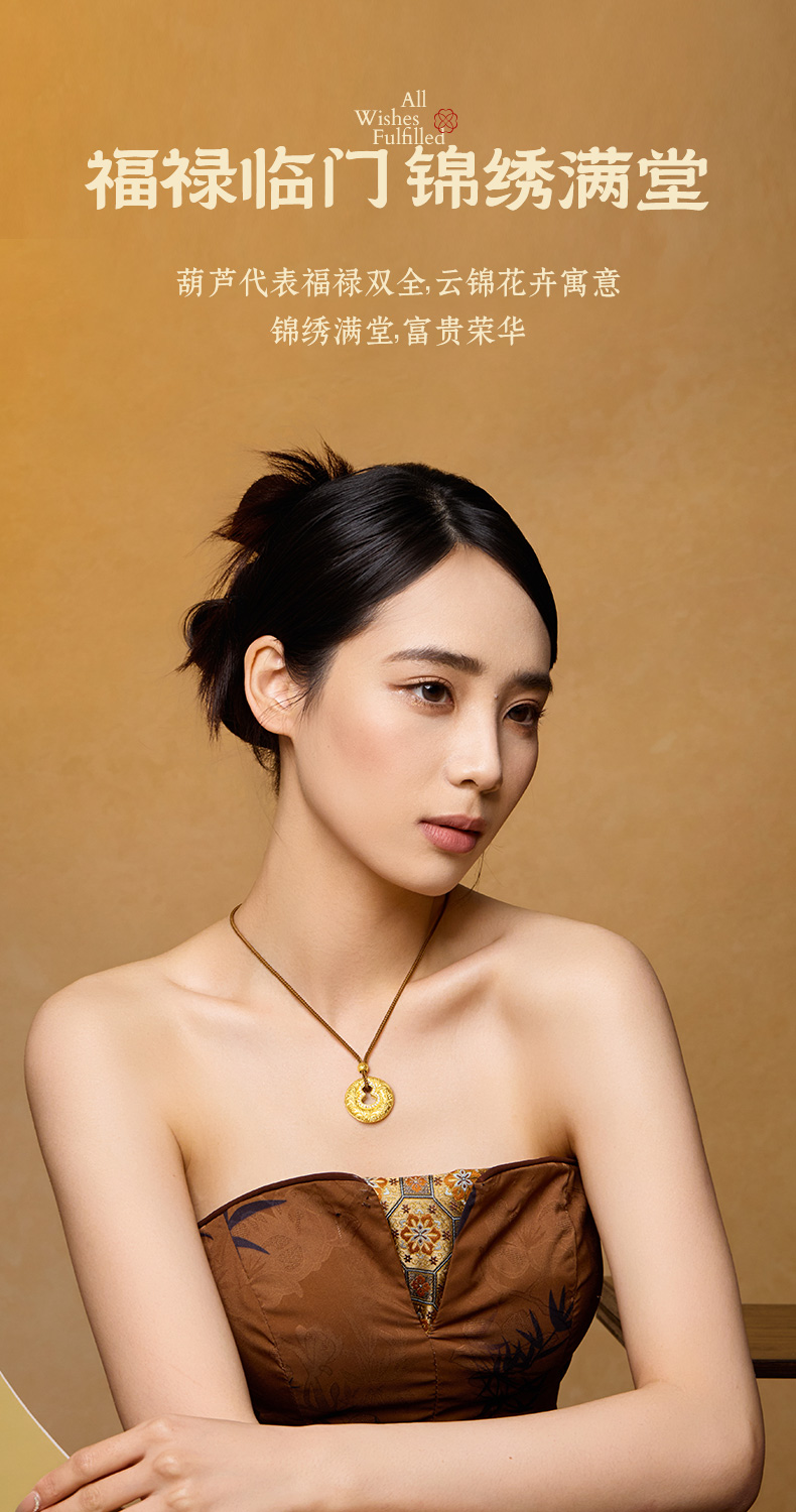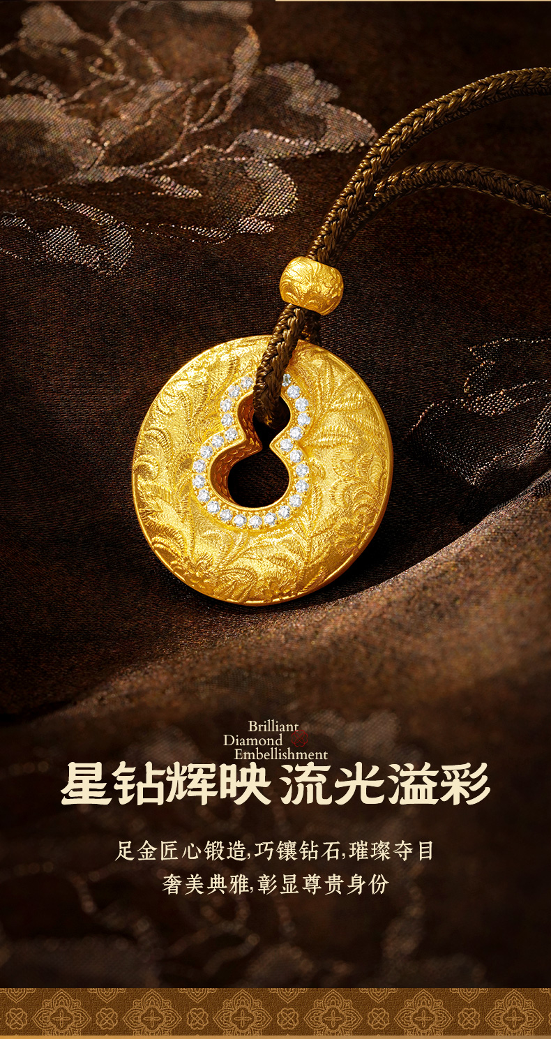 周大生十二花神x国家宝藏足金云锦葫芦点钻挂坠七夕礼物送女友