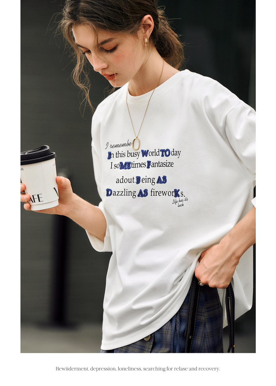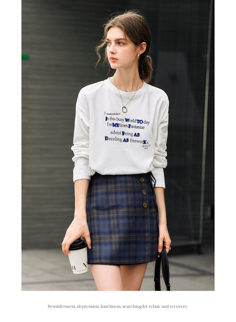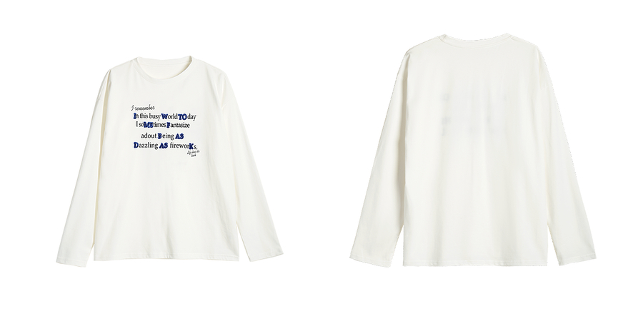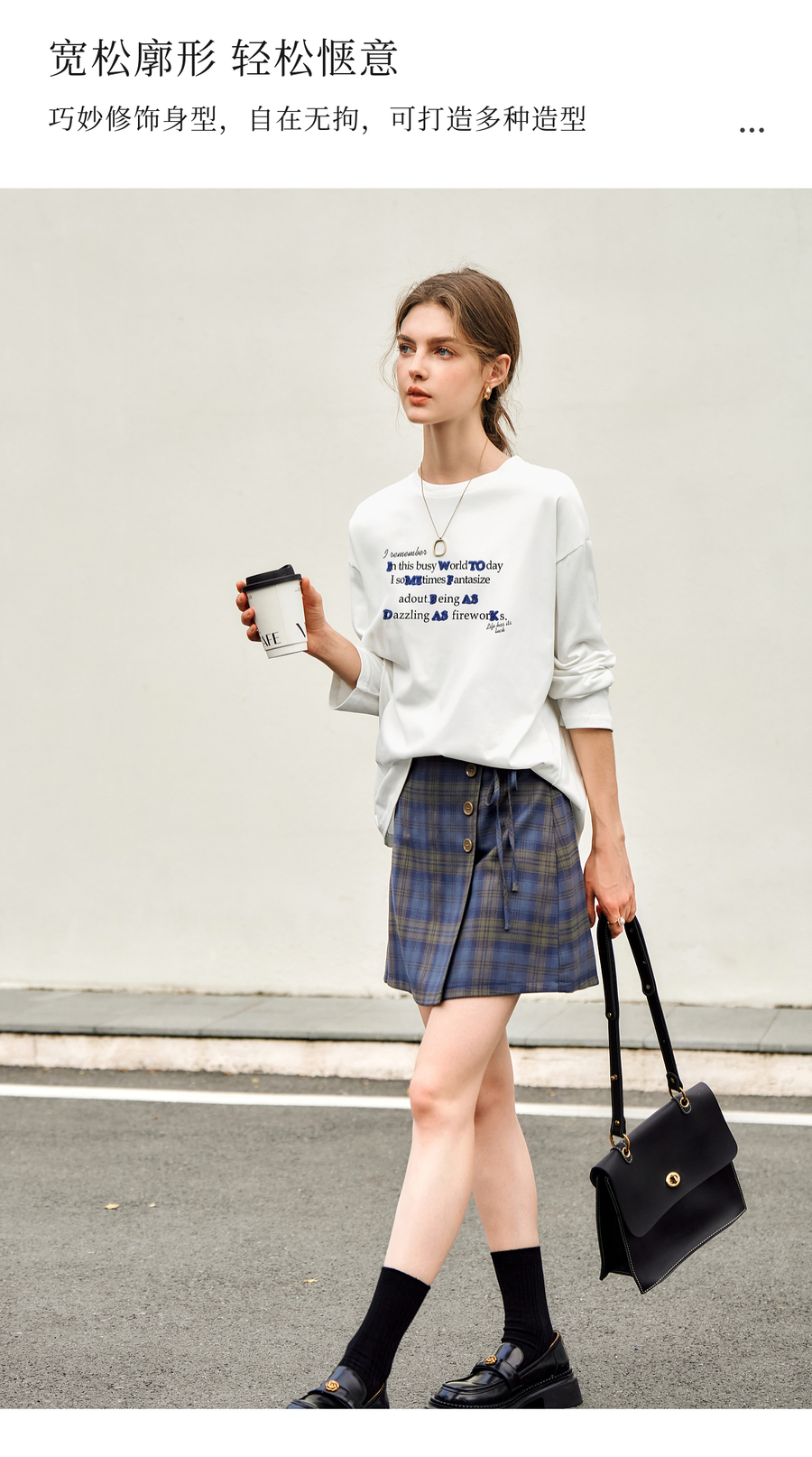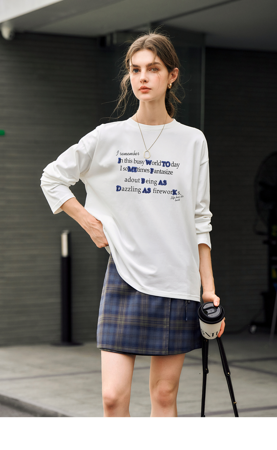 OLrain欧芮儿白色长袖T恤女冬季2024年新款重工毛巾绣宽松上衣