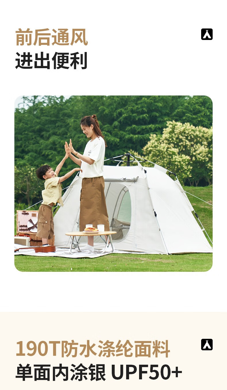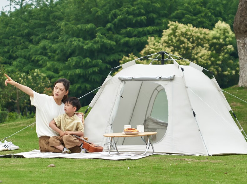 零动130 户外公园露营自动速开防晒休闲亲子帐篷晨雾白NX23561011