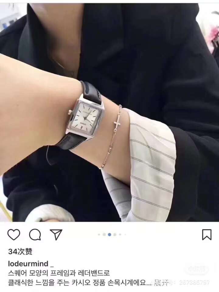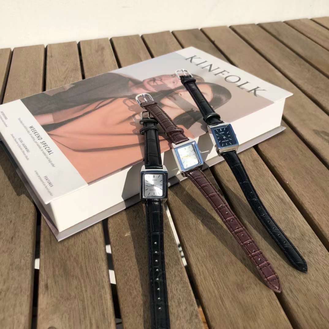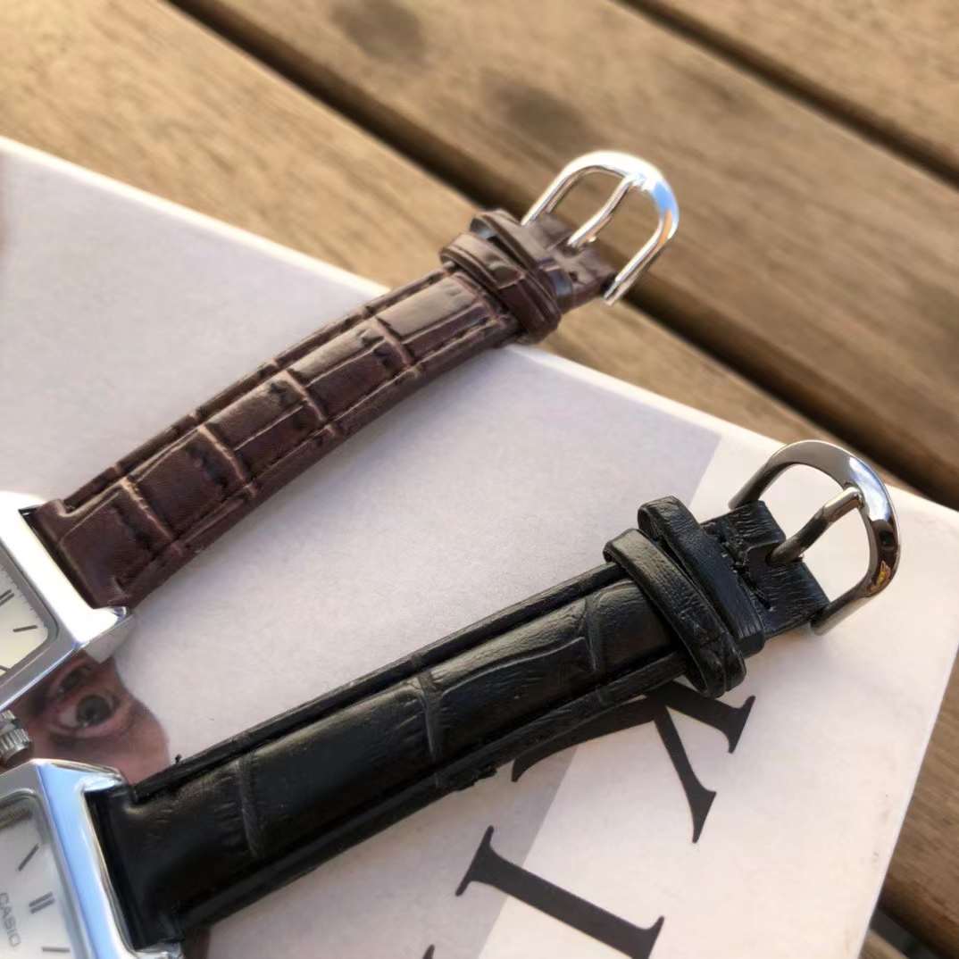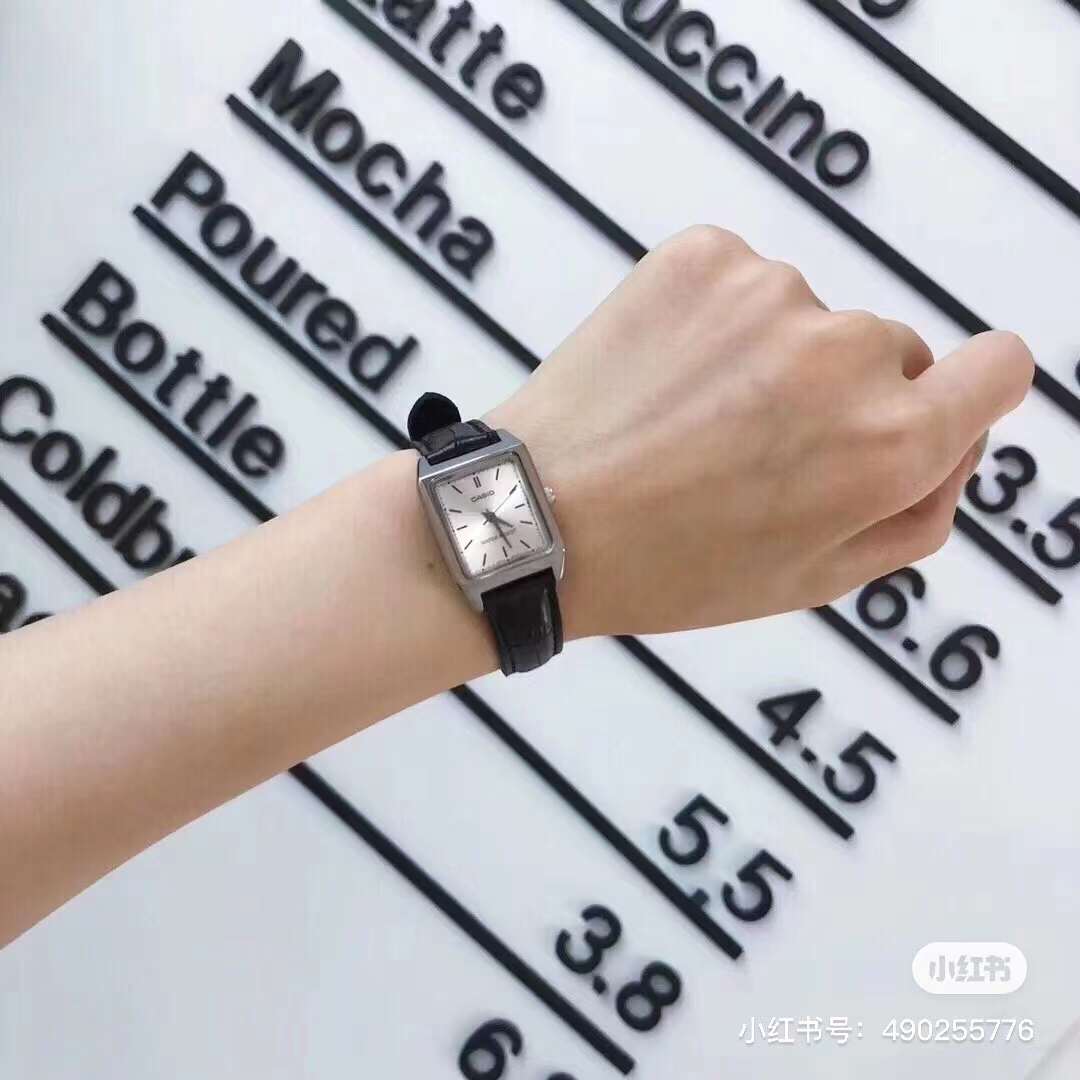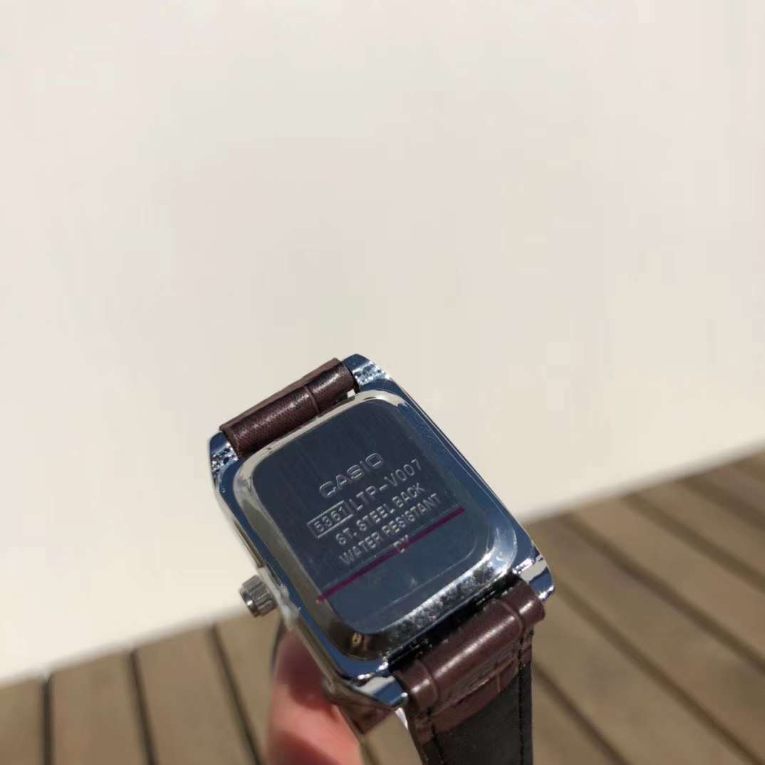 Casi*o小方块皮带手表,五金是不锈钢材质,后面都是有logo刻印的,全部都清晰可见的。经典小方块不过时简约气质方形表,超级经典百搭款!
