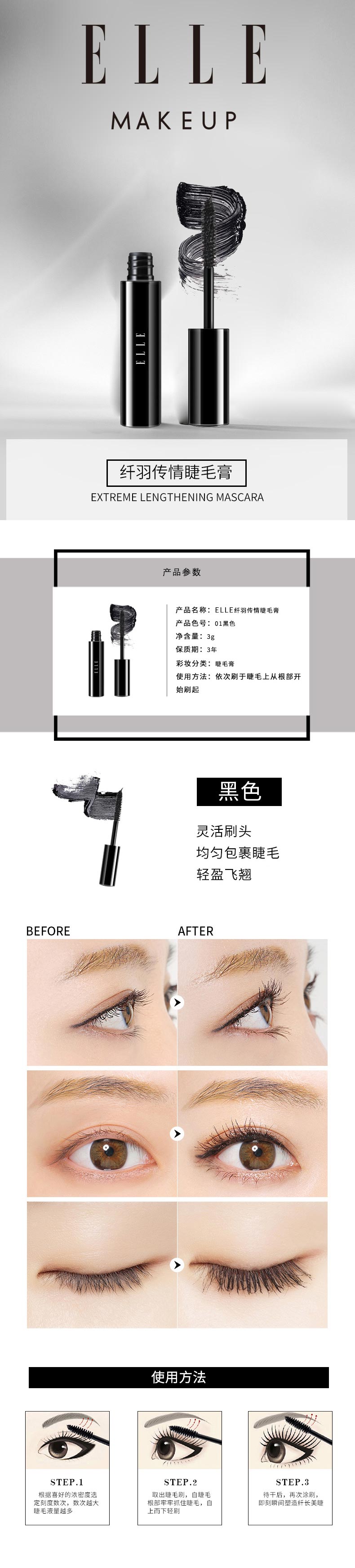 ELLE 纤羽传情睫毛膏GA01/黑色