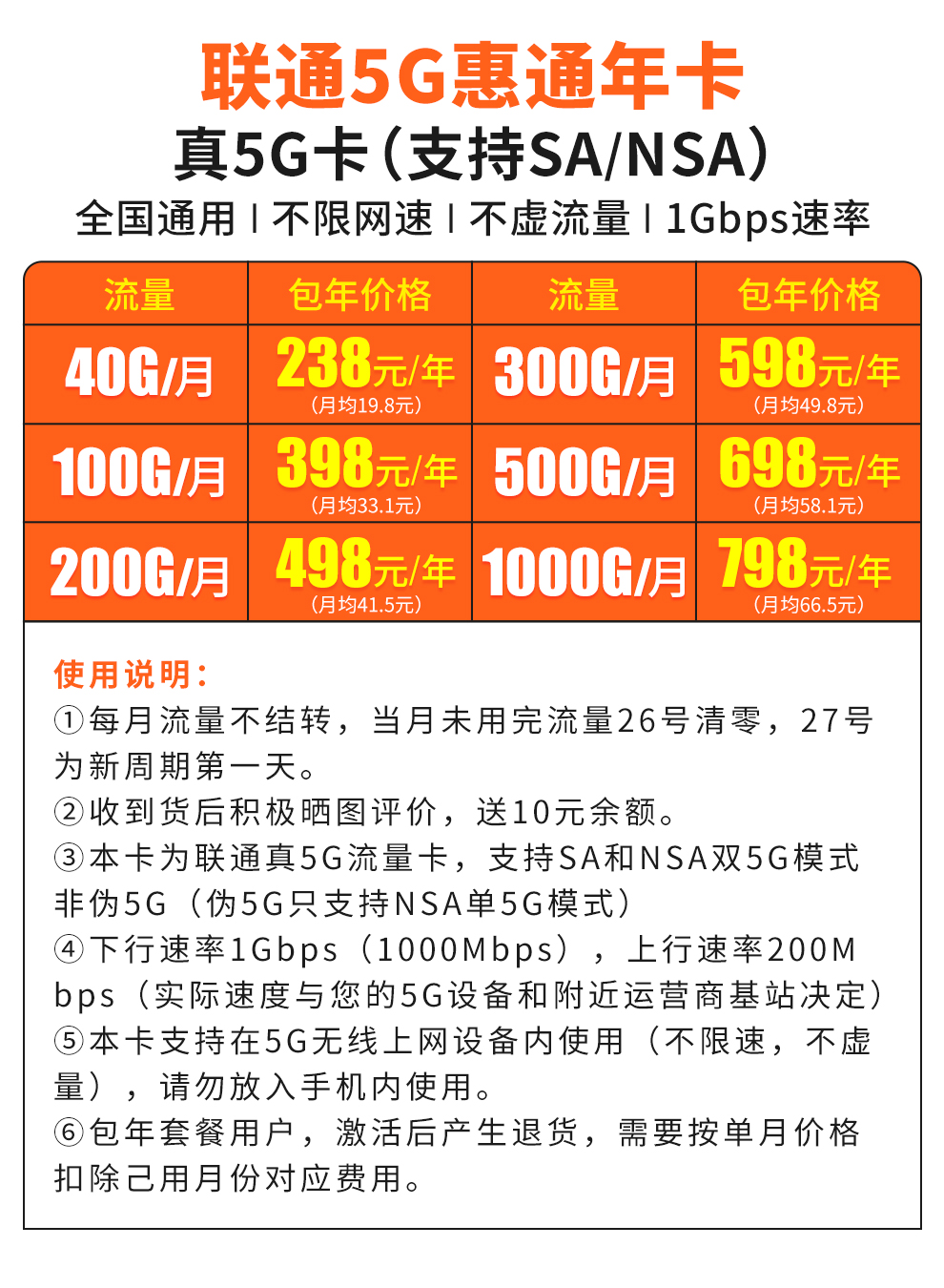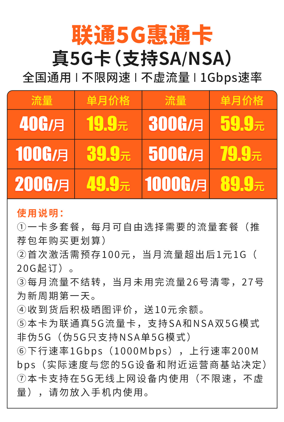 (不能手机使用)联通5G惠通卡(真5G)不虚量不限速(不能手机使用)