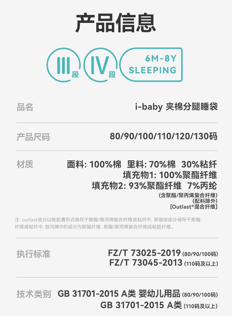 i-baby德国outlast秋冬针织夹棉恒温分腿睡袋