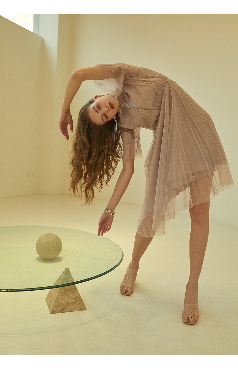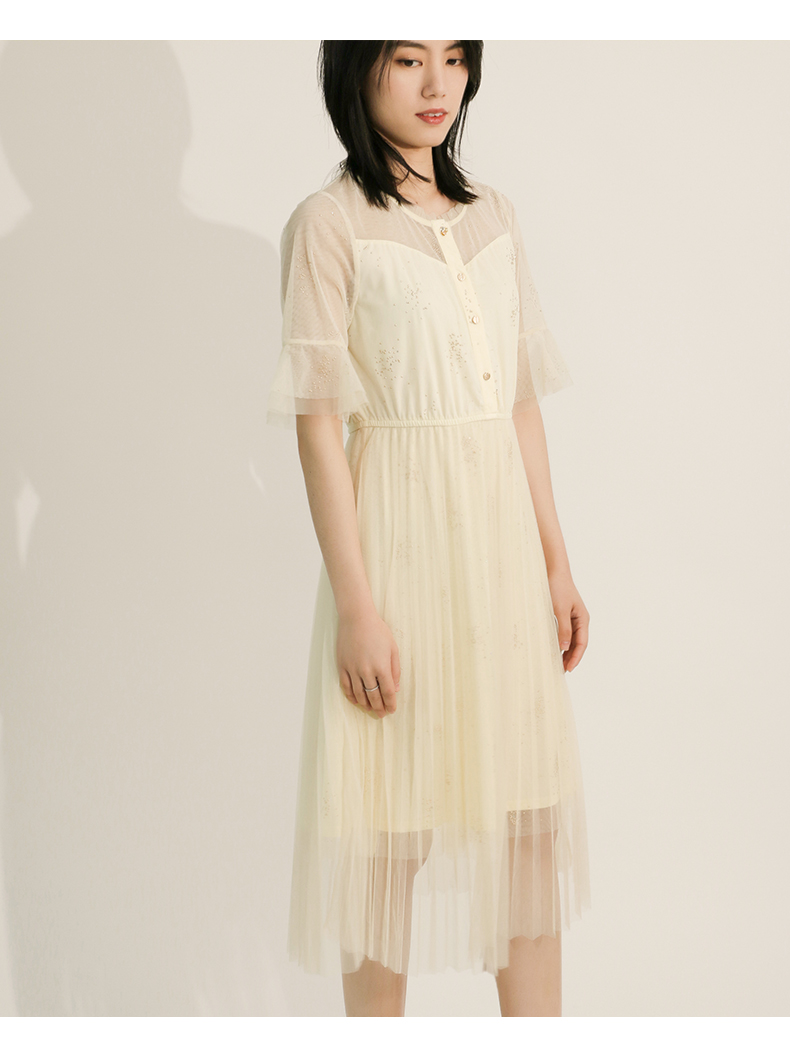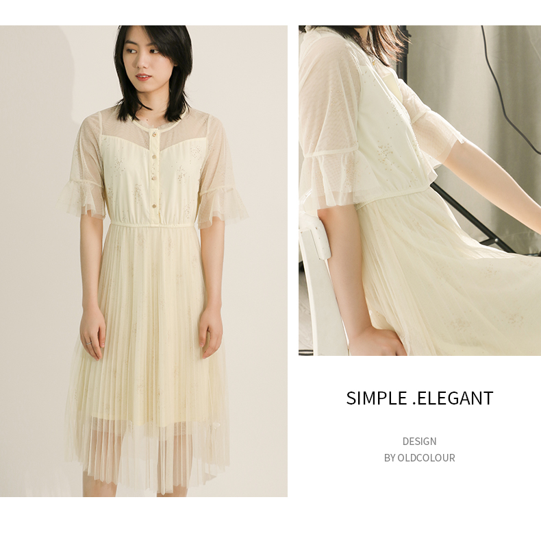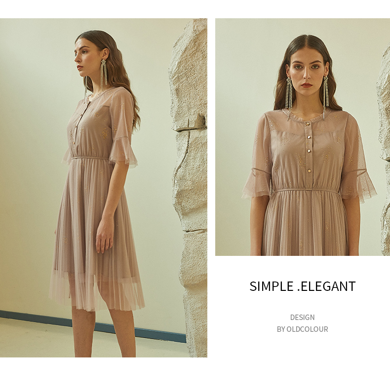 oldcolour欧珂正品网纱拼接夏季连衣裙女M21101415
