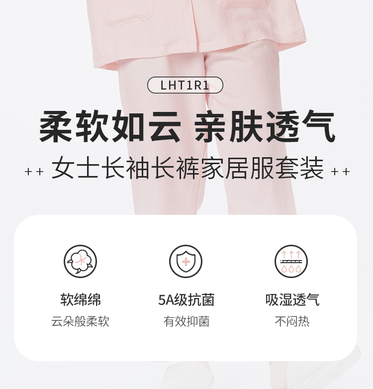 都市丽人睡衣好睡好眠长袖家居服软绵绵1.0薄女士软绵绵长袖长裤LHT1R1