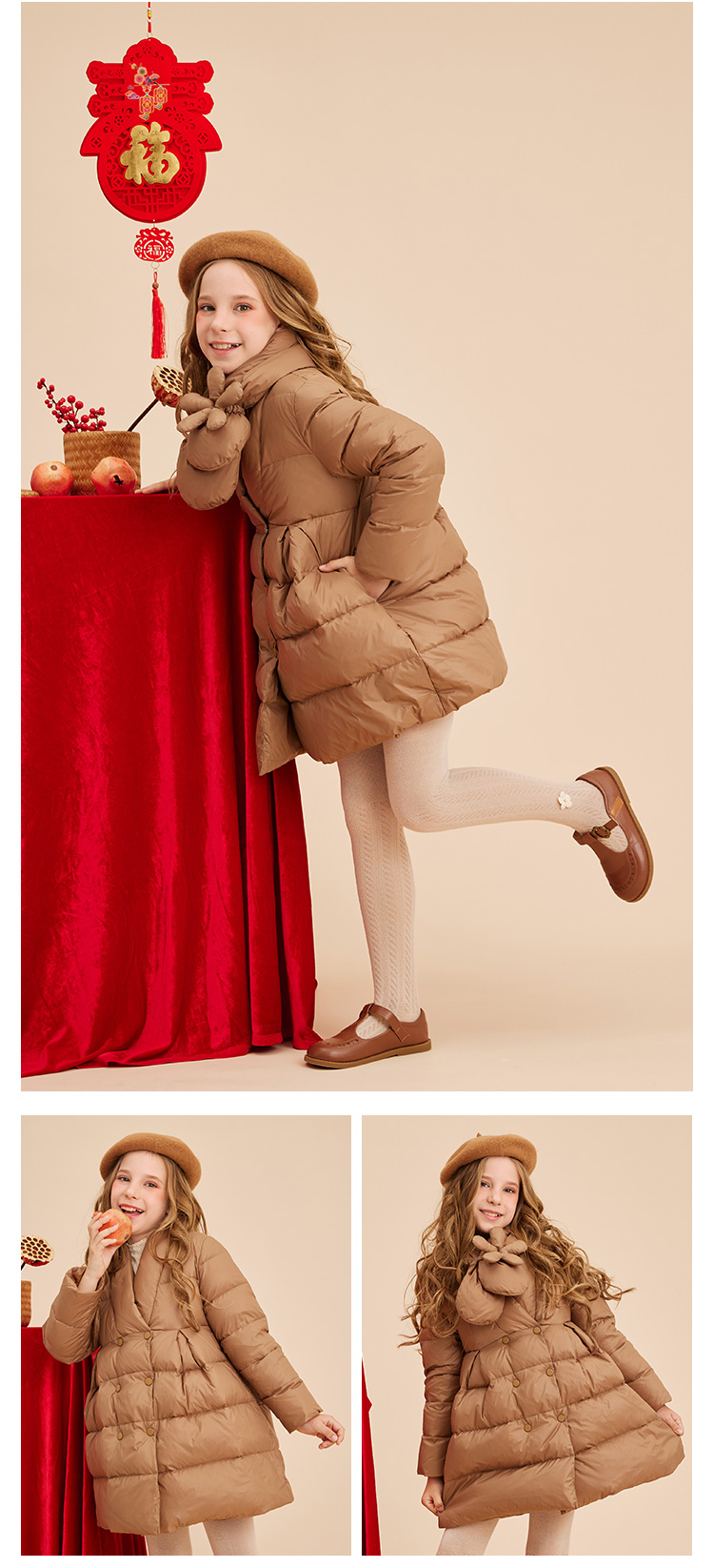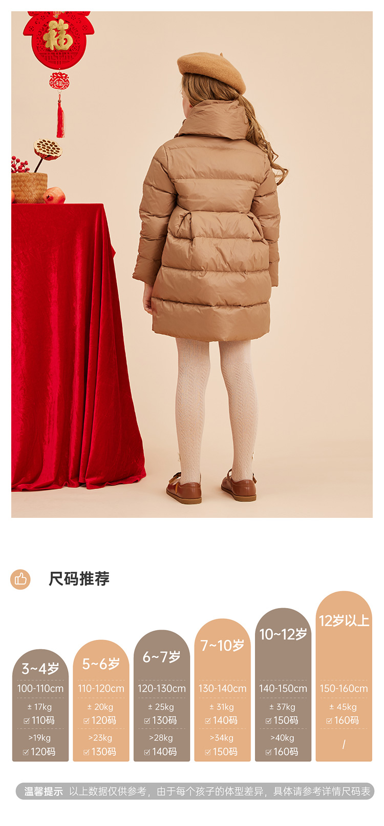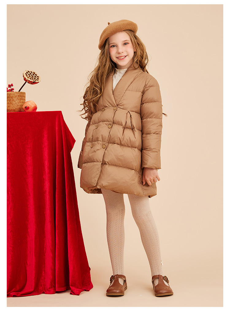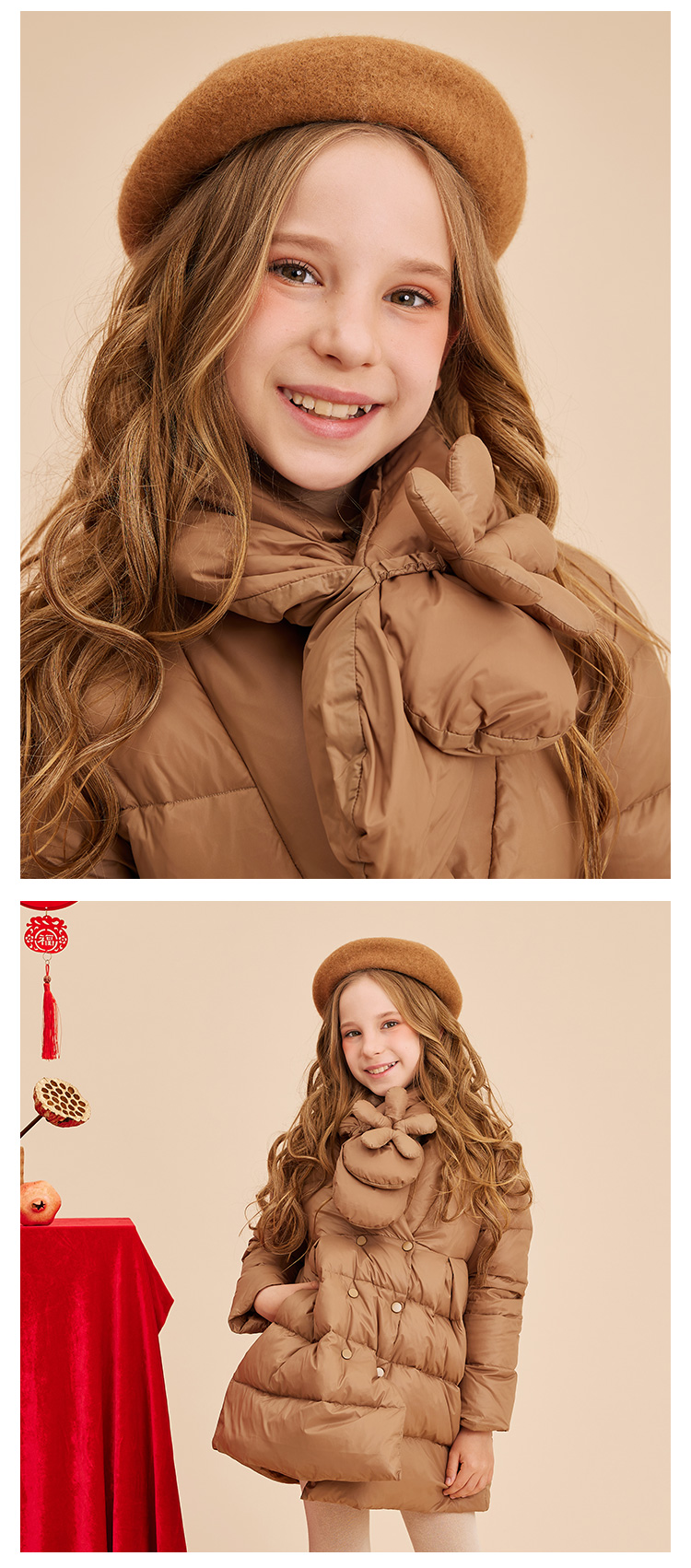 littletime女童羽绒服冬季中长款加厚白鸭绒2022新款洋气儿童棉服
