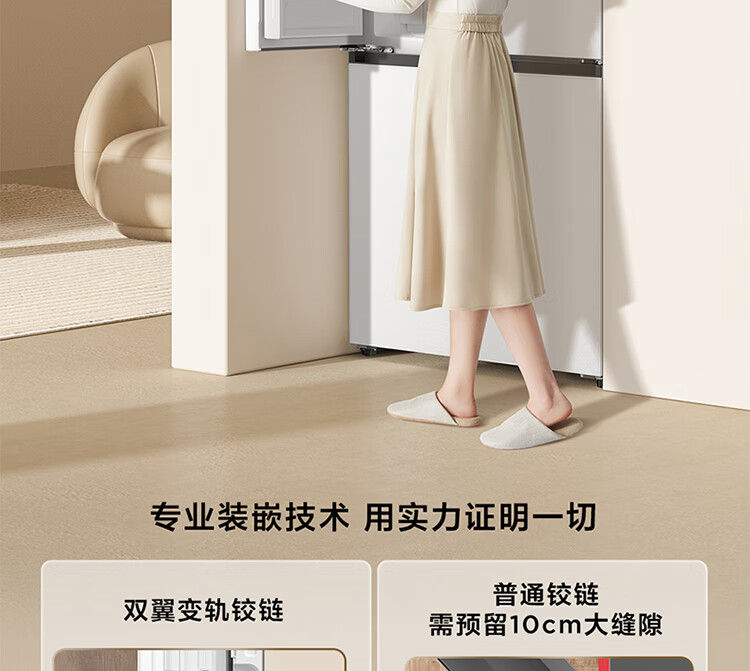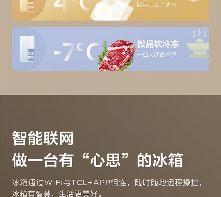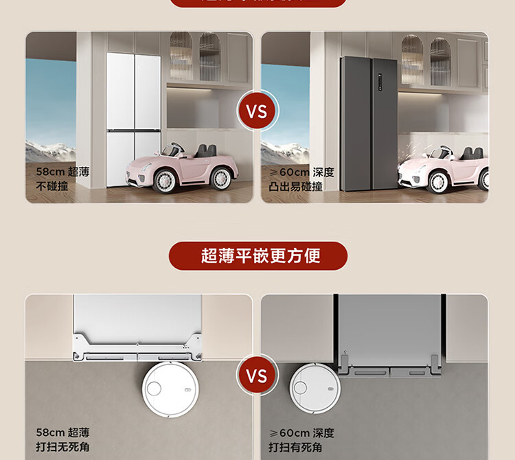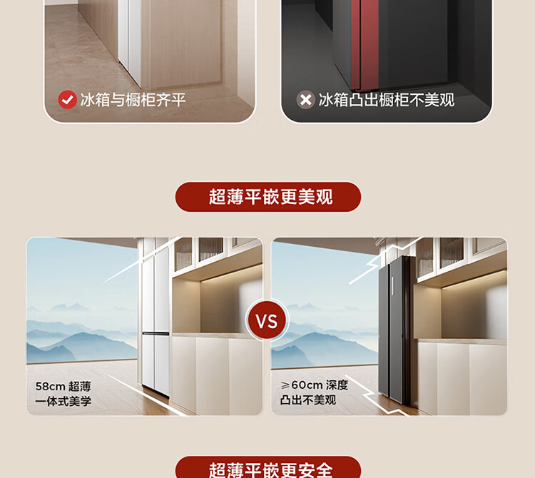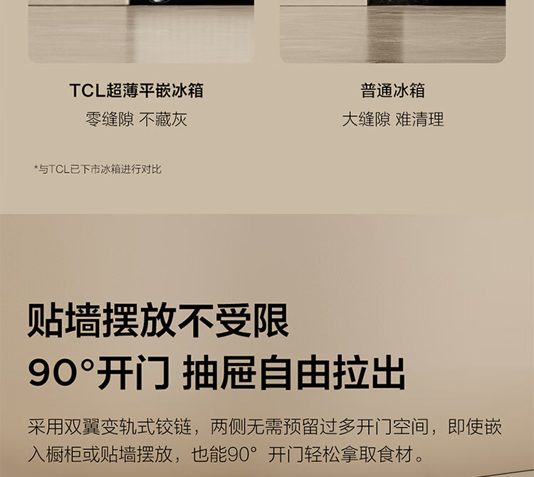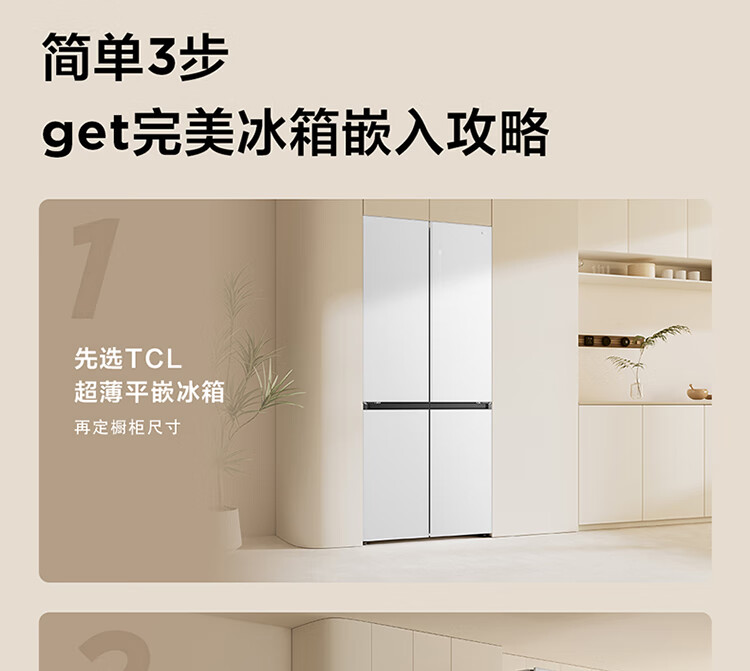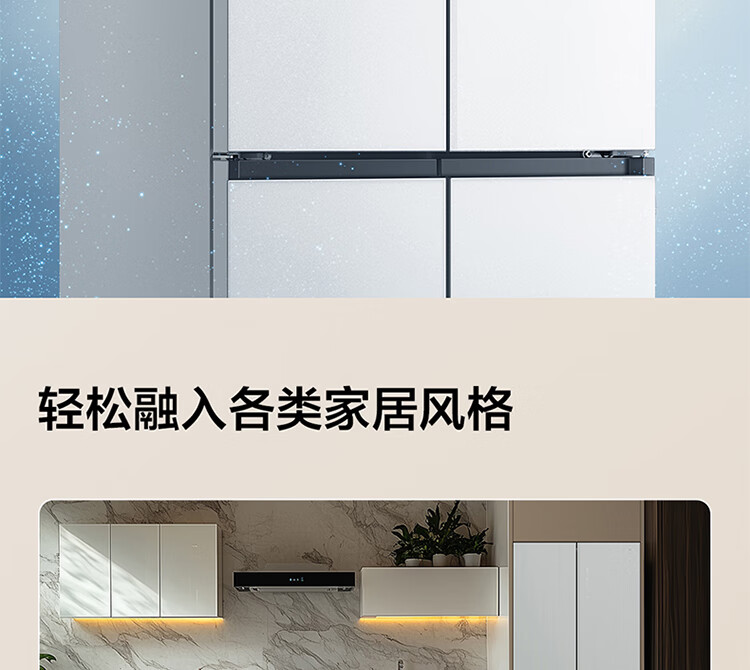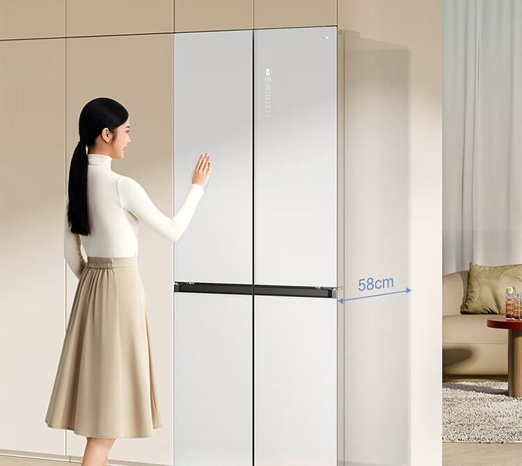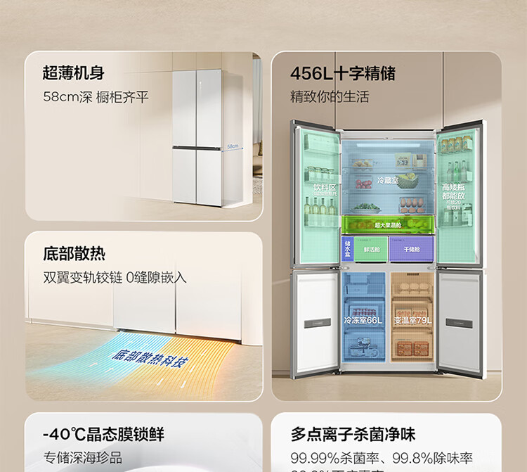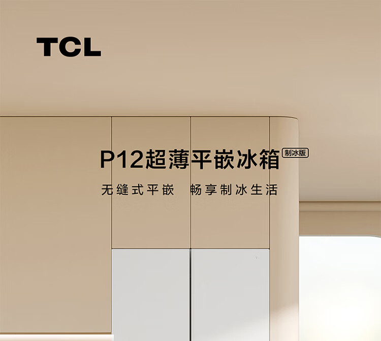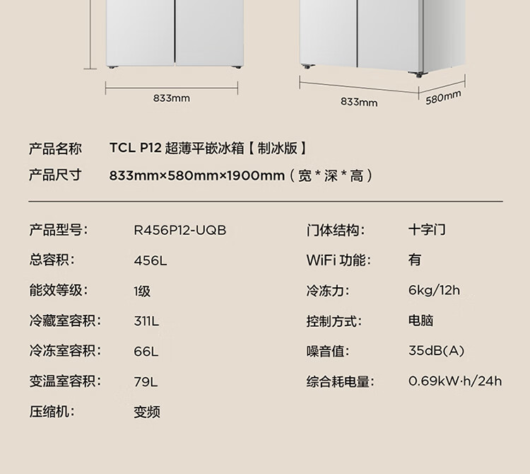 TCL456L超薄平嵌十字冰箱_58cm超薄_-40晶态膜锁鲜_全自动制冰_APP互联R456P12-UQB(线下同款)