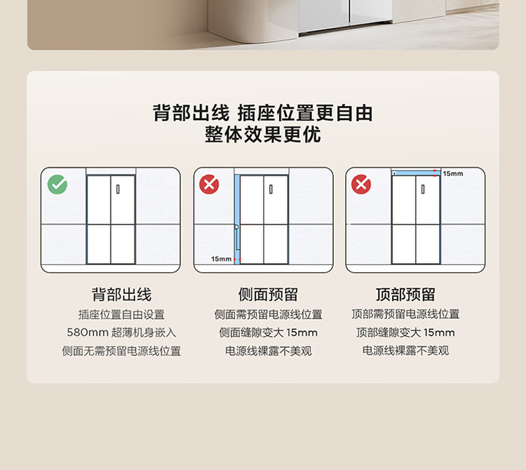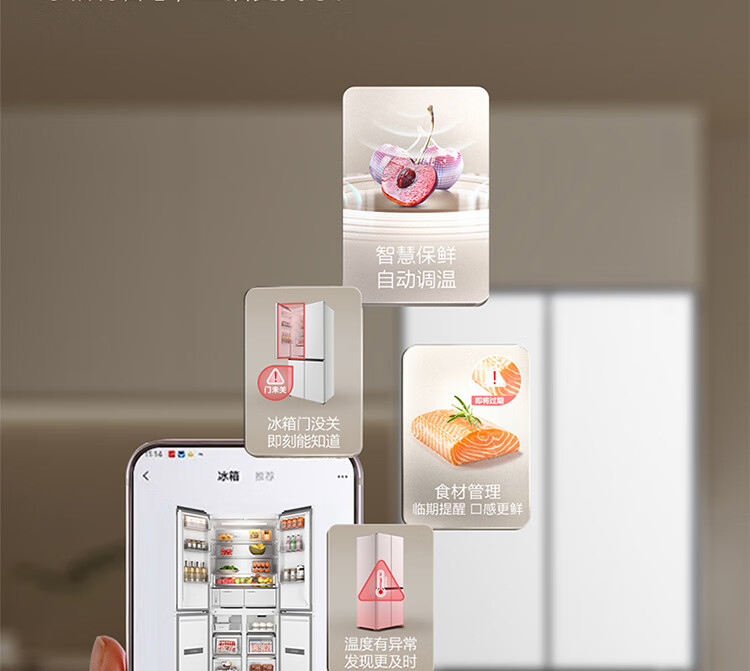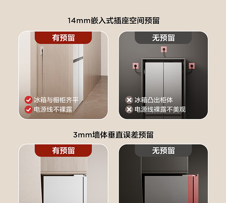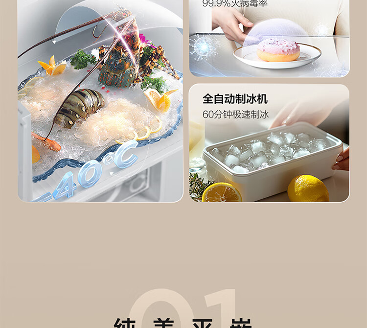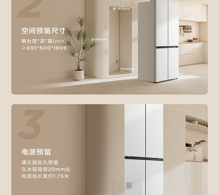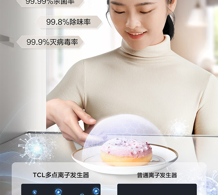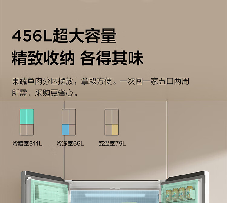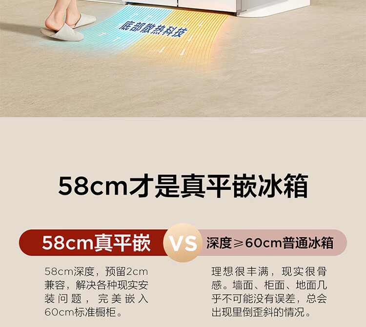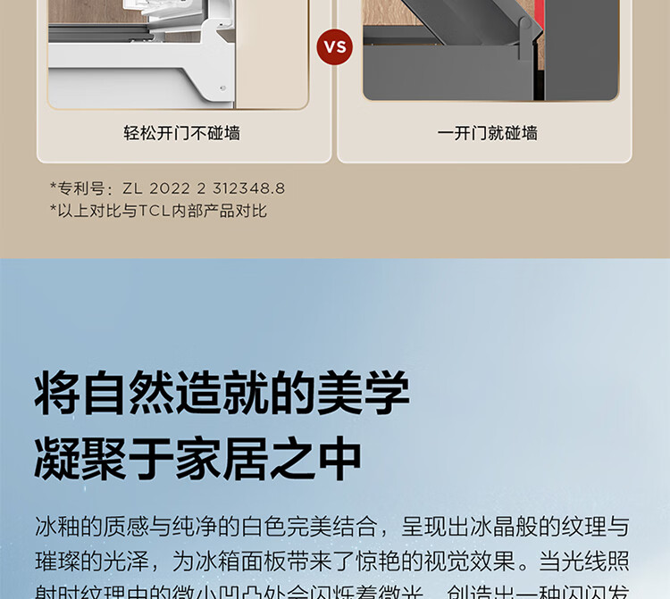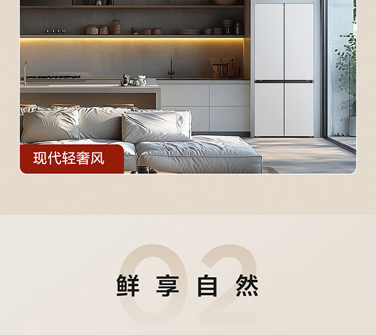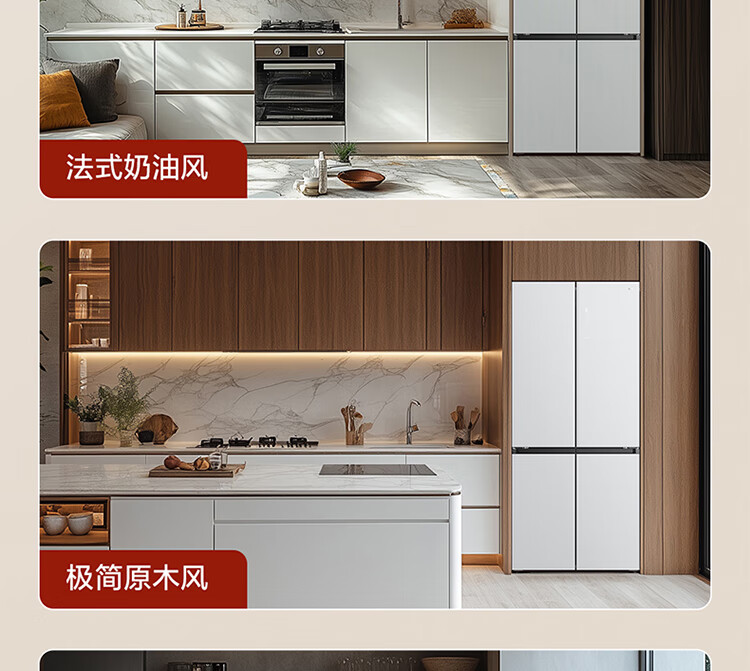 TCL456L超薄平嵌十字冰箱_58cm超薄_-40晶态膜锁鲜_全自动制冰_APP互联R456P12-UQB(线下同款)
