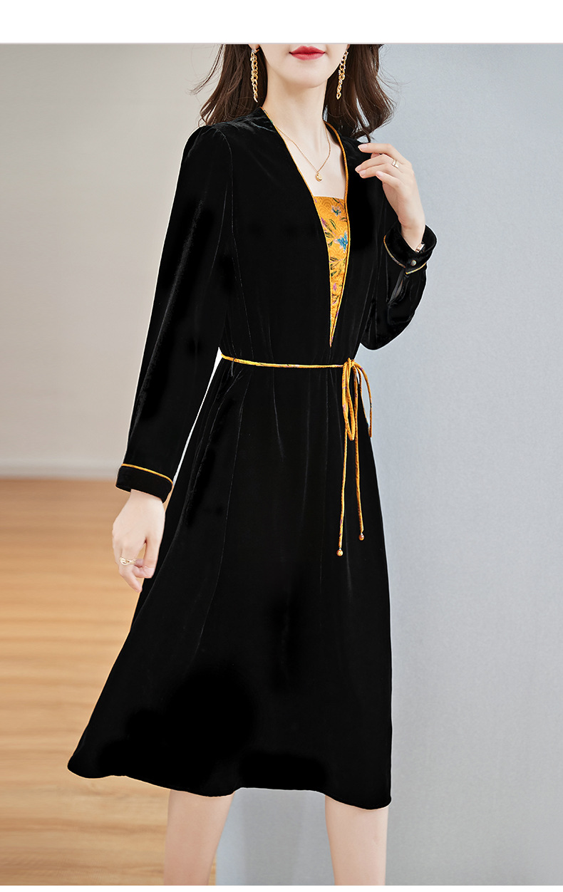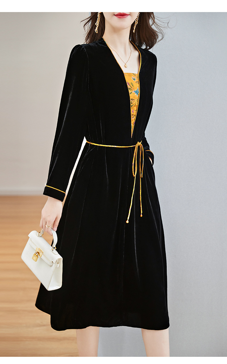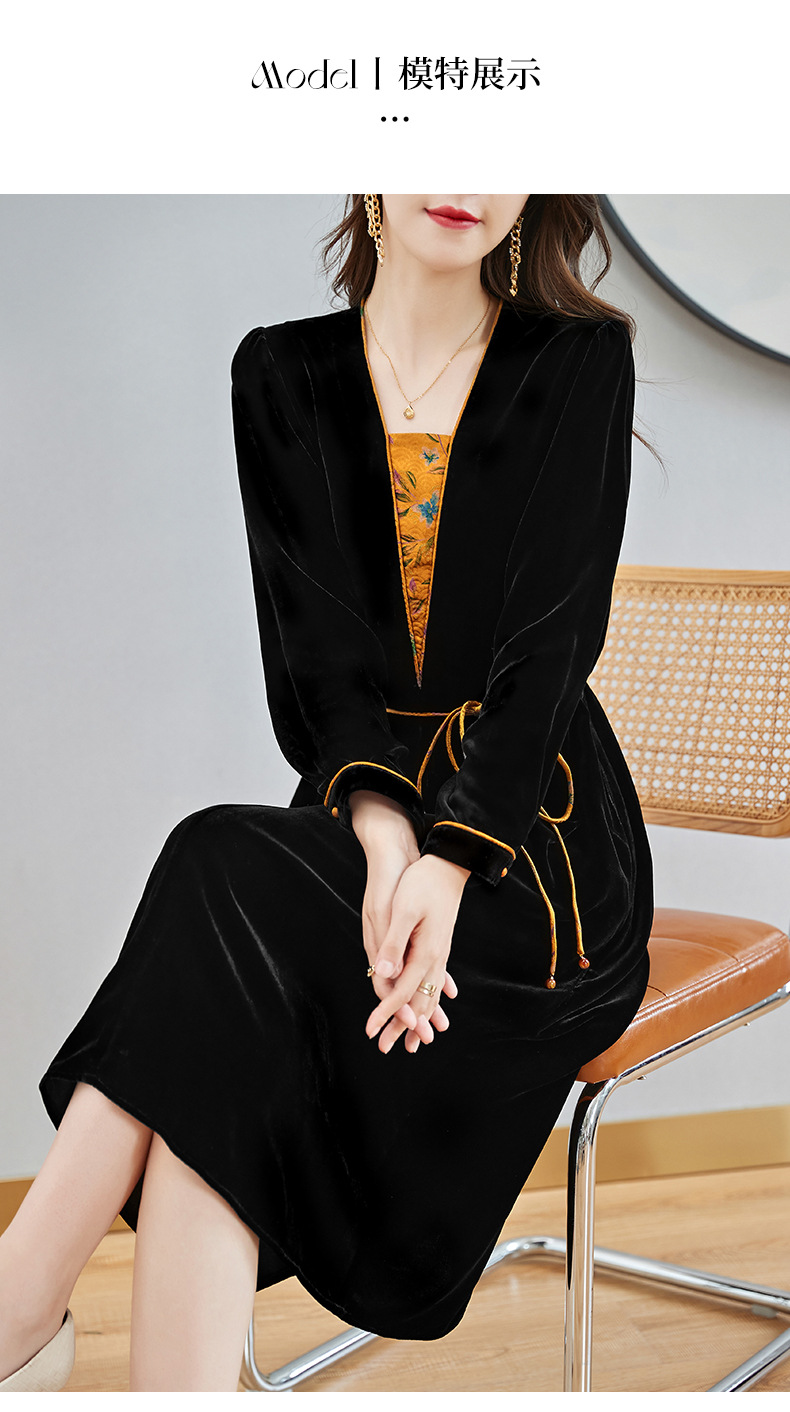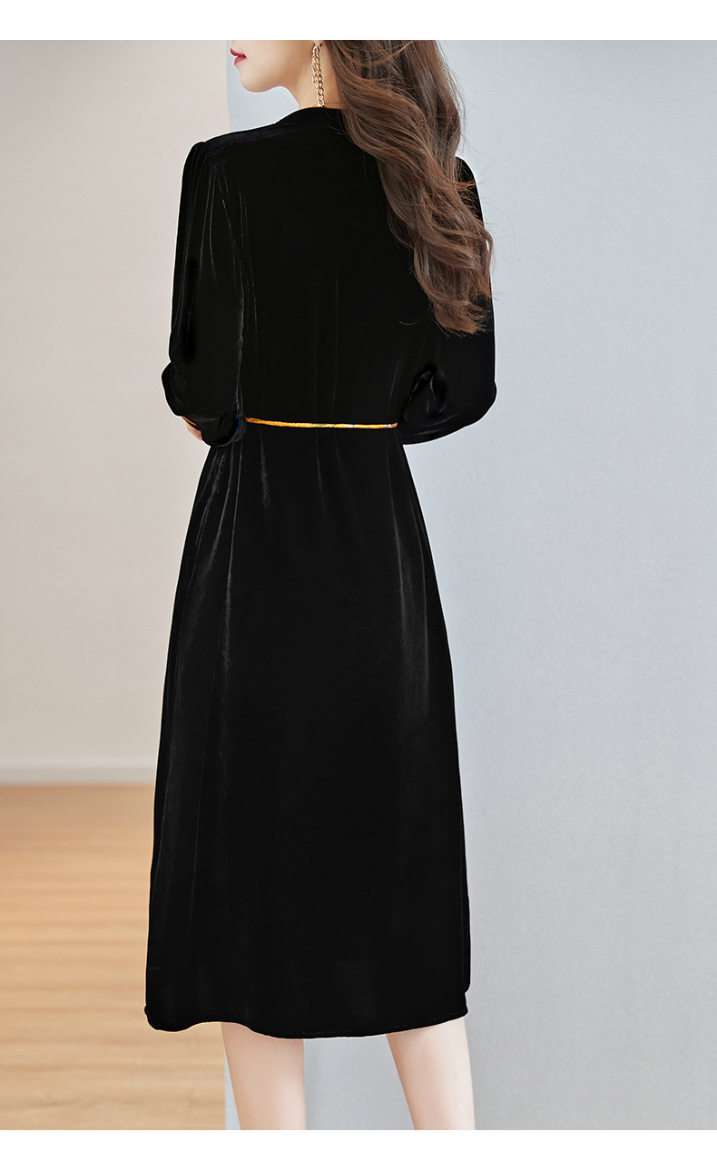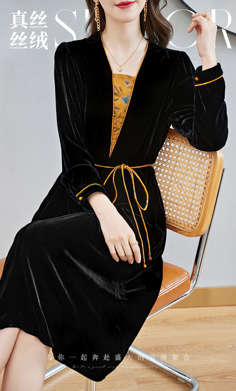 丝绒真丝连衣裙新款中年时尚气质妈妈秋冬长袖裙 SM82299167
