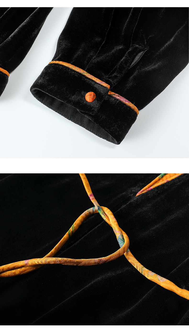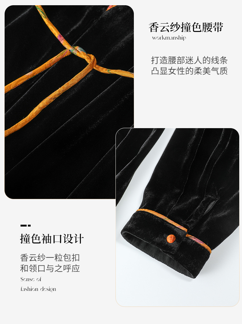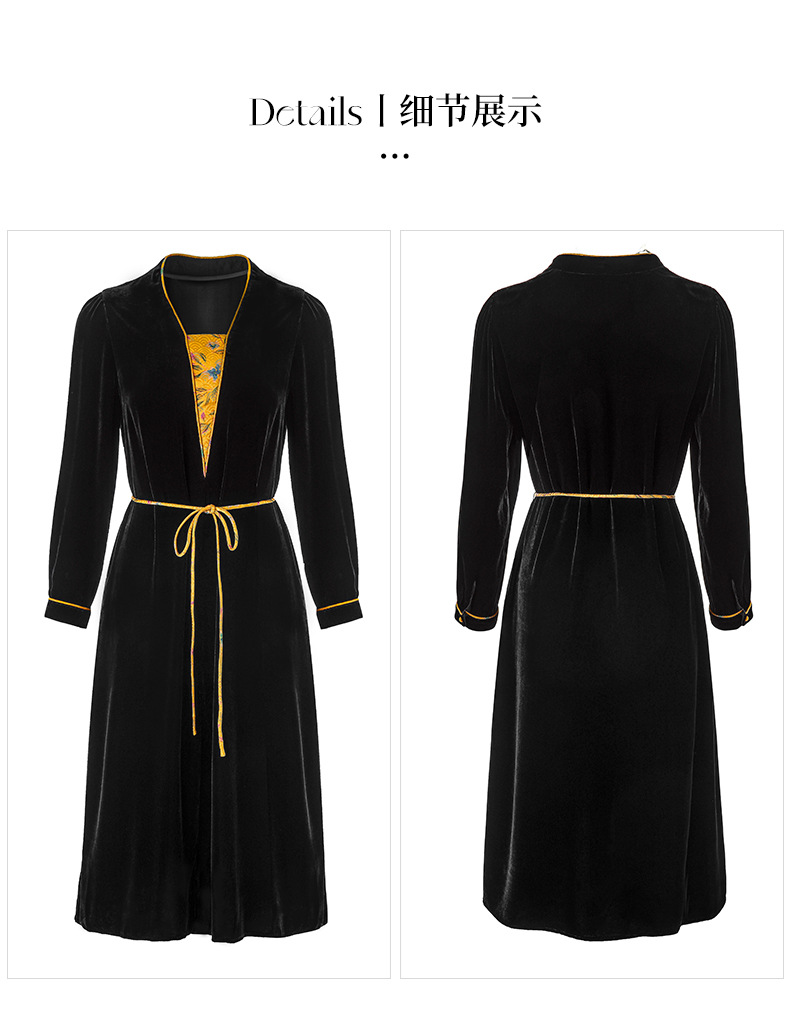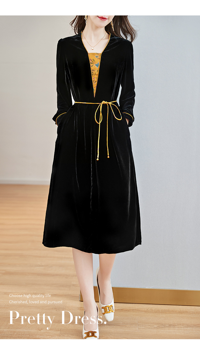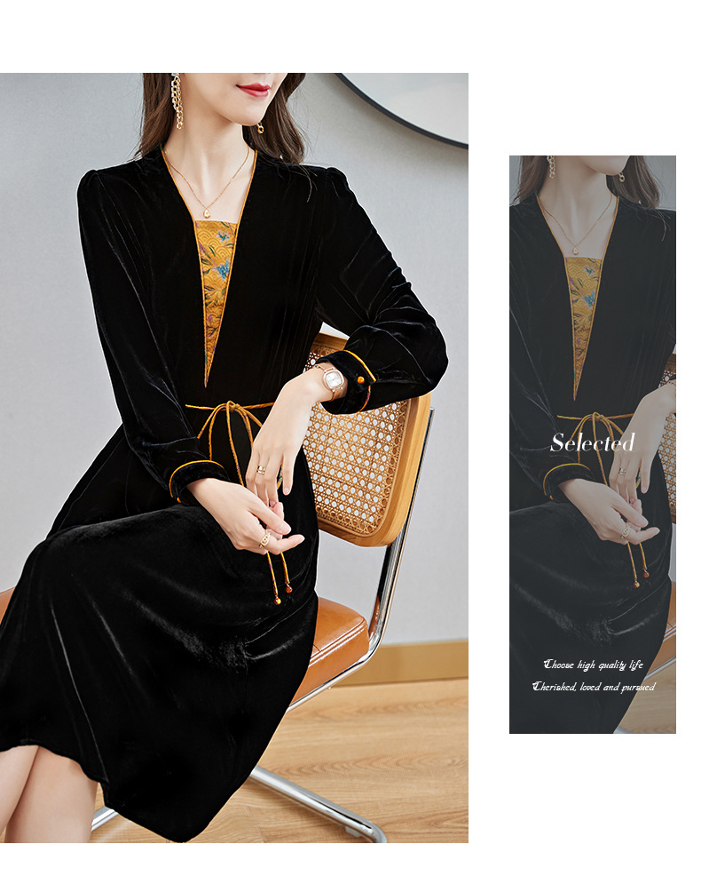 丝绒真丝连衣裙新款中年时尚气质妈妈秋冬长袖裙 SM82299167