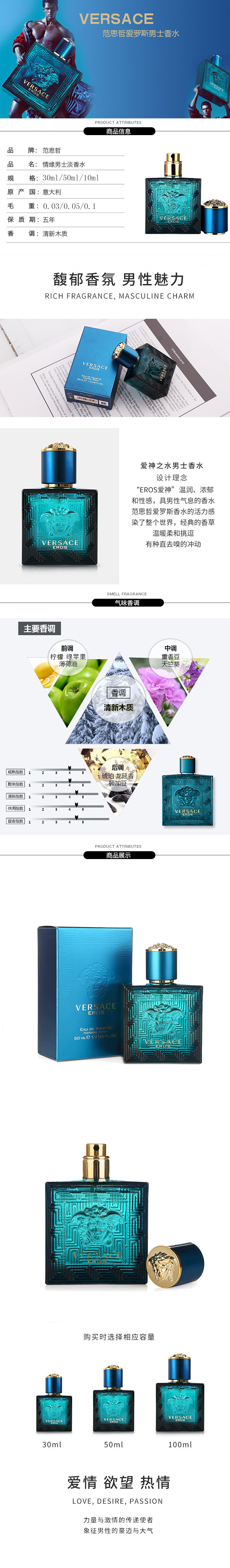法国 VERSACE 范思哲 爱罗斯男士淡香水 edt 30ml /50ml /100ml