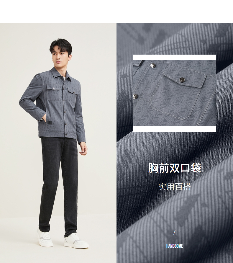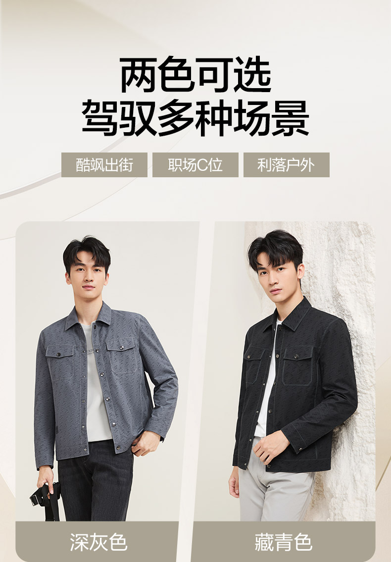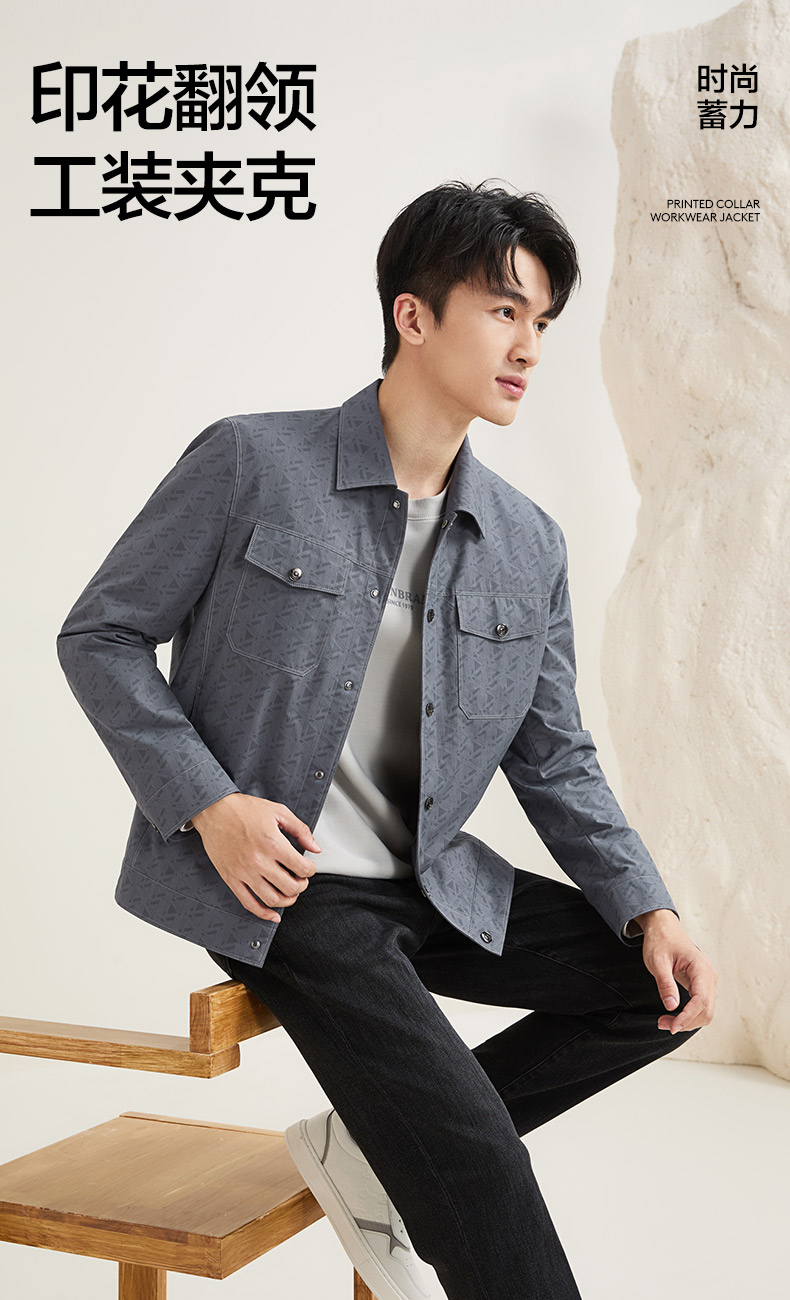 【工装满印茄克】柒牌男装时尚外套2025秋季新品潮流男士休闲夹克129K70410